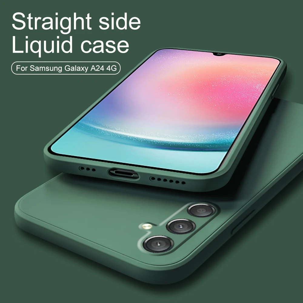 Para Samsung Galaxy A24 4G funda cuadrada de silicona líquida suave contraportada en Samung A24 A 24 4G 6,5 "Protección de cámara a prueba de golpes Coque