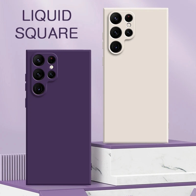 Comprar Funda cuadrada de silicona líquida para Samsung Galaxy S23 Plus Ultra 360, funda trasera protectora de tela suave para teléfono S23Plus S23Ultra Armor