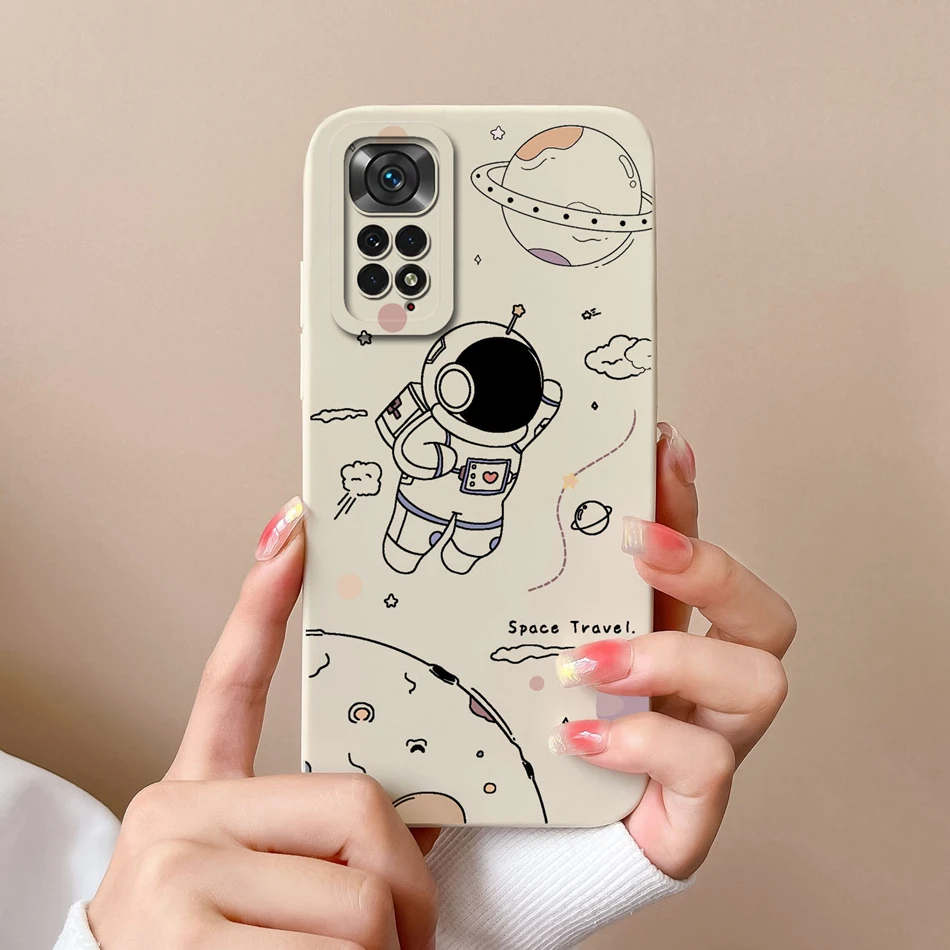 Comprar Funda cuadrada de silicona líquida suave para Xiaomi Redmi Note 11 S, 4G, 5G, astronauta, cubierta trasera
