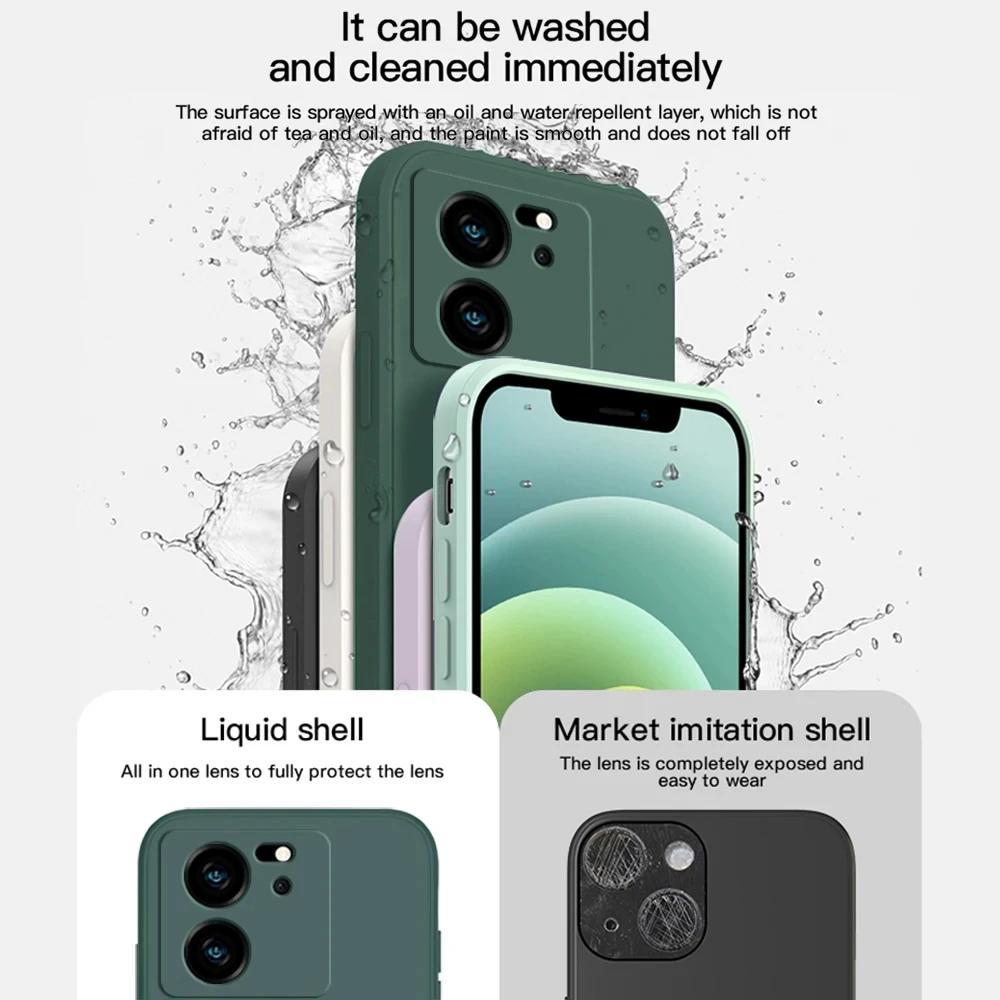 Comprar Funda cuadrada de silicona líquida para Xiaomi 13 T Pro, Protector de lente de cámara, cubierta suave para Xiaomi Mi 13 t, 13 T, Mi13T Pro, funda a prueba de golpes