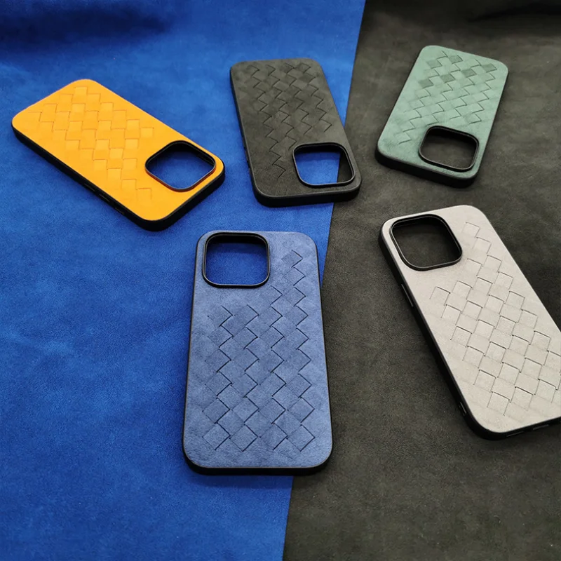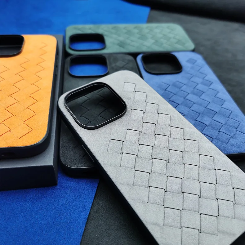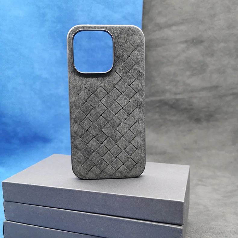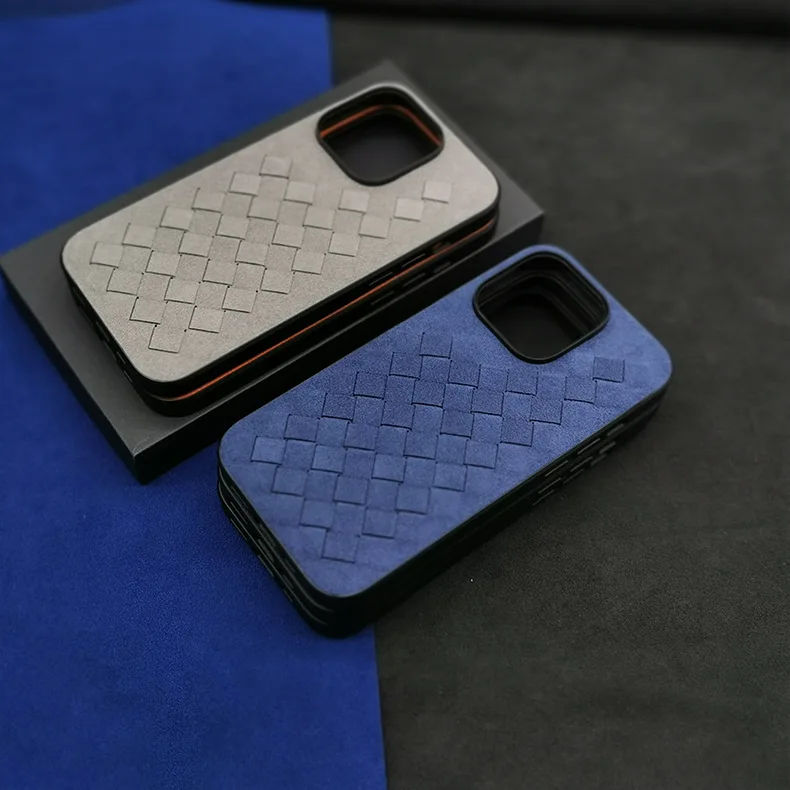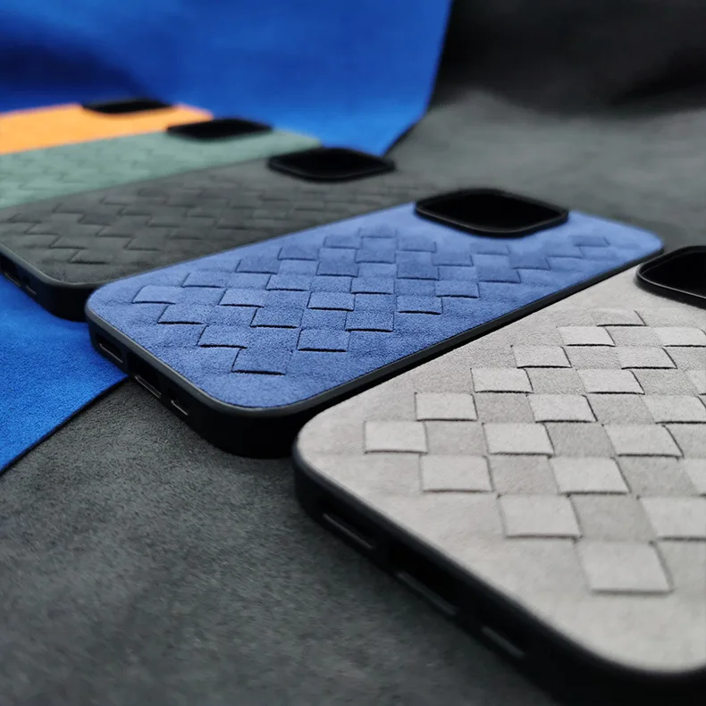 Comprar Funda de cuero de ALCANTARA para iPhone 13, 12 Pro Max, funda de teléfono de negocios de lujo, iPhone 14 Pro Max, patrón trenzado, diseño italiano