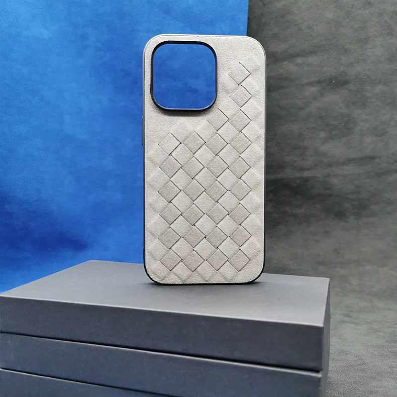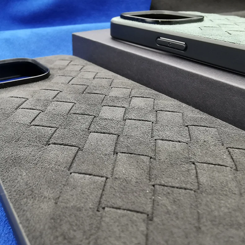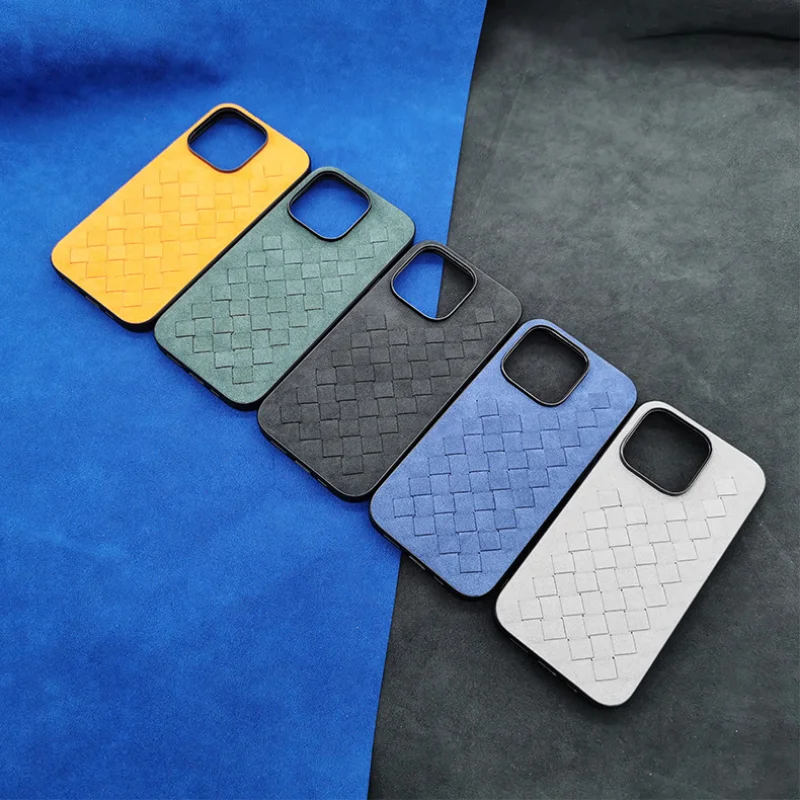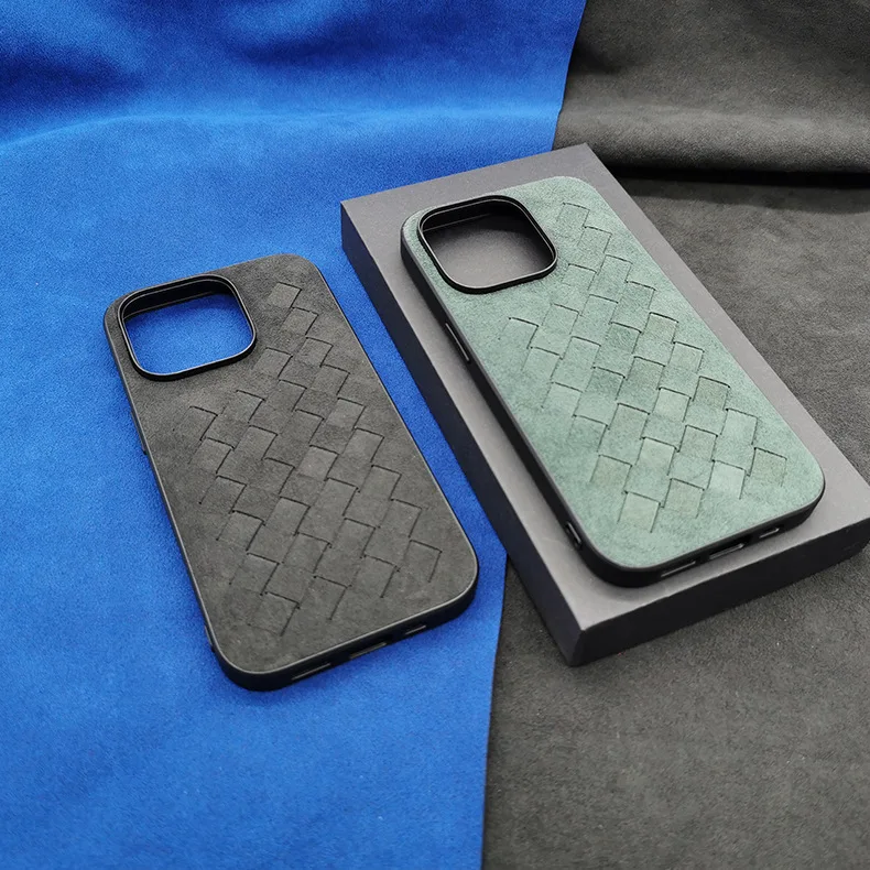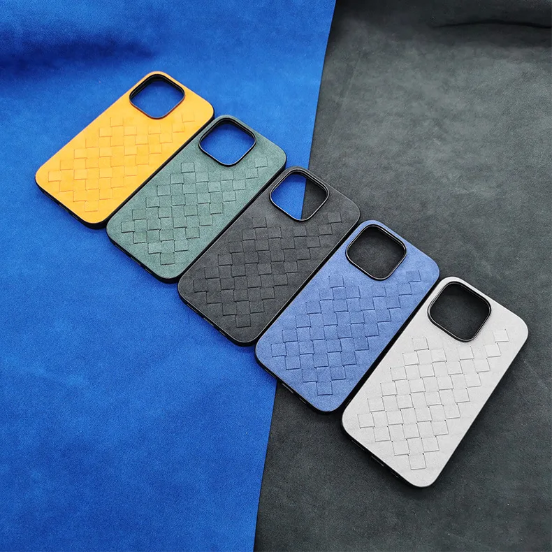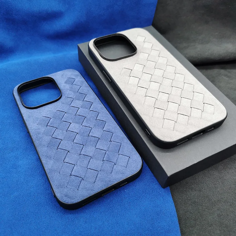 Comprar Funda de cuero de ALCANTARA para iPhone 13, 12 Pro Max, funda de teléfono de negocios de lujo, iPhone 14 Pro Max, patrón trenzado, diseño italiano