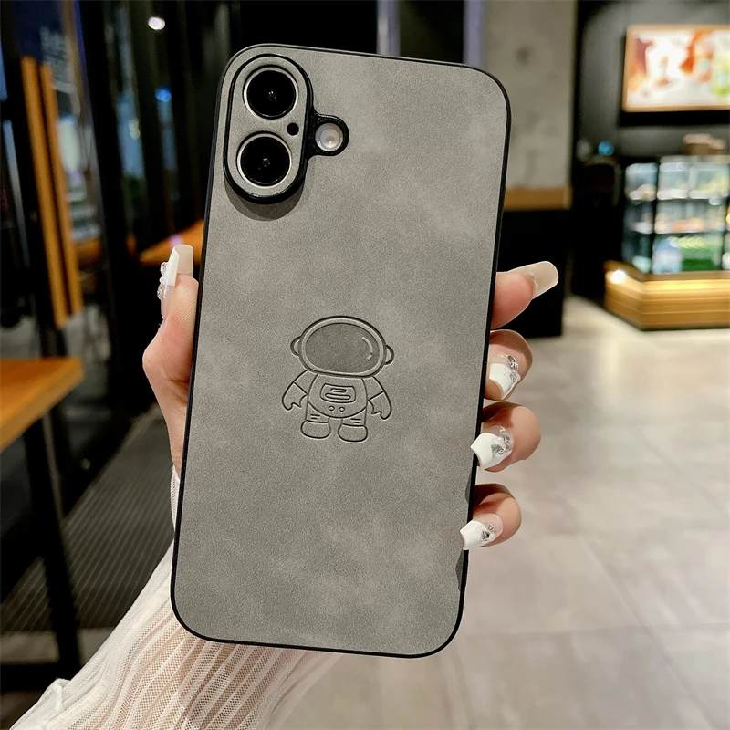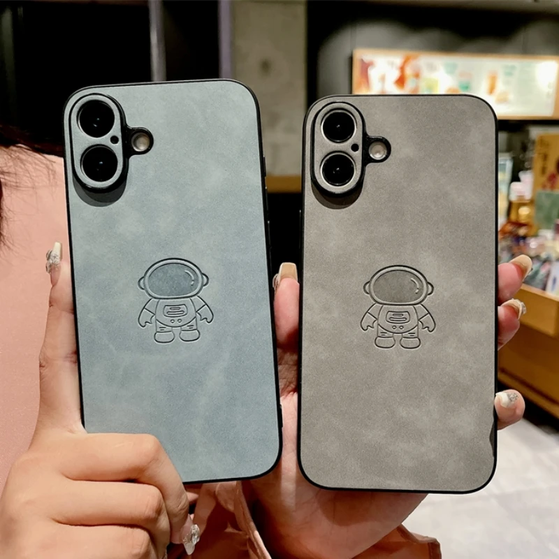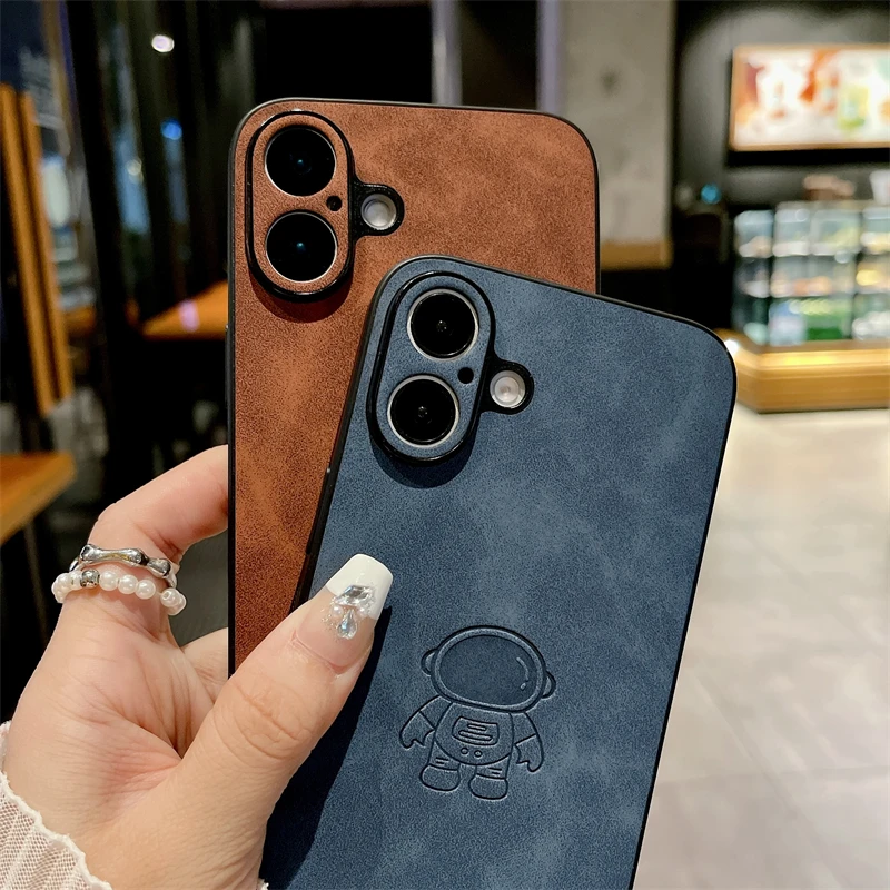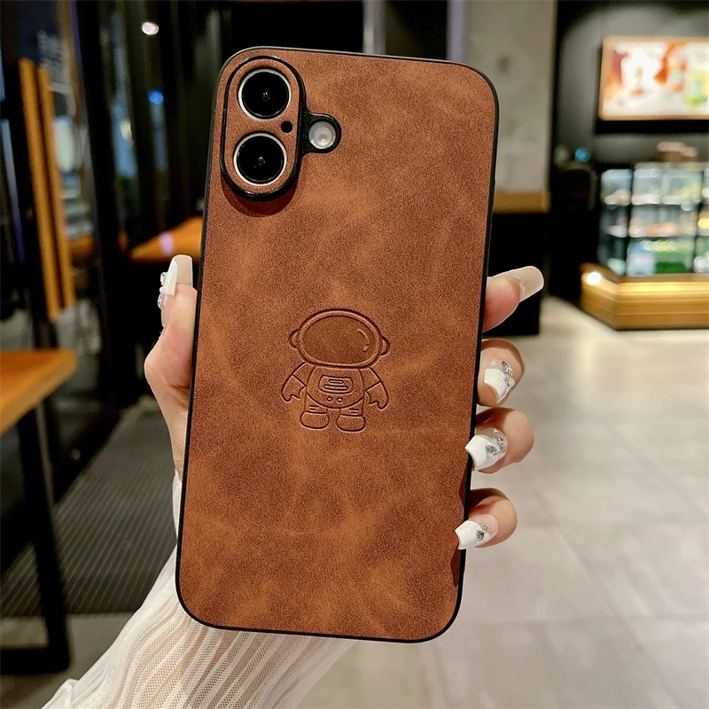 Funda de cuero de astronauta PU Retro para iPhone, carcasa trasera a prueba de golpes, moda, 16, 15, 14, 13, 12, 11 Pro Max, 16 Pro, 15 Plus