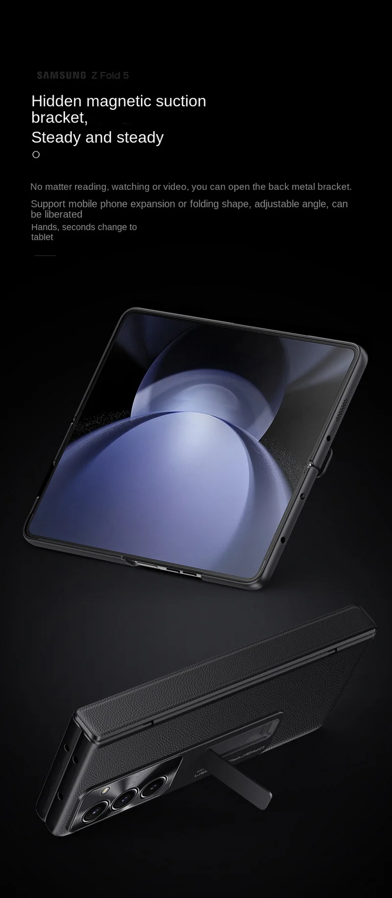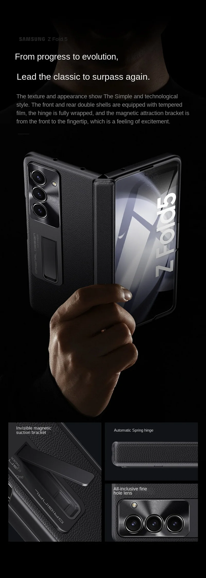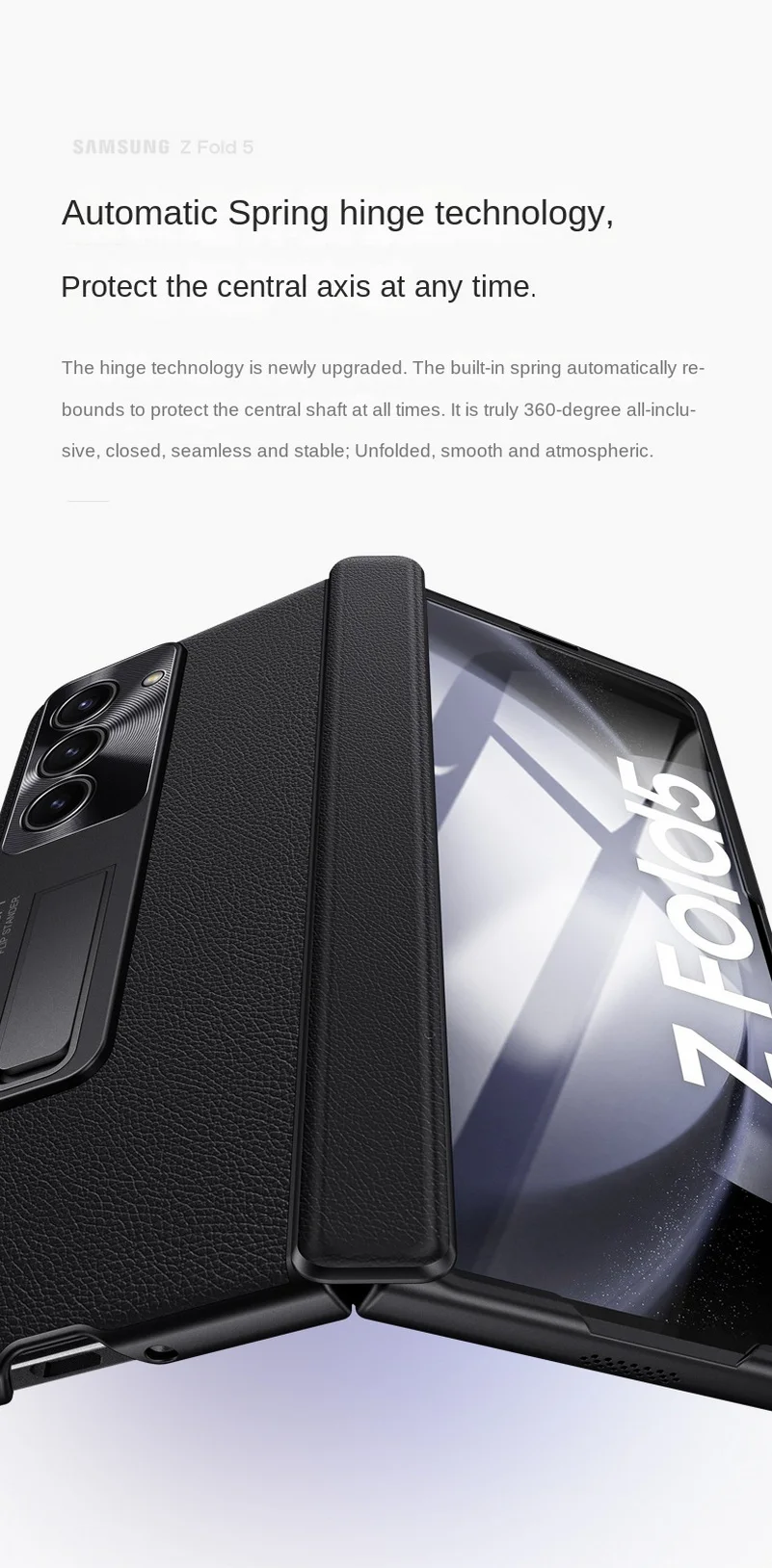 Comprar Funda de cuero con bisagra de resorte automática para Samsung Z Fold 5 Galaxy Z Fold5, vidrio templado, soporte todo incluido, cubierta protectora para cámara
