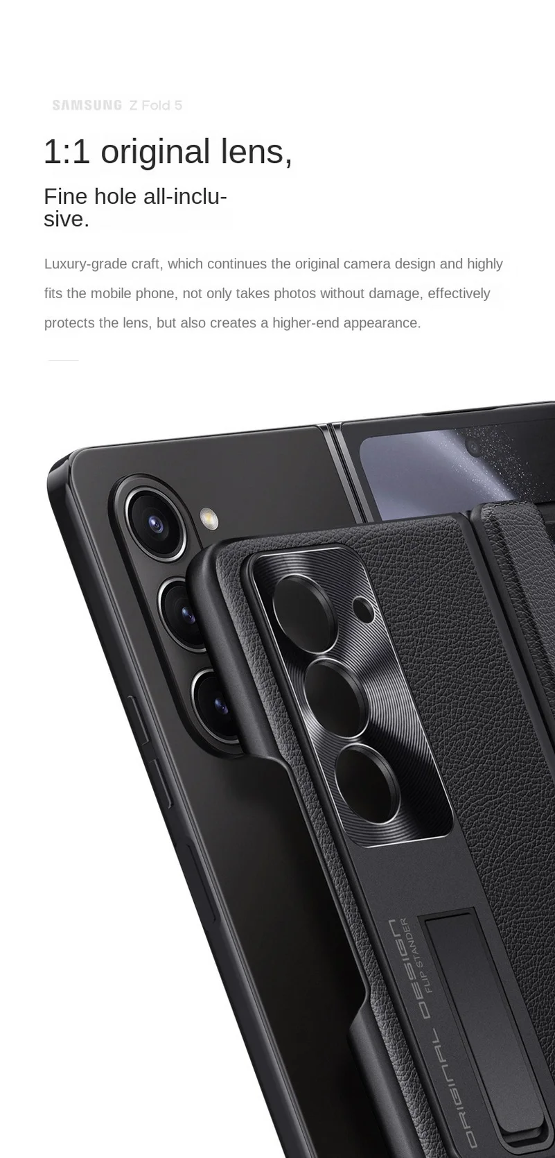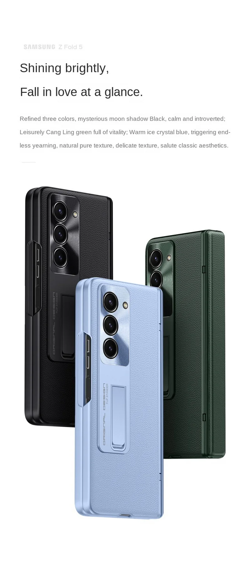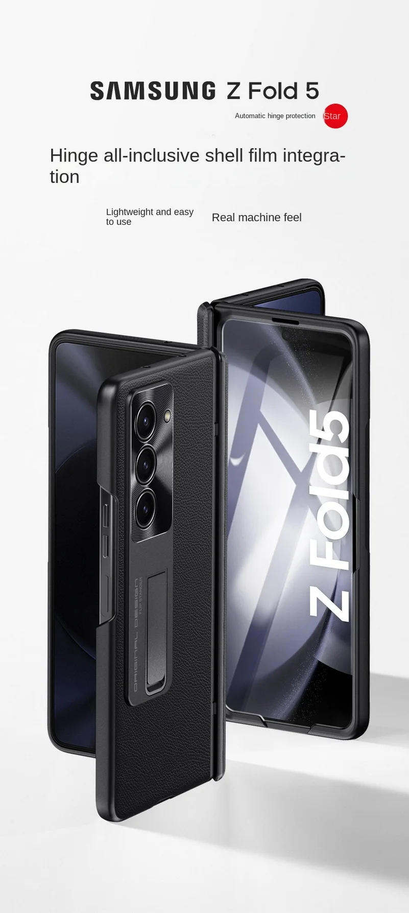 Comprar Funda de cuero con bisagra de resorte automática para Samsung Z Fold 5 Galaxy Z Fold5, vidrio templado, soporte todo incluido, cubierta protectora para cámara