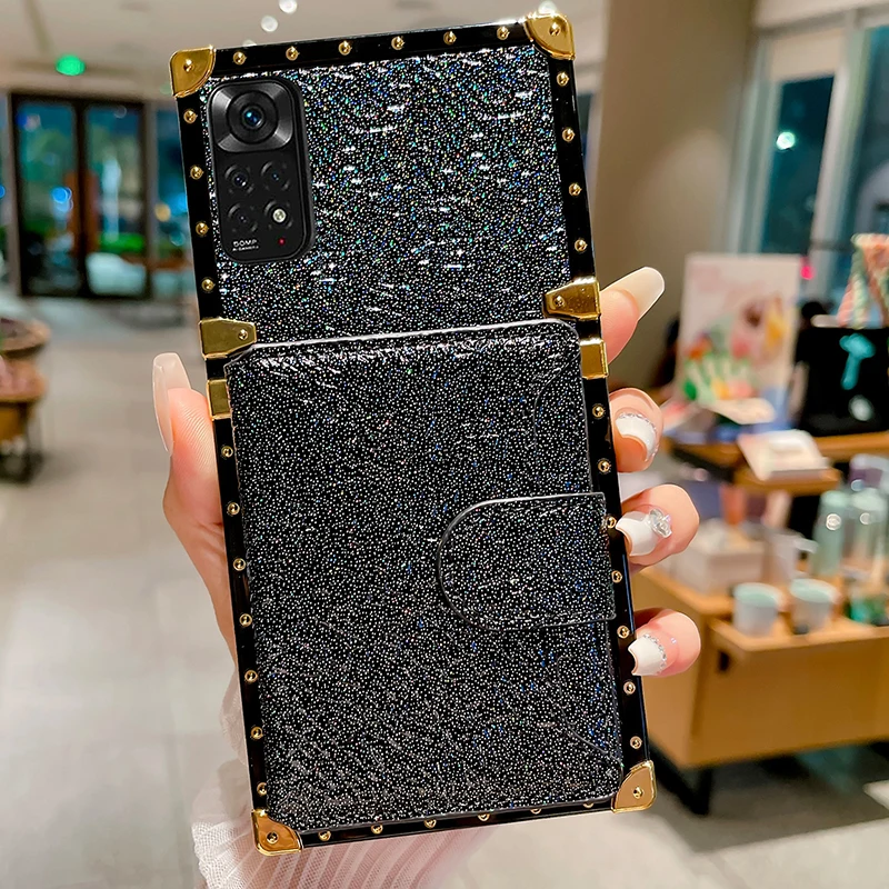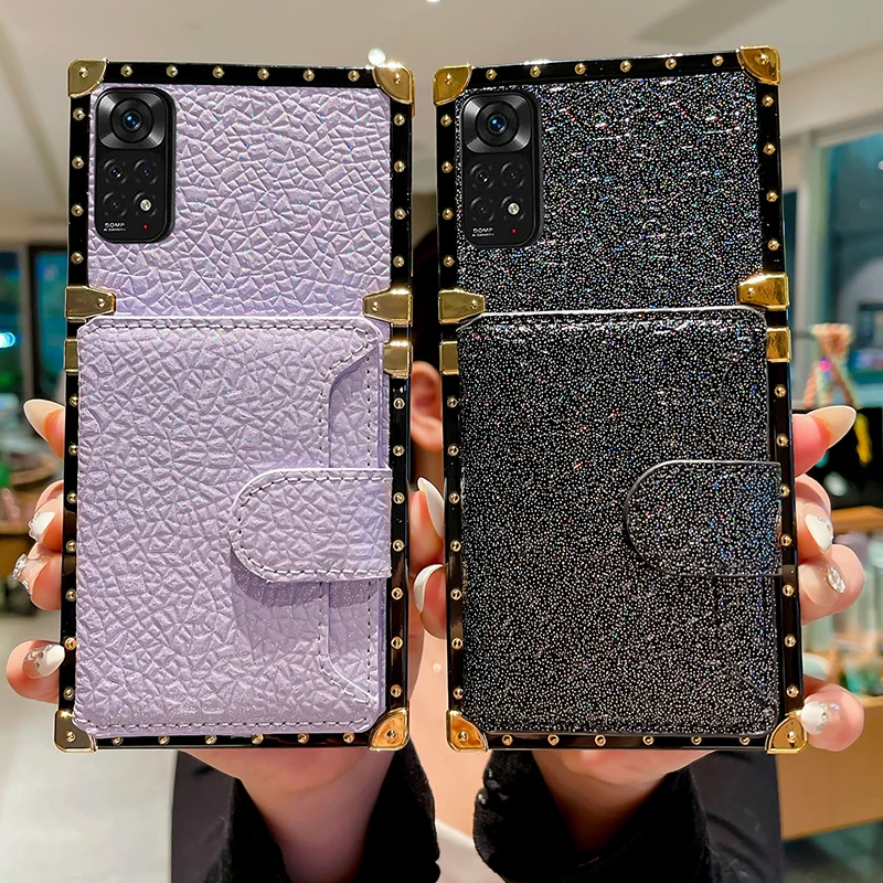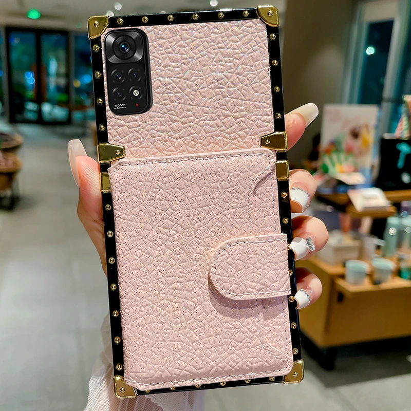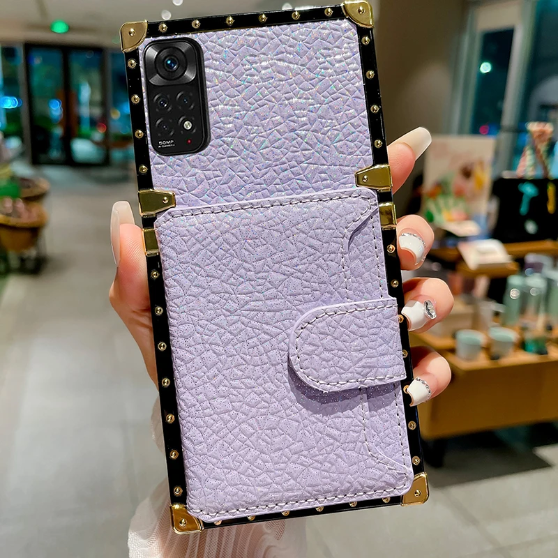 Comprar Funda de cuero brillante para Xiaomi Redmi Note 12, 11, 10, 9 Pro, X3, NFC, tarjetero, funda con patrón de Lichee brillante