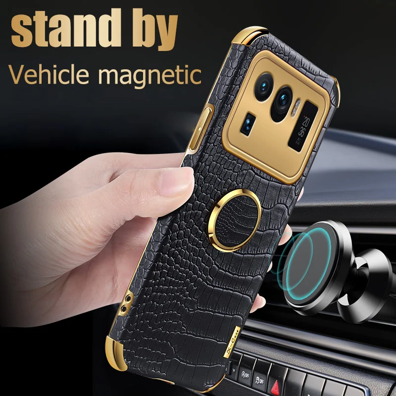 Comprar Funda de cuero de cocodrilo para Xiaomi Mi11 Ultra Mi11 Lite, funda de coche Magent, soporte de teléfono para Xiaomi Mi 11 Ultra 11 lite