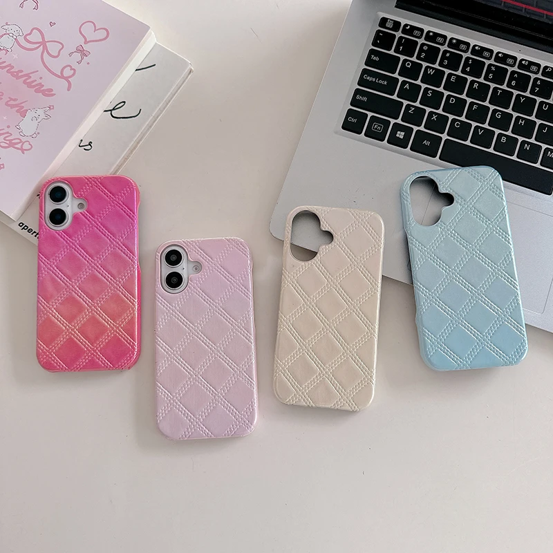 Funda de cuero de Color degradado con textura de rombo geométrico de lujo para iPhone 16 15 13 12 11 Pro Max 14 Plus, funda trasera para teléfono