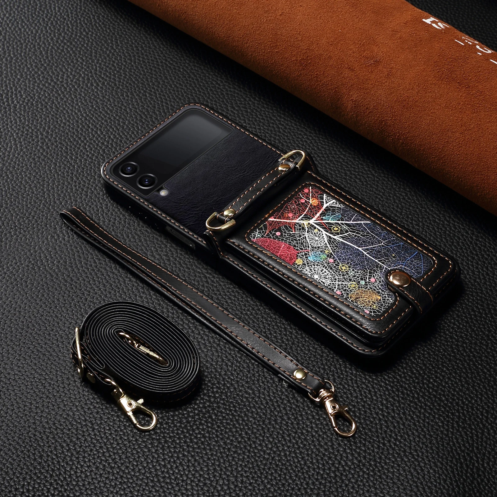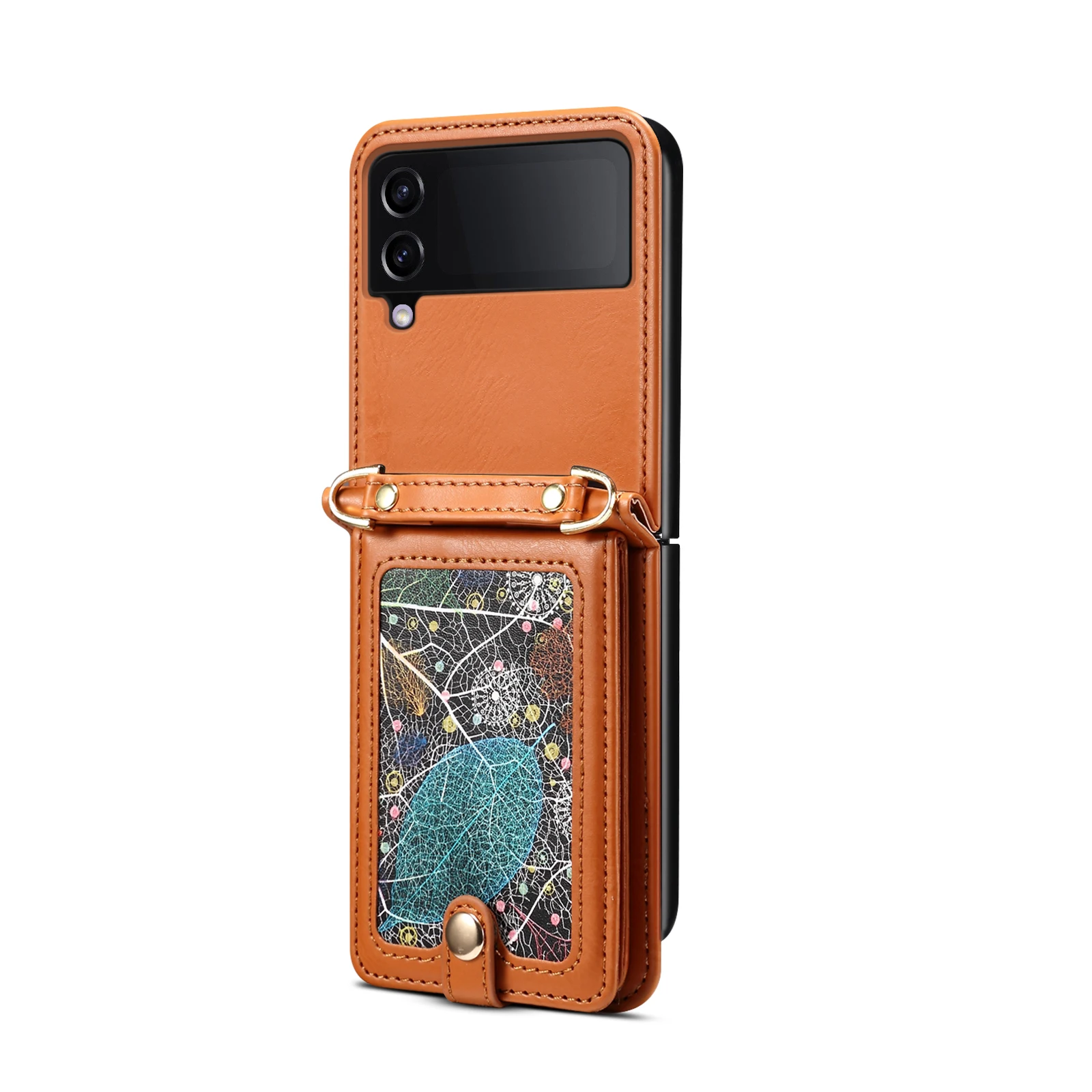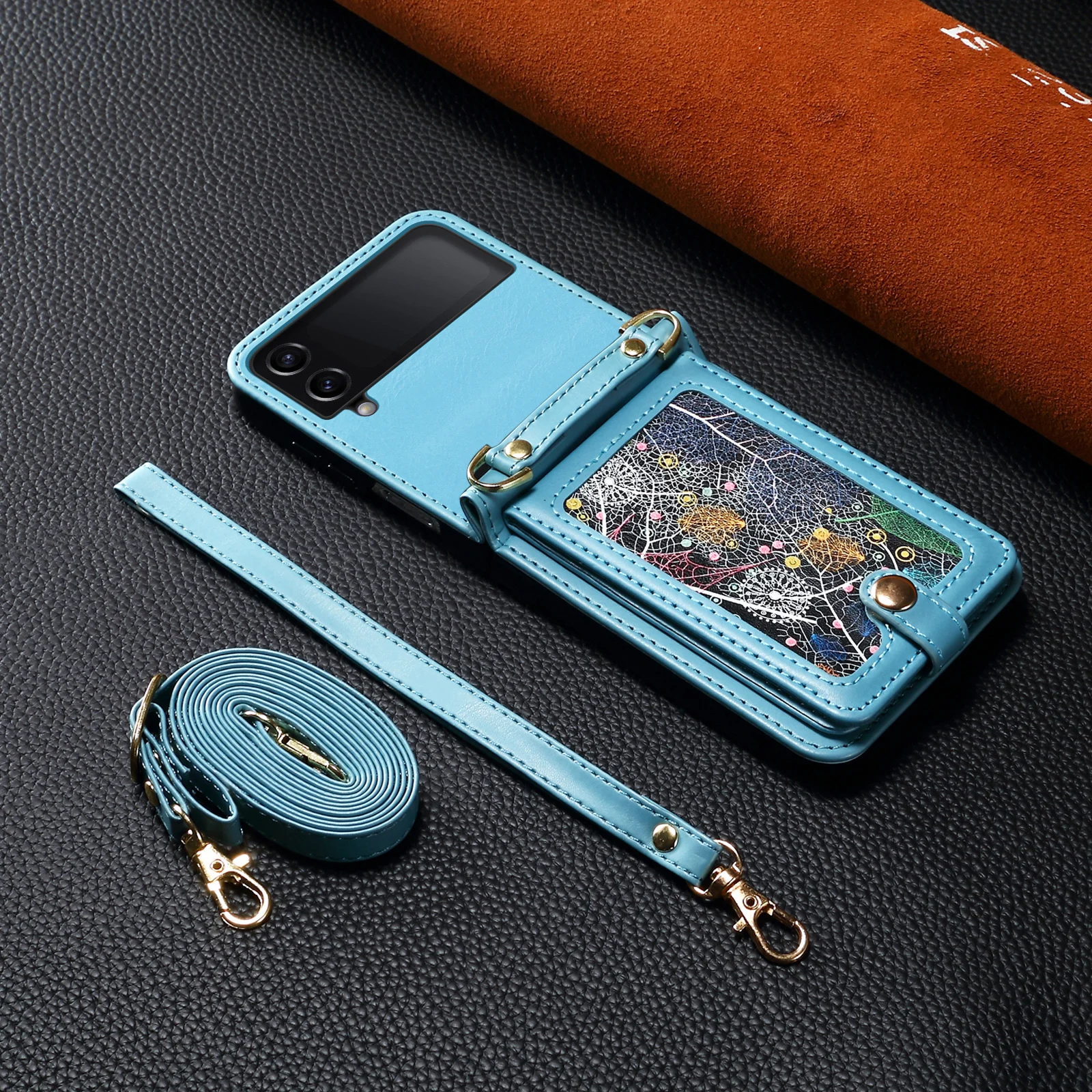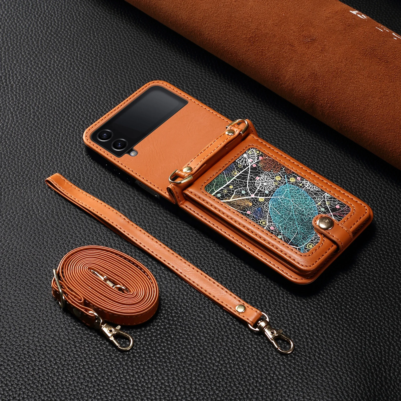 Comprar Funda de cuero con cordón largo para Samsung Galaxy Z Flip 5, 4, 3, 5G, Flip5, Flip4, bolso cruzado