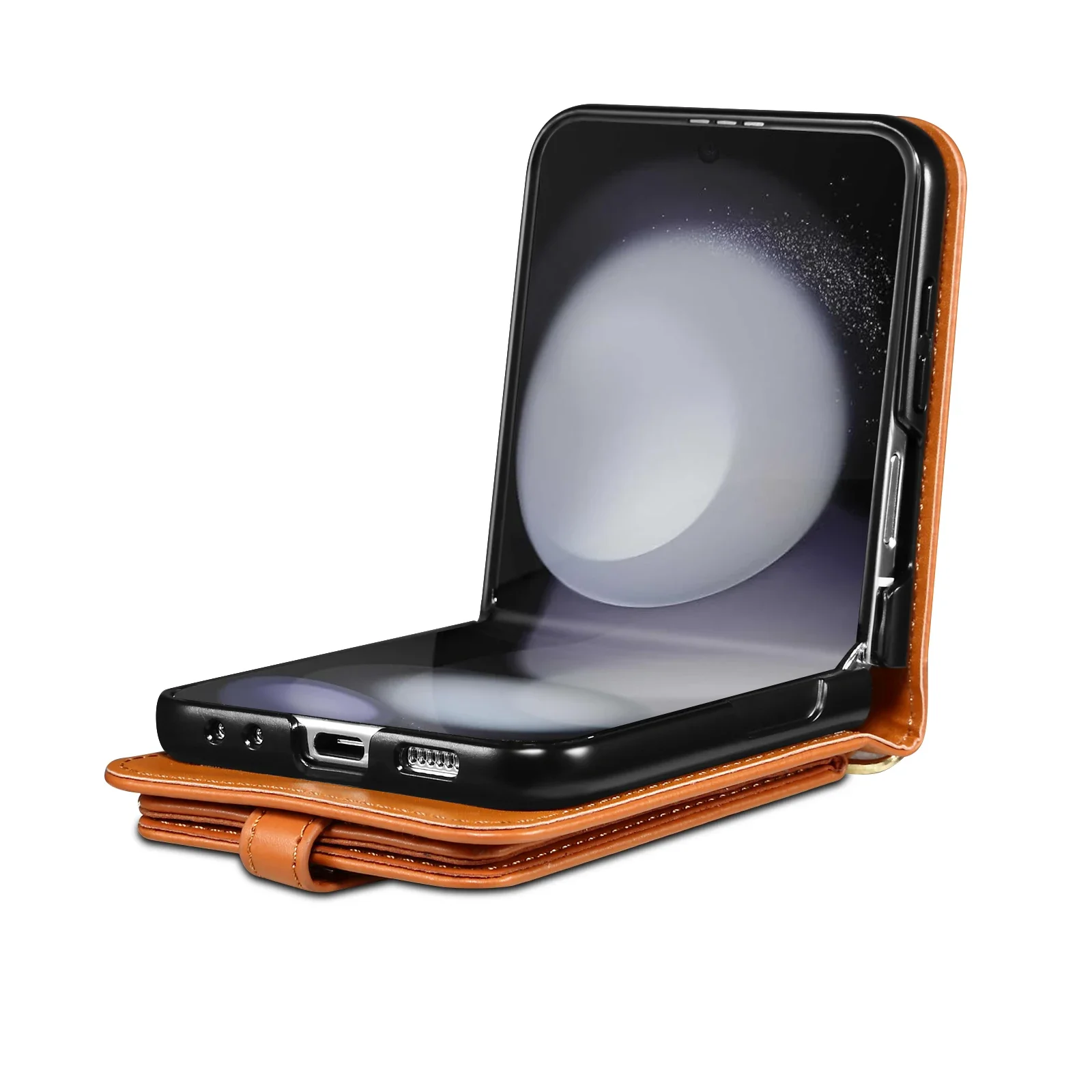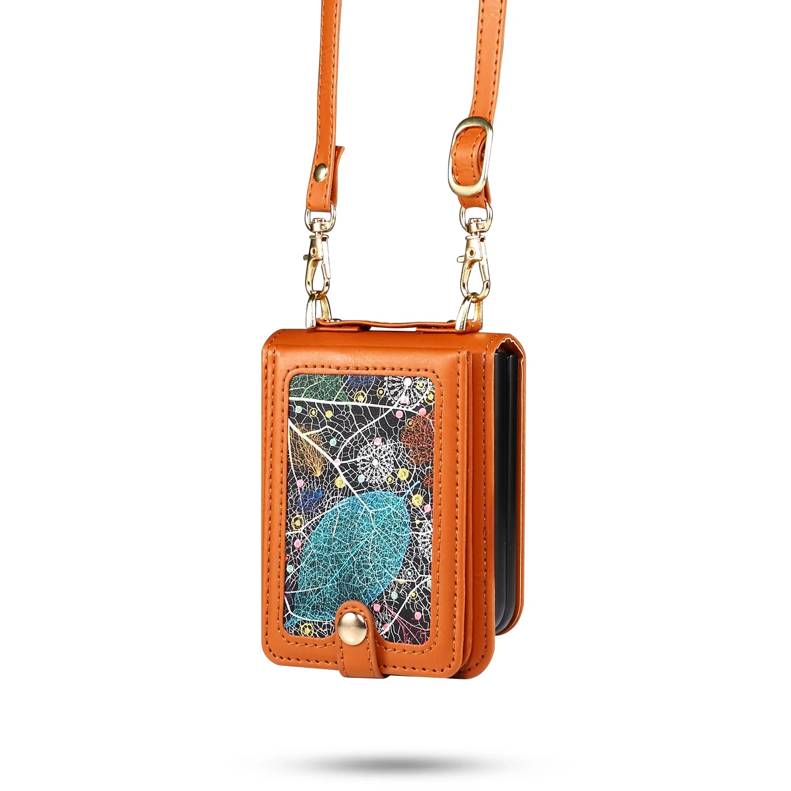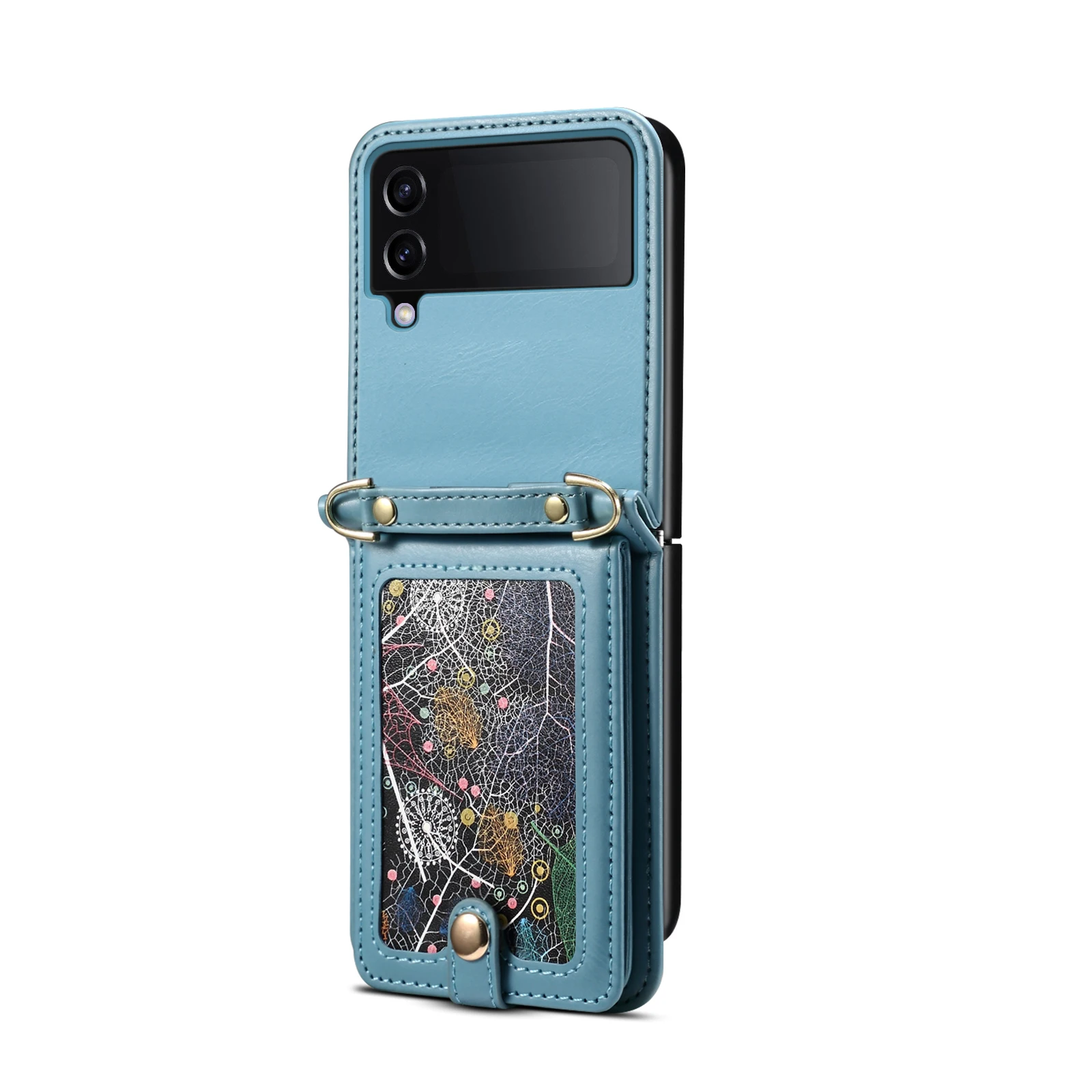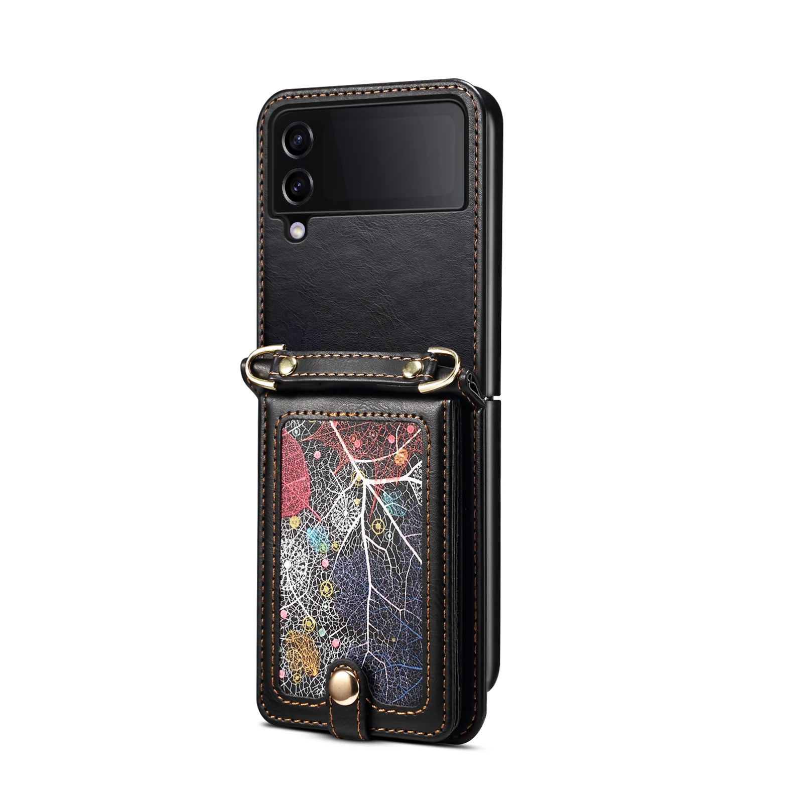 Comprar Funda de cuero con cordón largo para Samsung Galaxy Z Flip 5, 4, 3, 5G, Flip5, Flip4, bolso cruzado