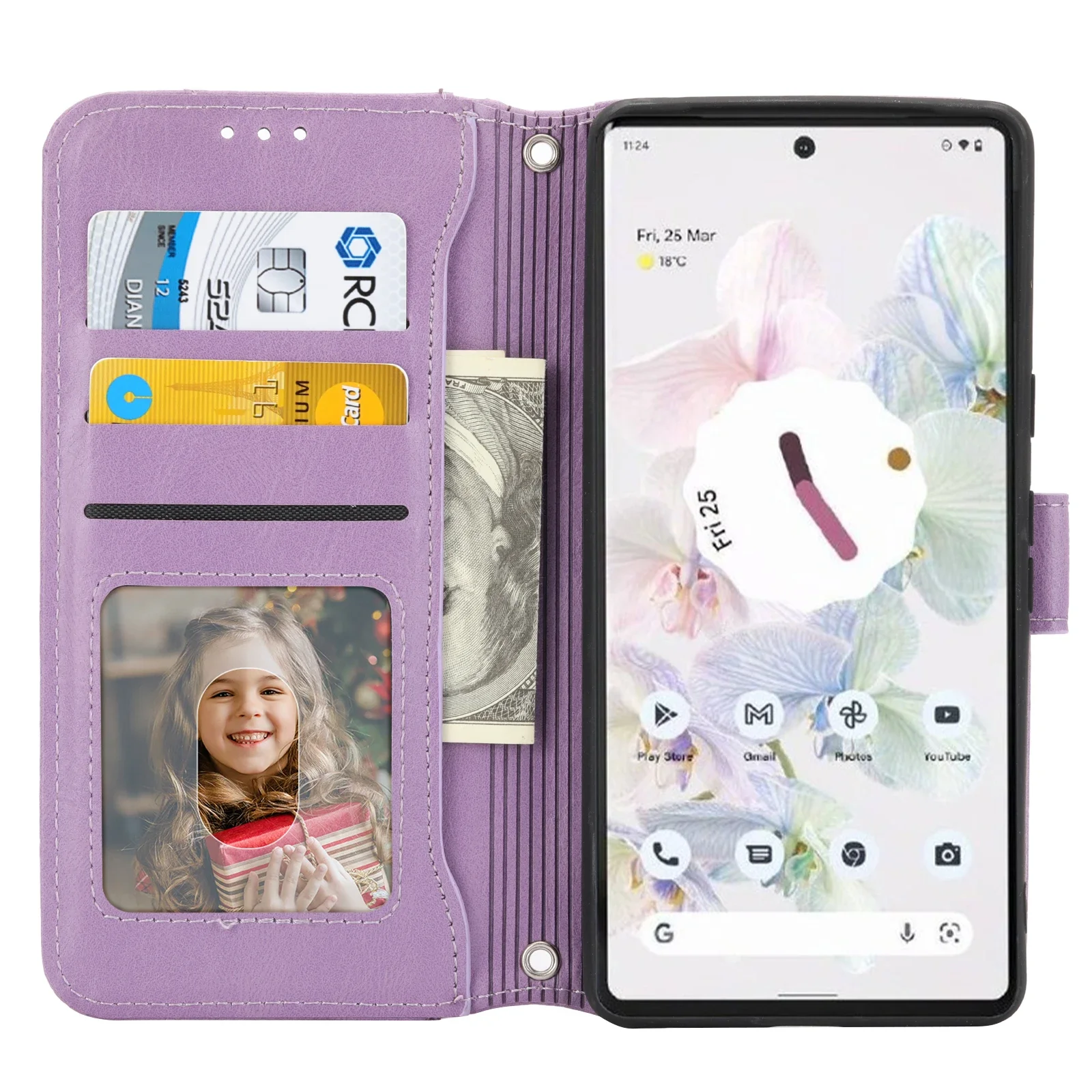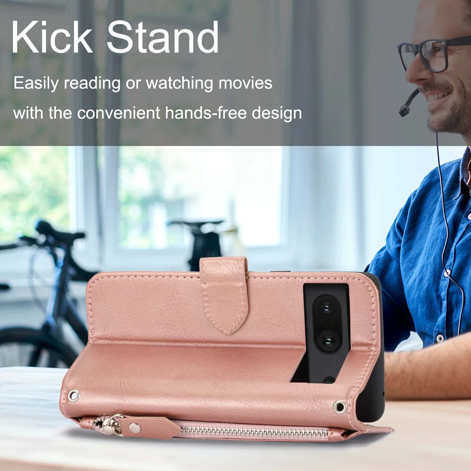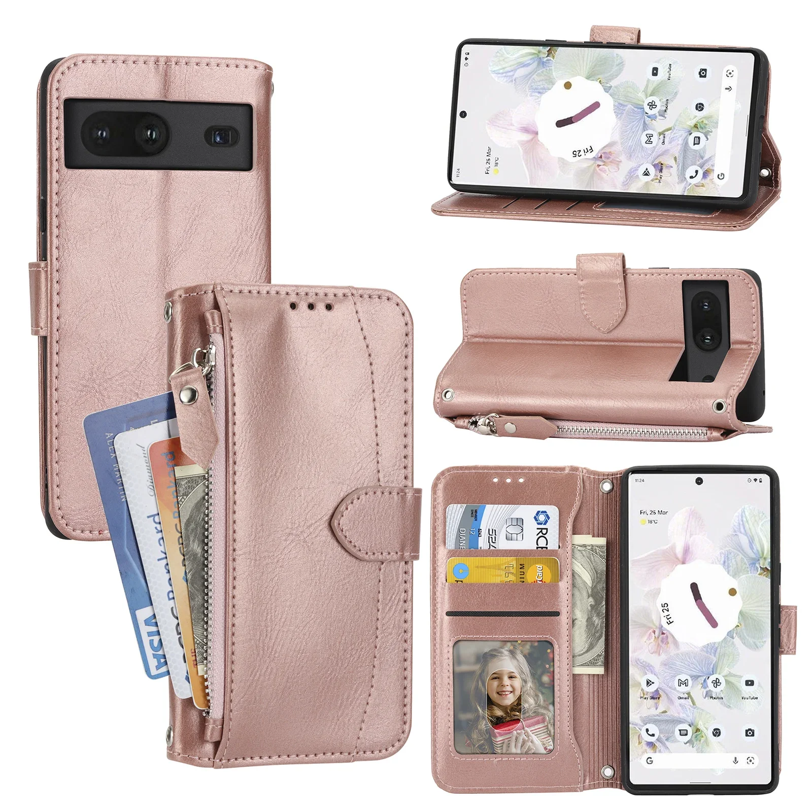 Comprar Funda de cuero con cremallera cruzada para Google Pixel 7, 7A, 8 Pro, soporte para libro, bolsa de bolsillo, funda larga con cordón
