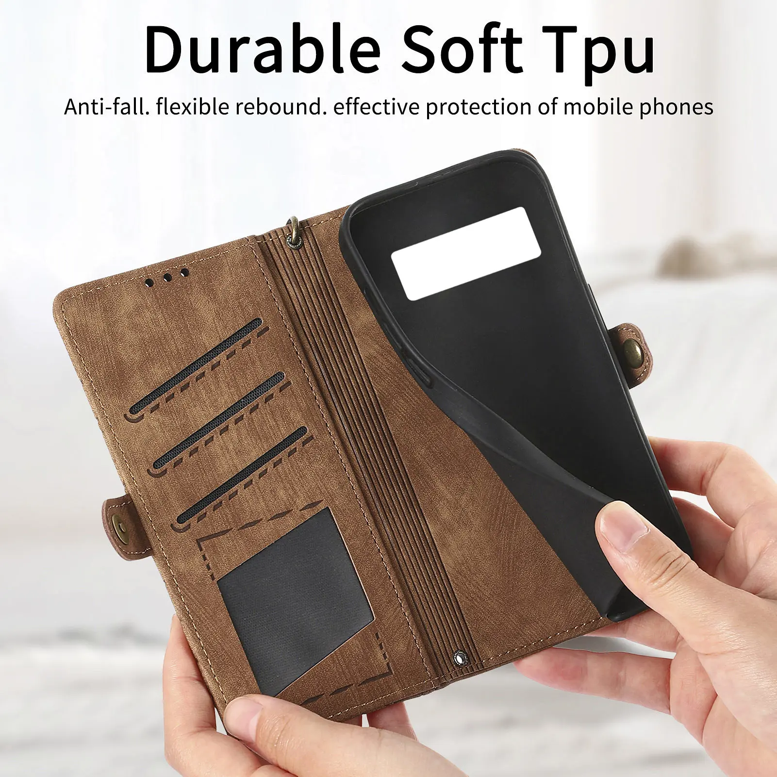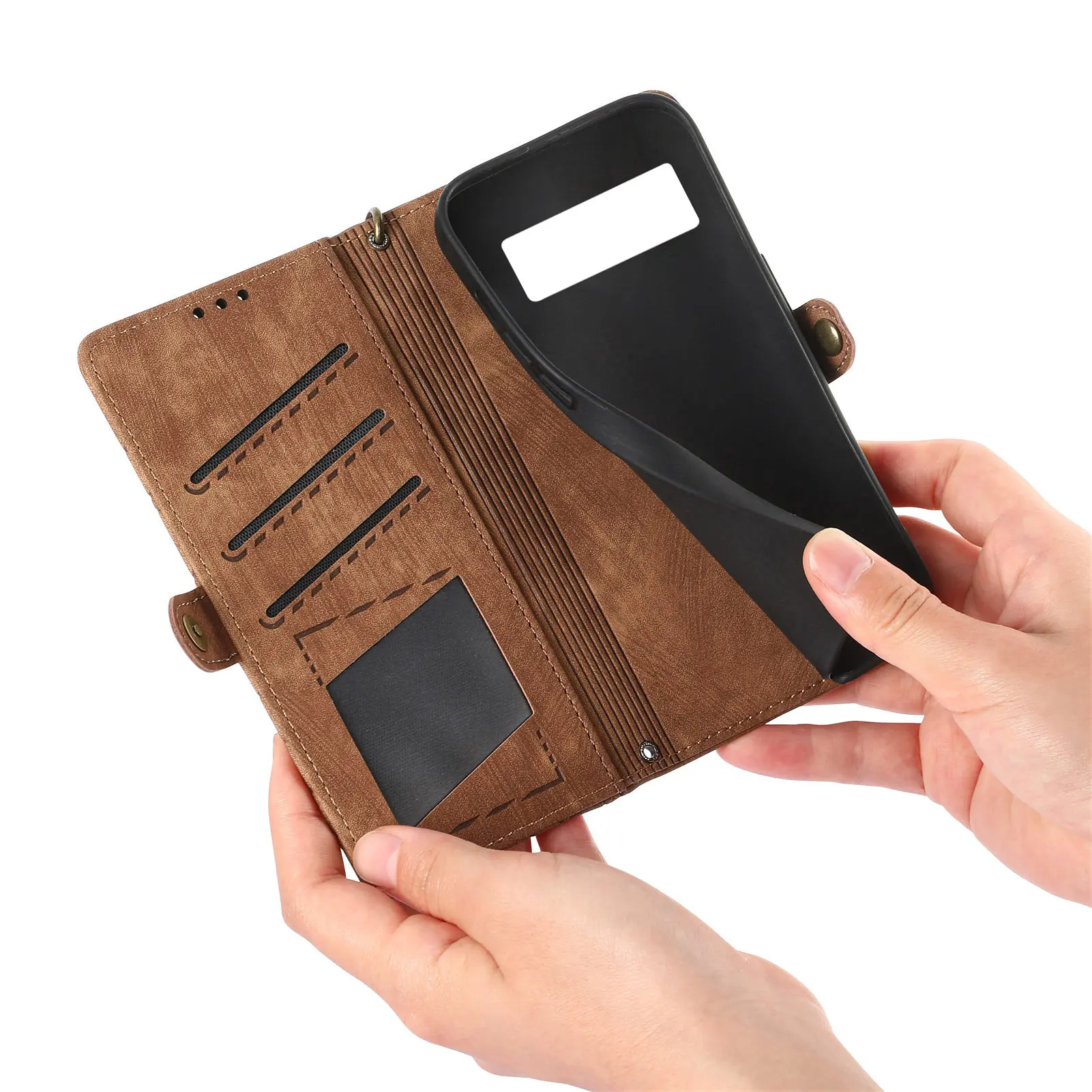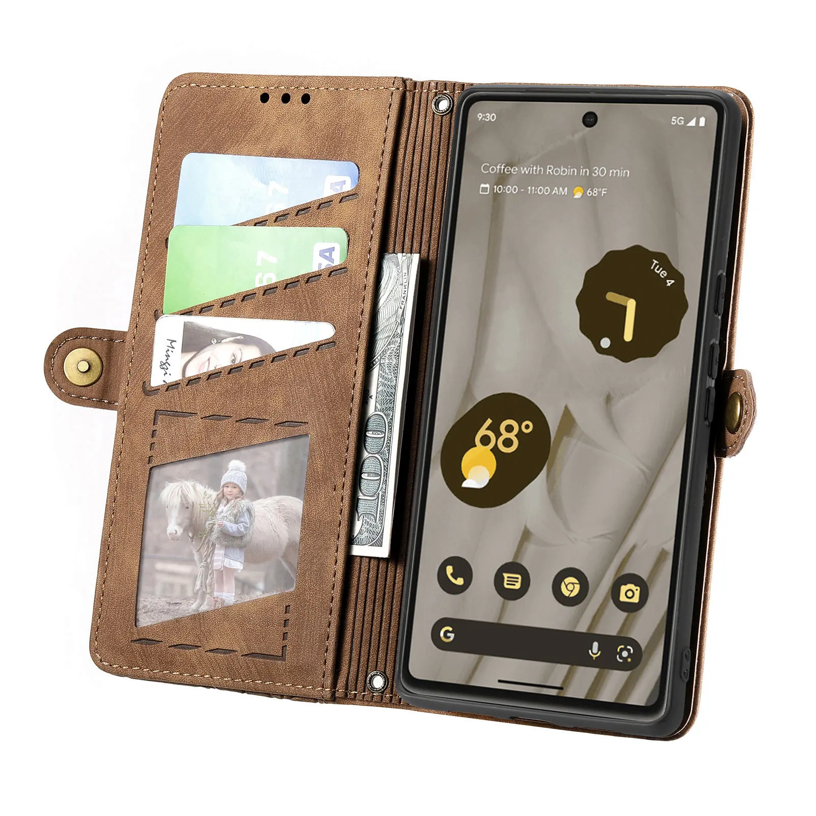 Comprar Funda de cuero con cremallera para Google Pixel 7 Pro 7A 6A 6 8 5G, cartera con bolsa para tarjetas, protección completa, monedero, correa de mano, funda de bolsillo con tapa para libro