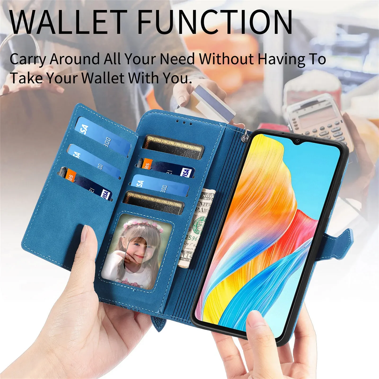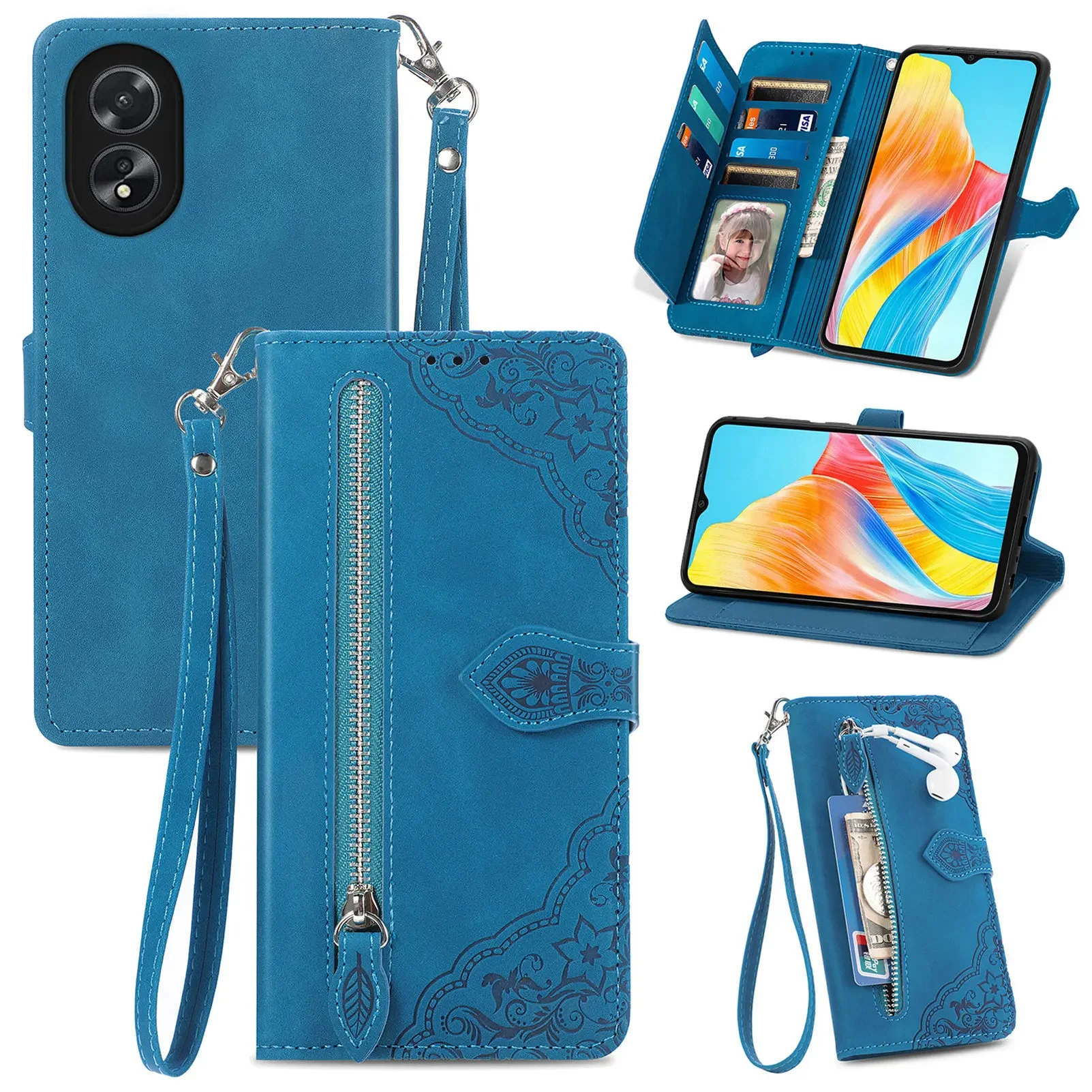 Cremallera tarjetas Solt Flip cuero cartera flor funda para OPPO A58 A78 A38 A54 A74 A57 A55 C55 C53 Correa libro bolsa bolsillo correa cubierta