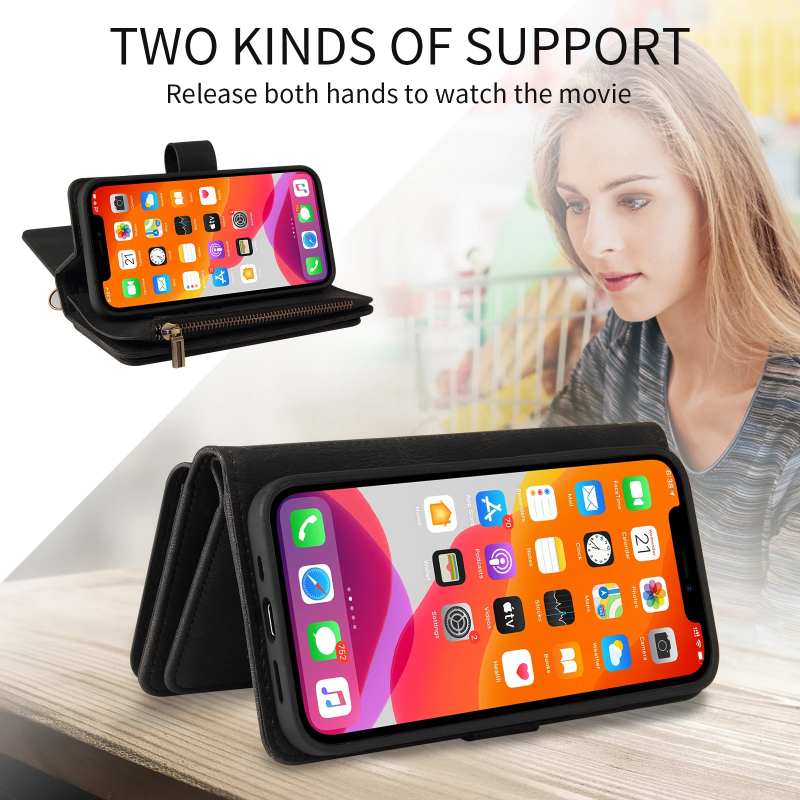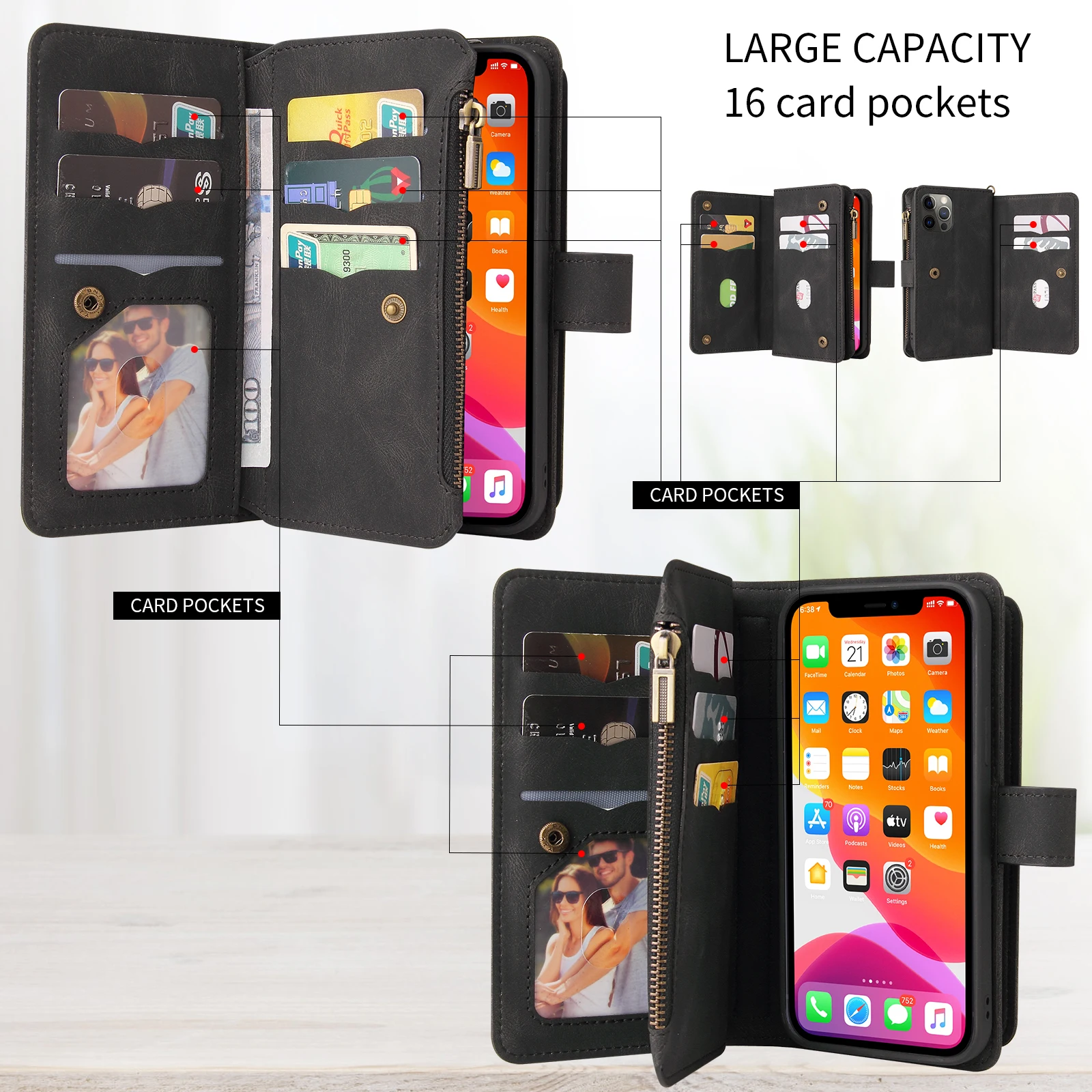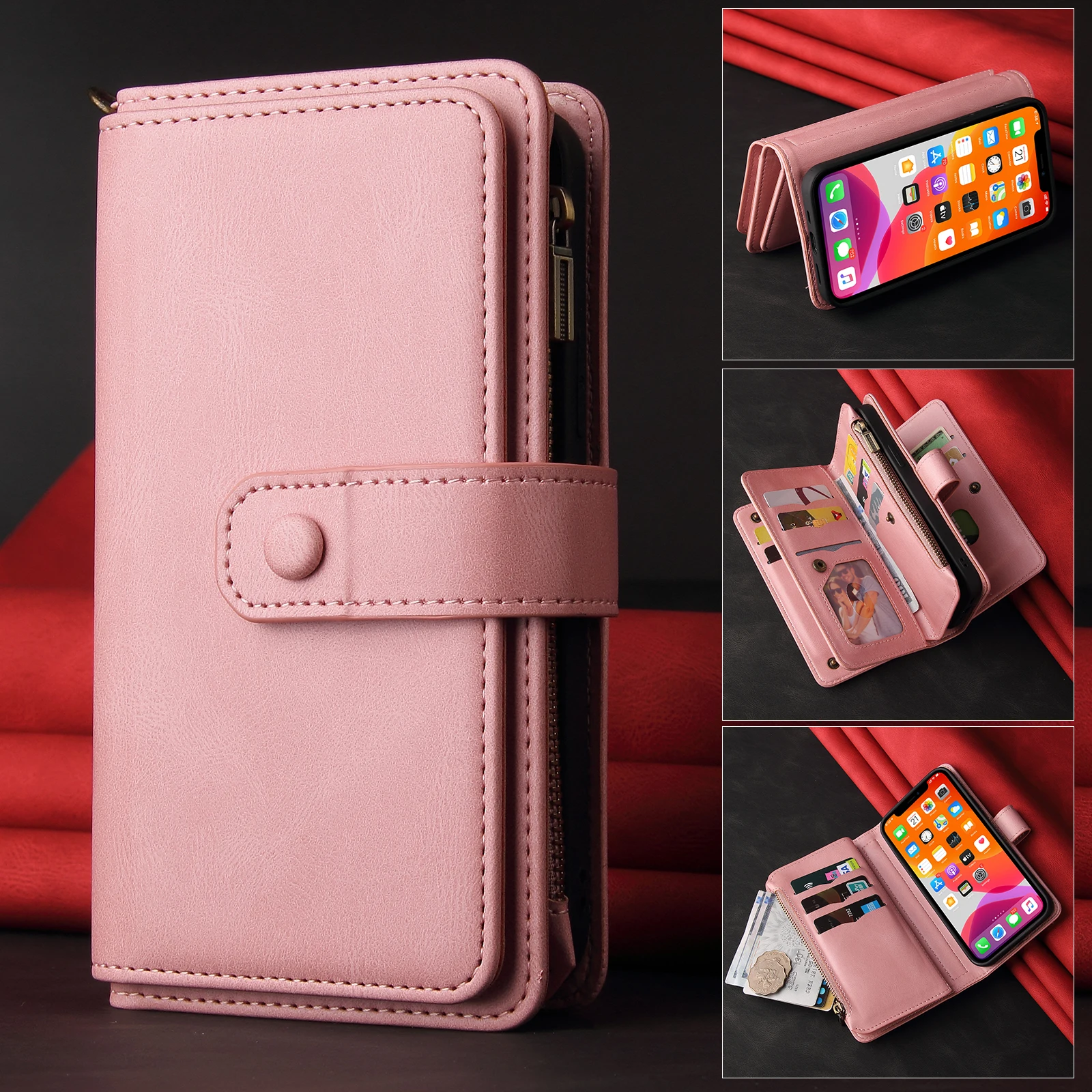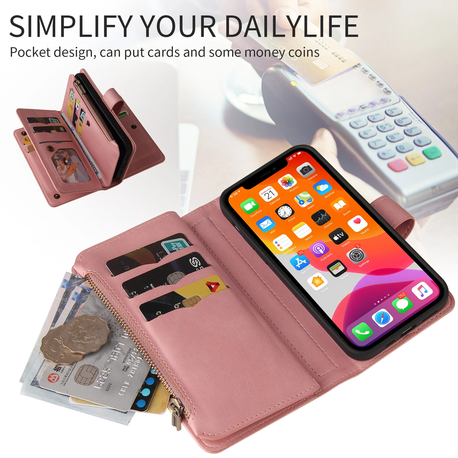 Funda de cuero con cremallera para OPPO, carcasa con varias tarjetas para modelos A15, A72, A73, A94, A96, A7, Realme, 8, 9i, 9Pro, C21, Reno7, Reno8T, Find x5 Pro