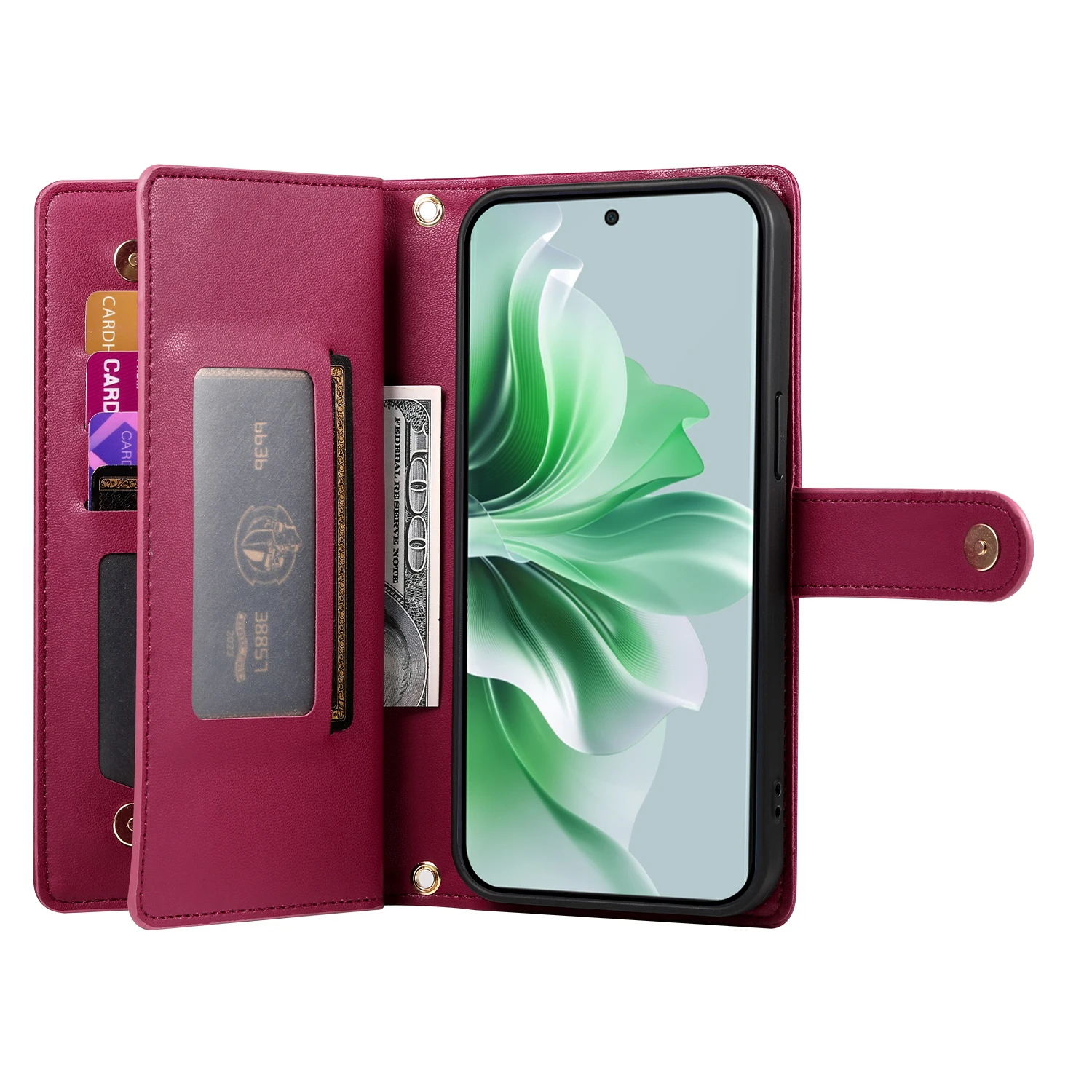 Funda de cuero con cremallera para tarjetas cruzadas Solt para OPPO Reno 11 Pro 11F 12 Plus A79 A18 A78 A38 A57 A77 A54