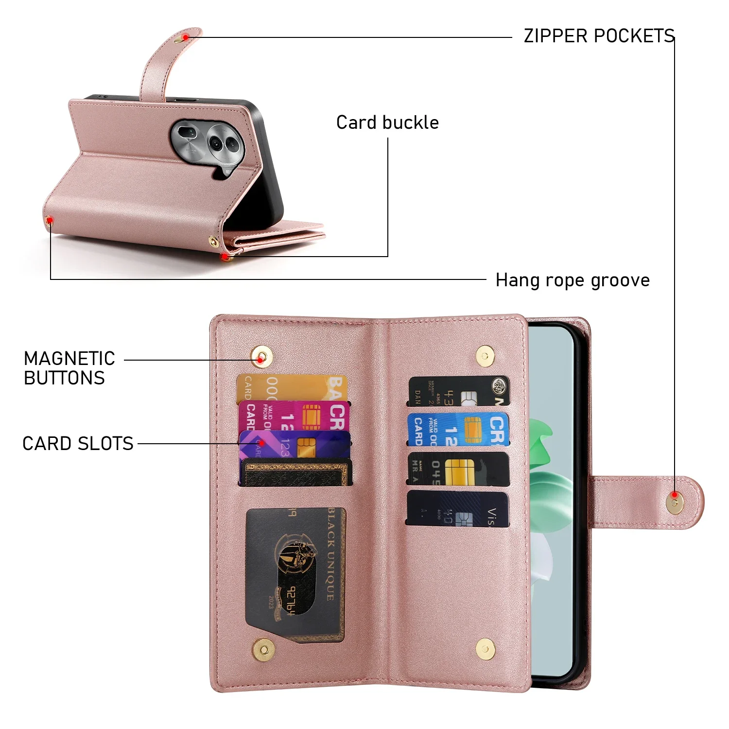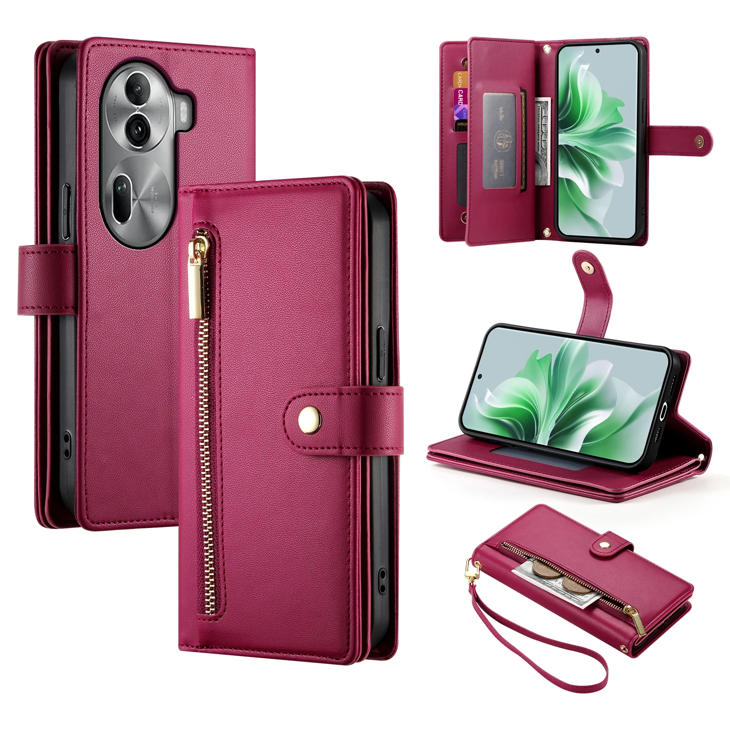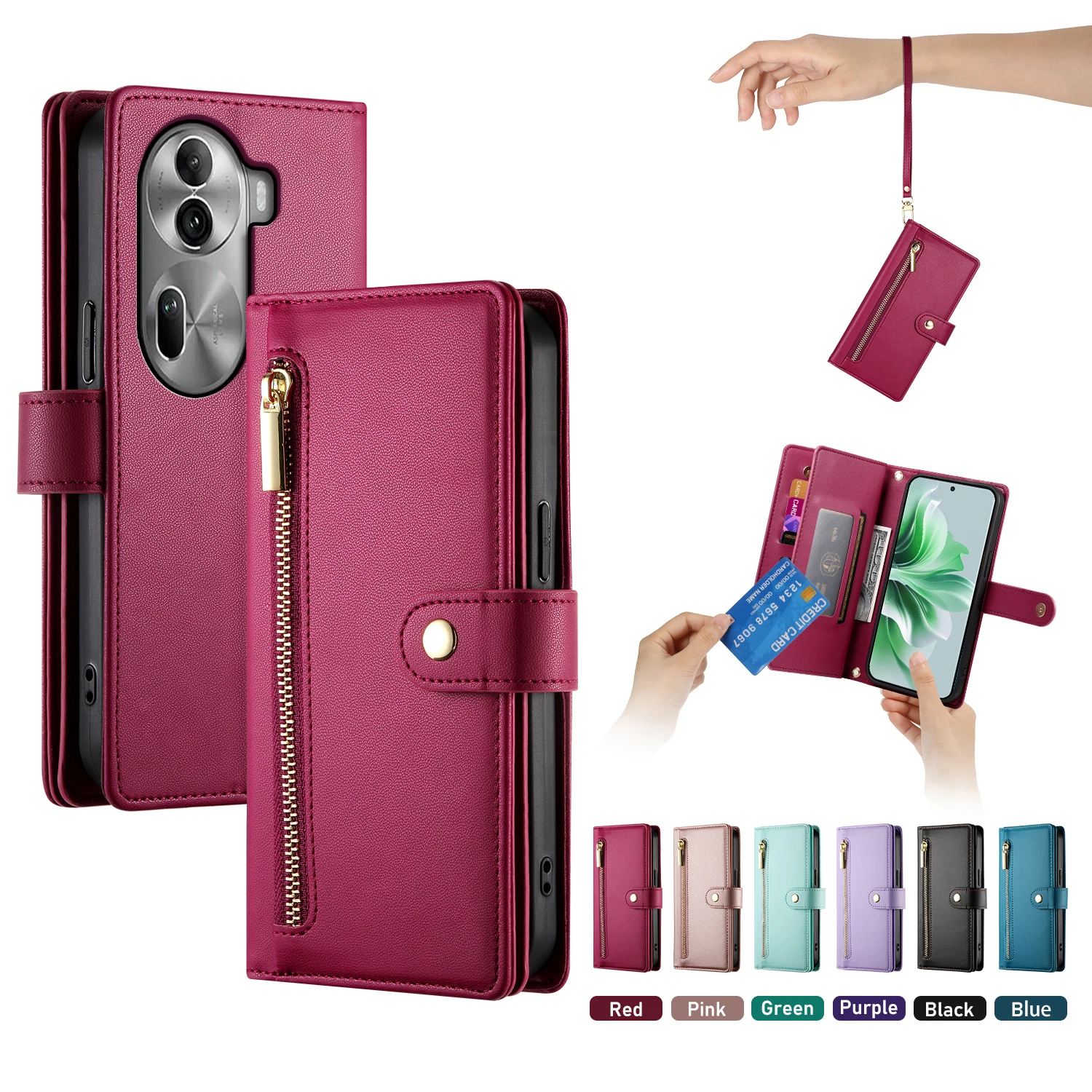 Funda de cuero con cremallera para OPPO, cartera con ranura para tarjetas cruzadas, para Reno 11 Pro, 11F, Realme, 12 Plus, A79, A18, A78, A38, A57, A77, A54