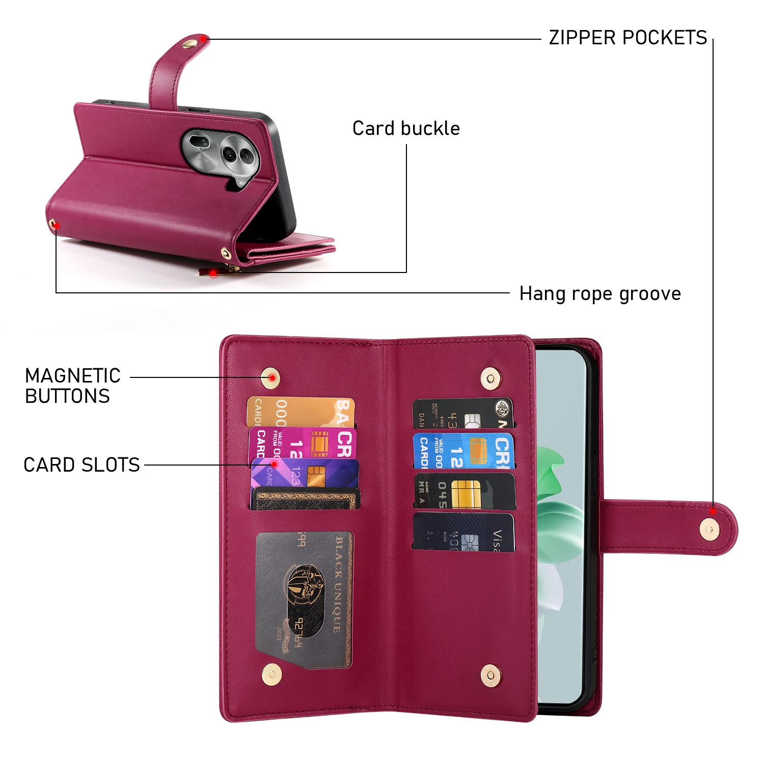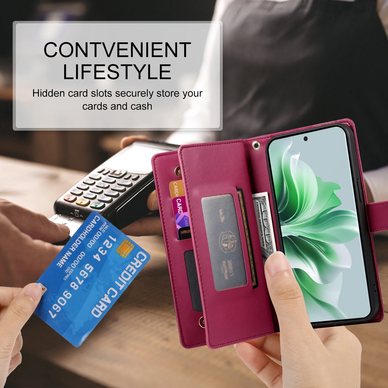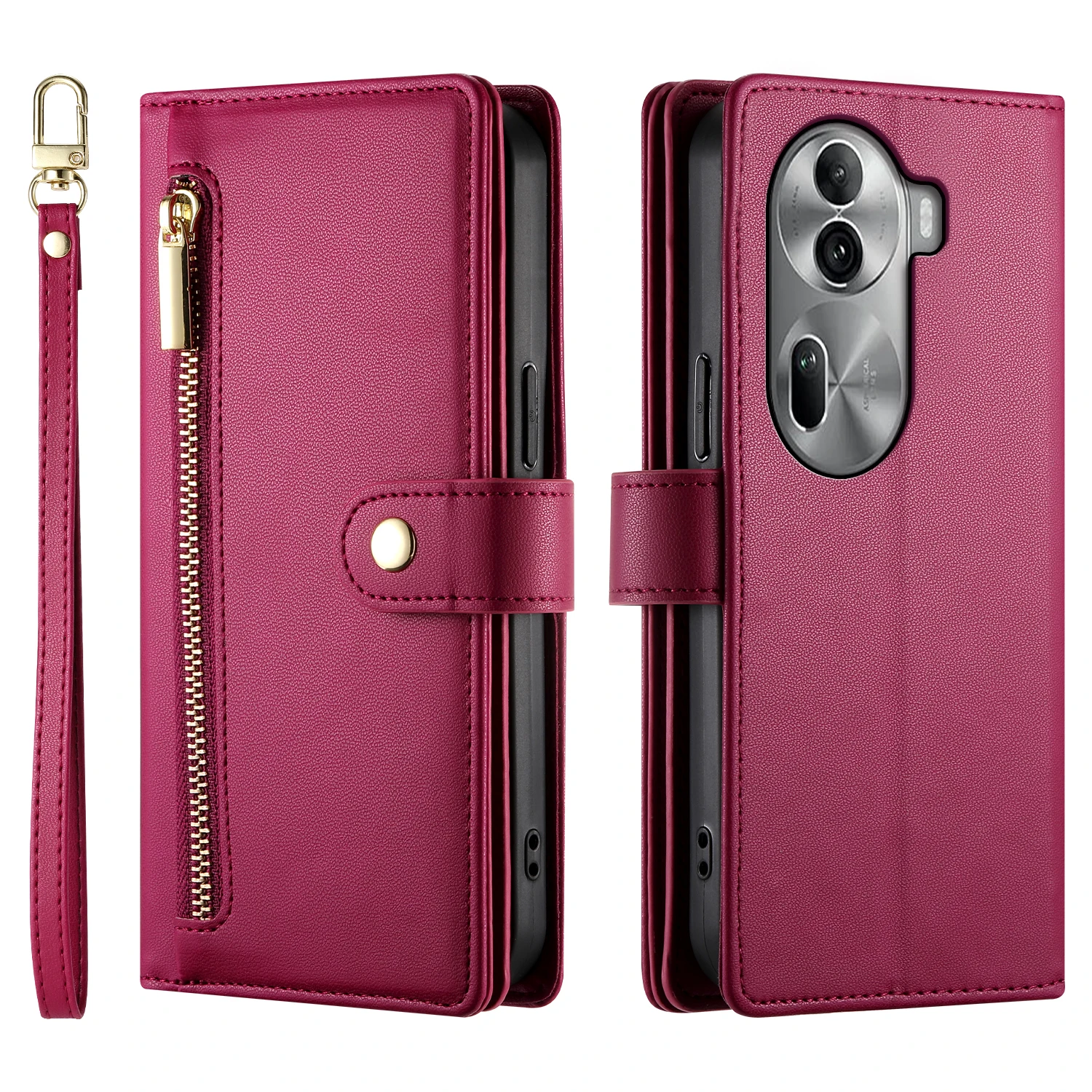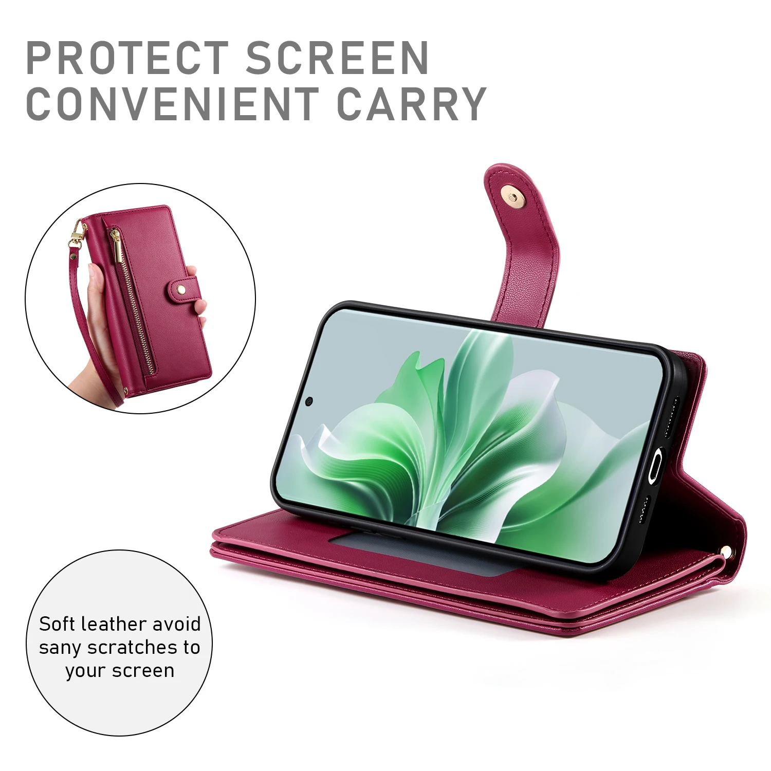 Funda de cuero con cremallera para OPPO, cartera con ranura para tarjetas cruzadas, para Reno 11 Pro, 11F, Realme, 12 Plus, A79, A18, A78, A38, A57, A77, A54