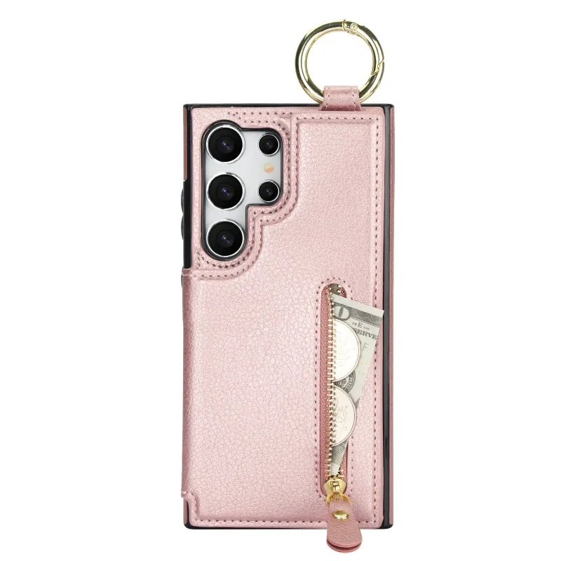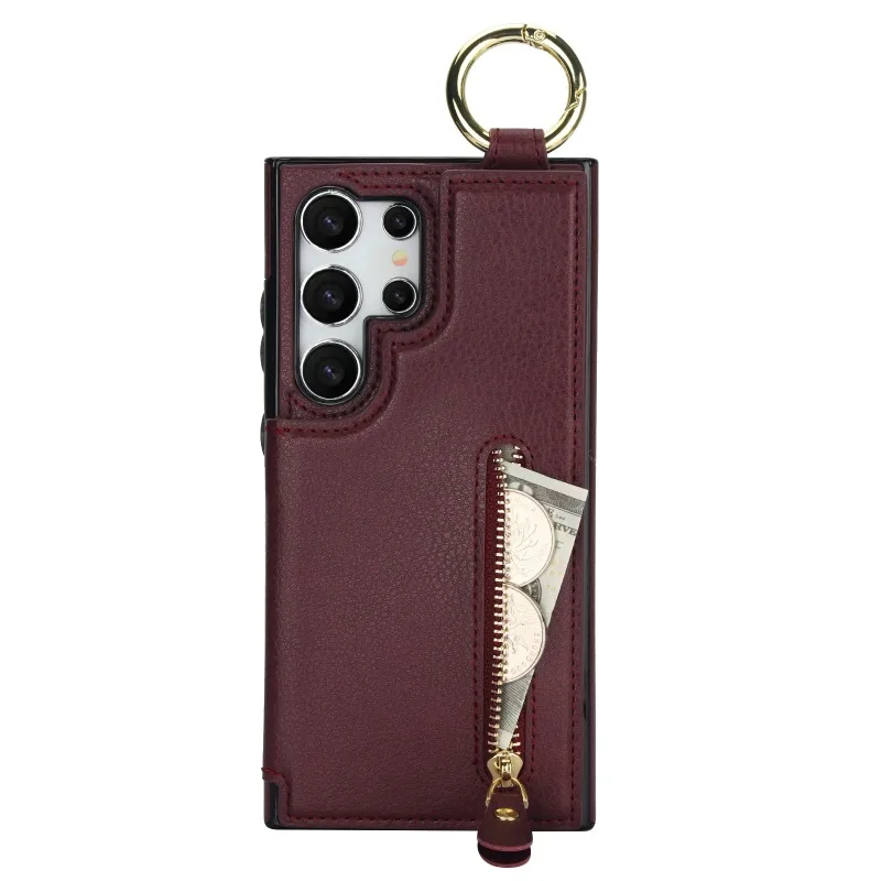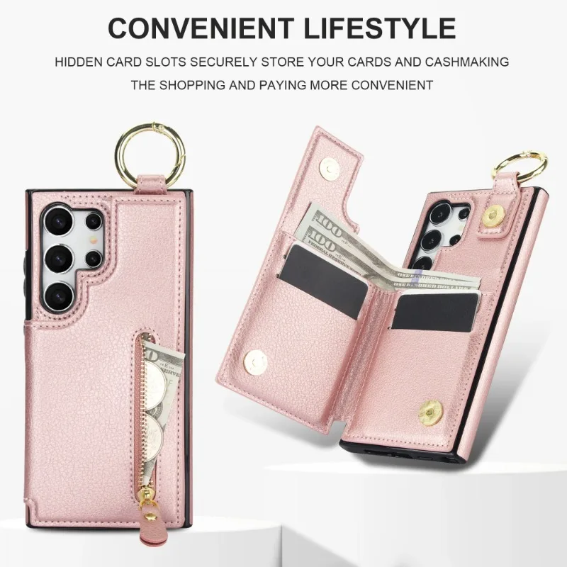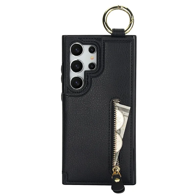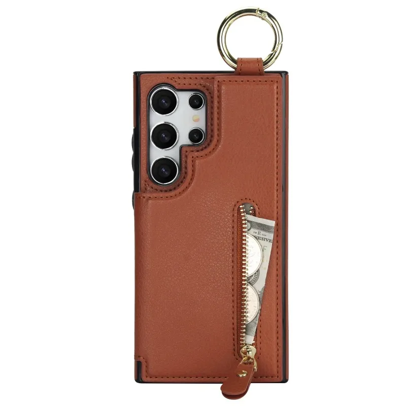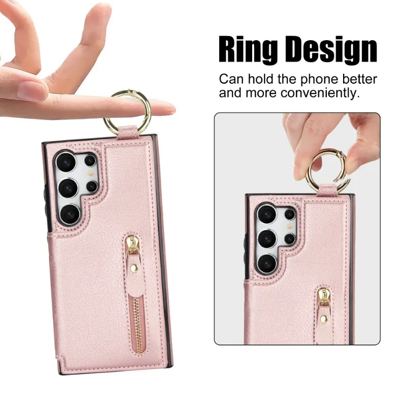Cremallera tarjetas Solt cuero cartera anillo titular caso para Samsung Galaxy S24 Ultra S23 FE S22 Plus S21 A55 A15 A35 A25 A54 A14 cubierta