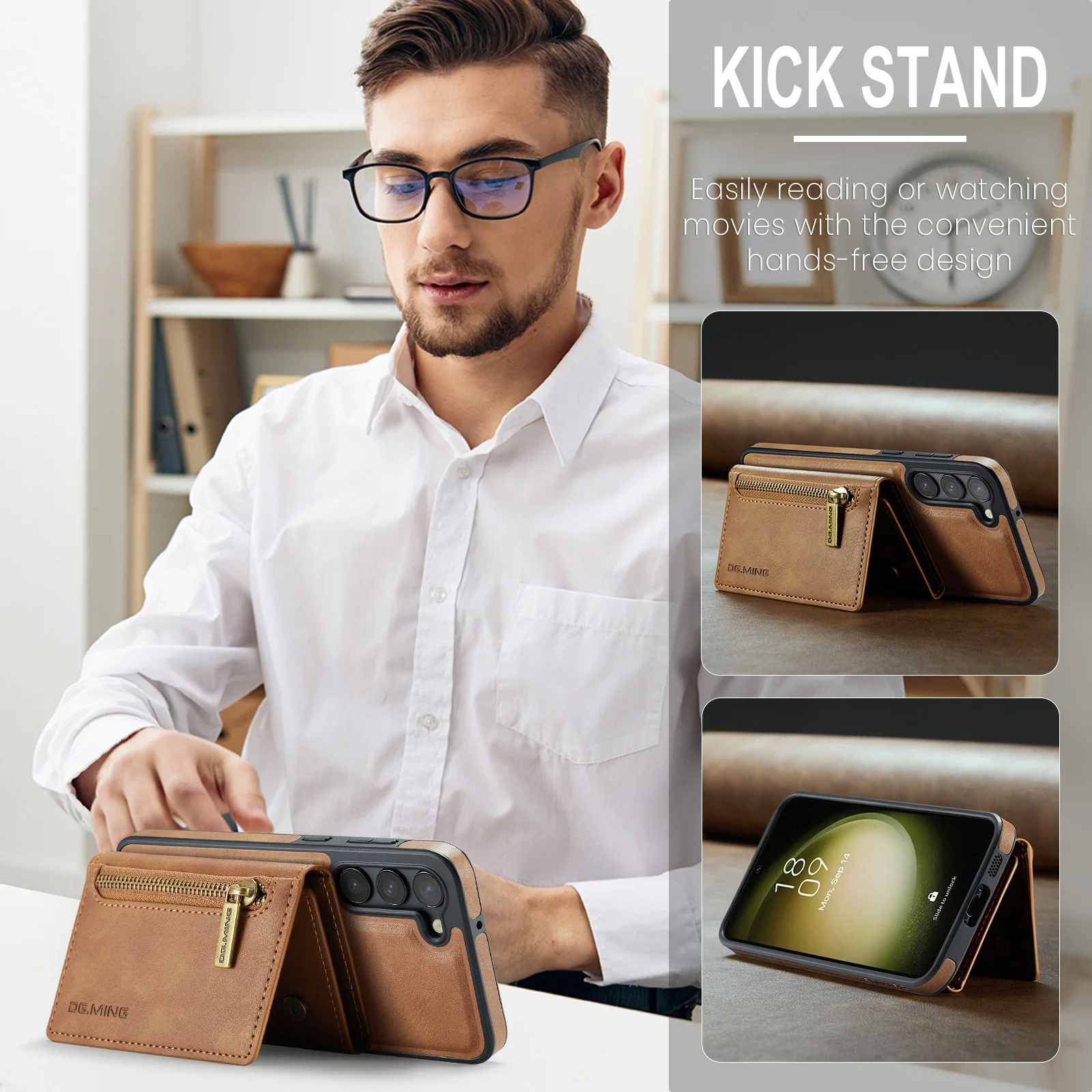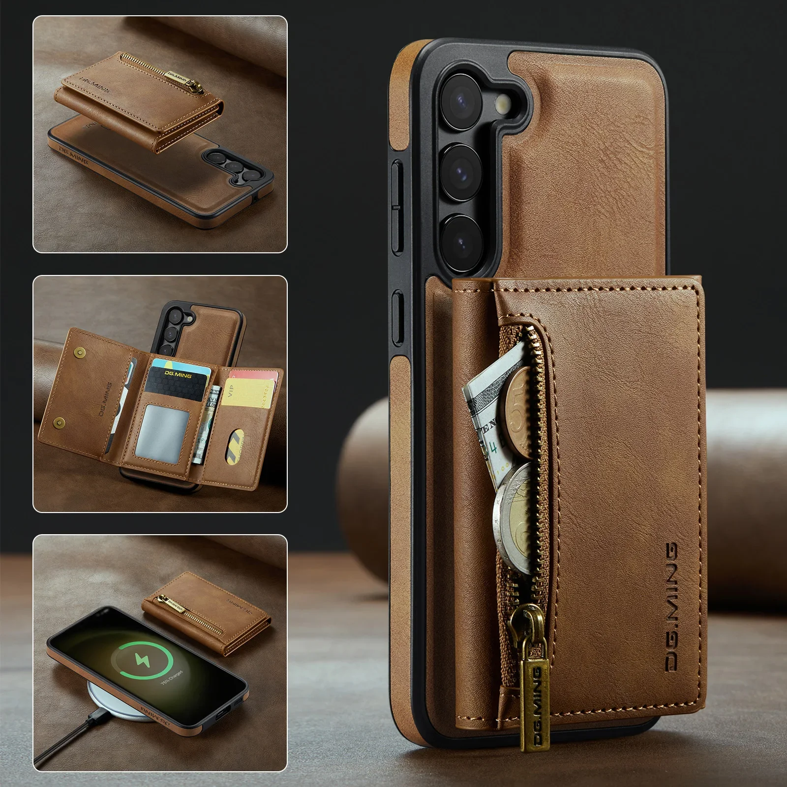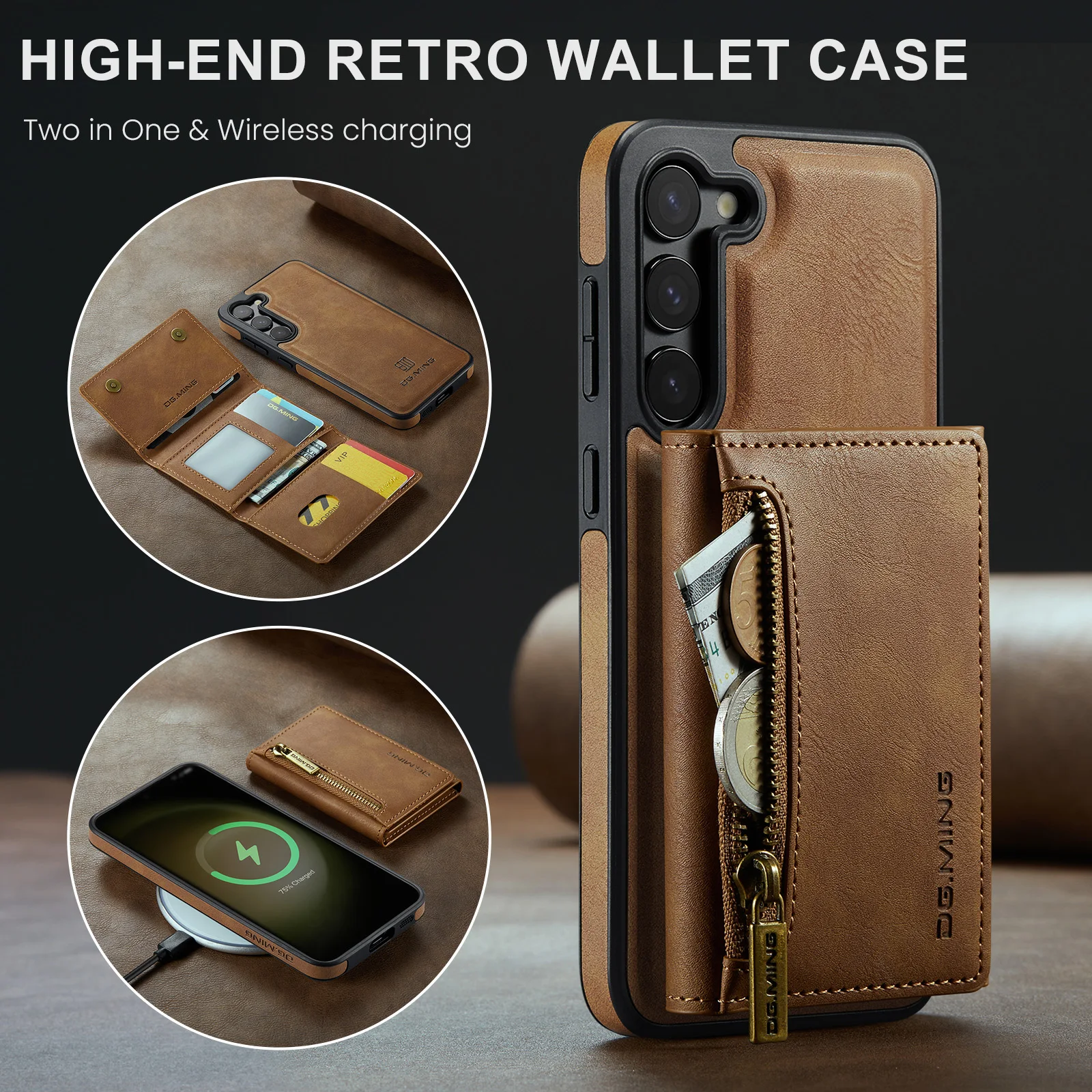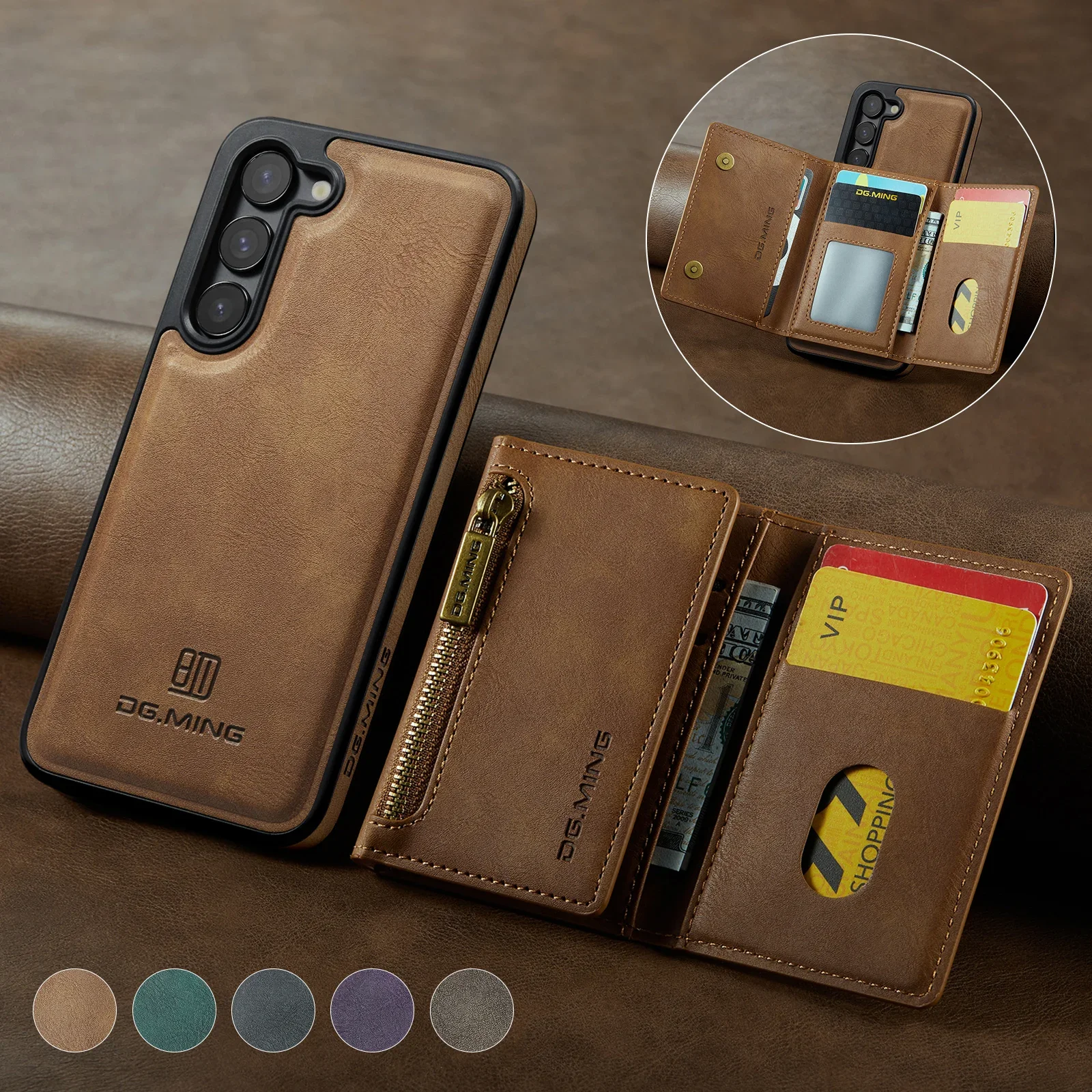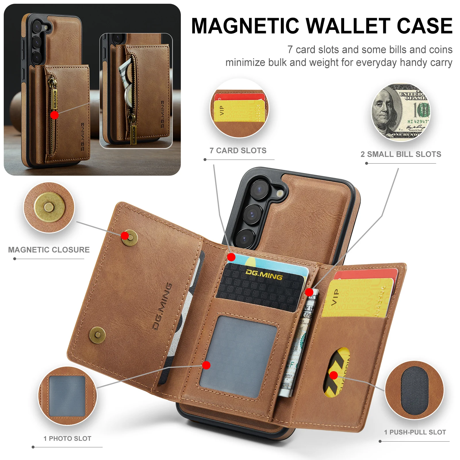 Comprar Funda de cuero con cremallera para tarjetas, cartera desmontable 2 en 1 para Samsung Galaxy S24 Ultra S23 FE S22 S21 Plus, monedero de bolsillo