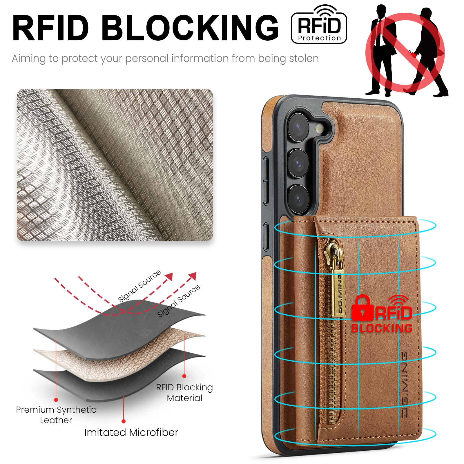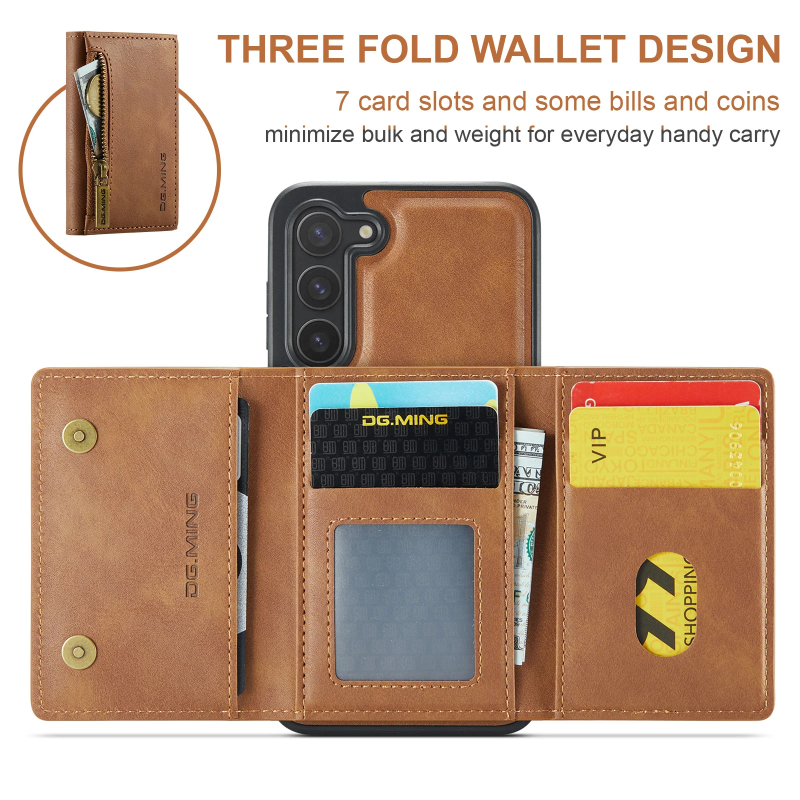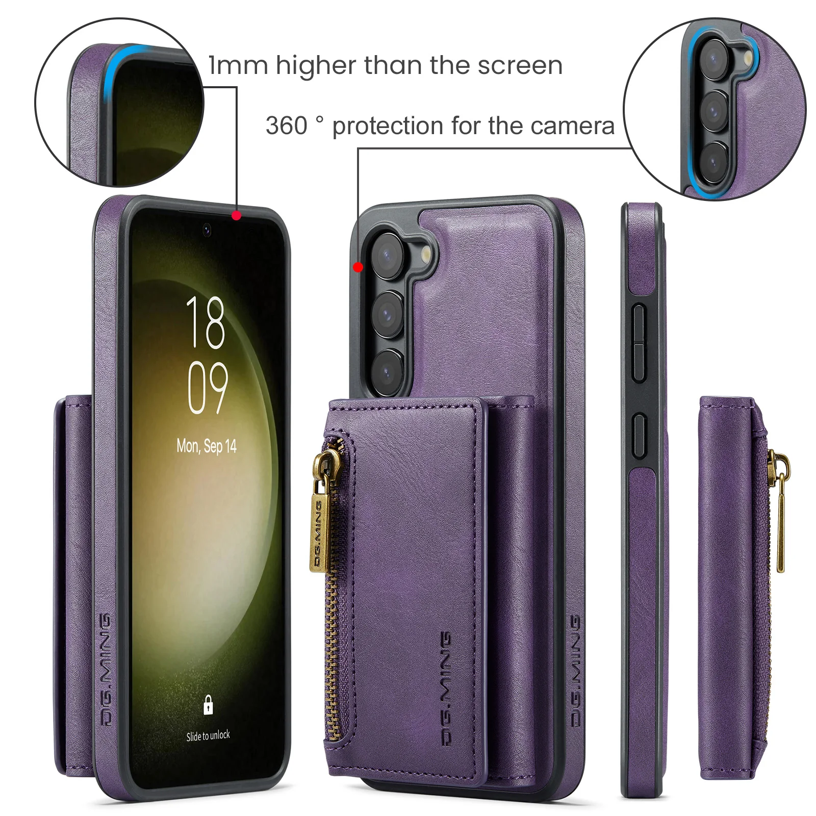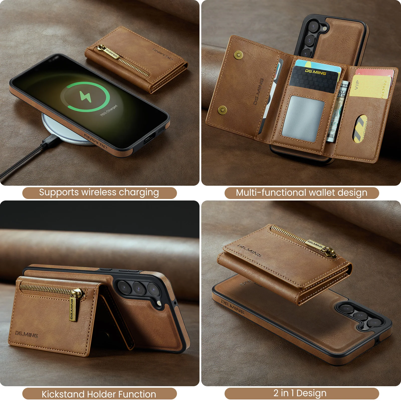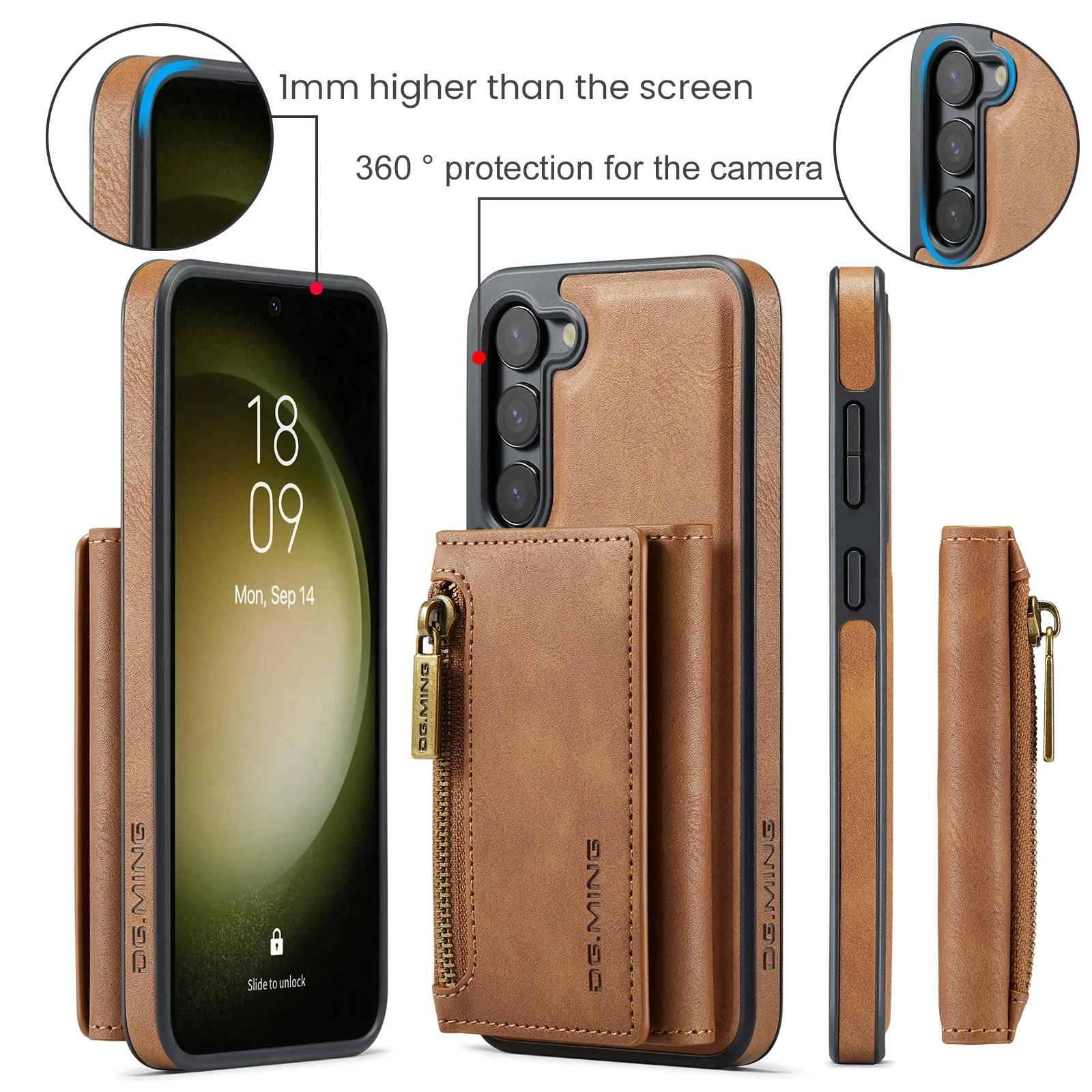 Comprar Funda de cuero con cremallera para tarjetas, cartera desmontable 2 en 1 para Samsung Galaxy S24 Ultra S23 FE S22 S21 Plus, monedero de bolsillo