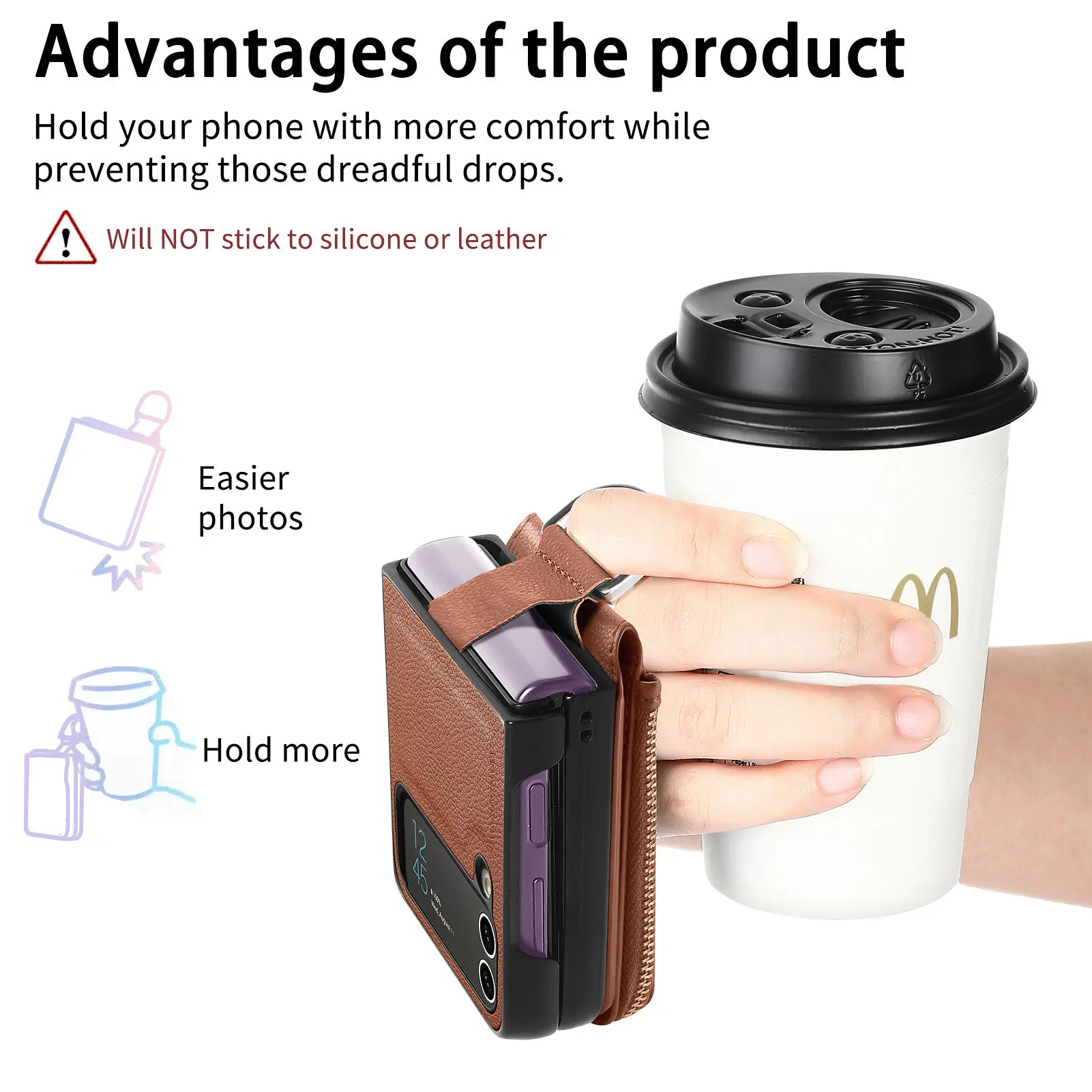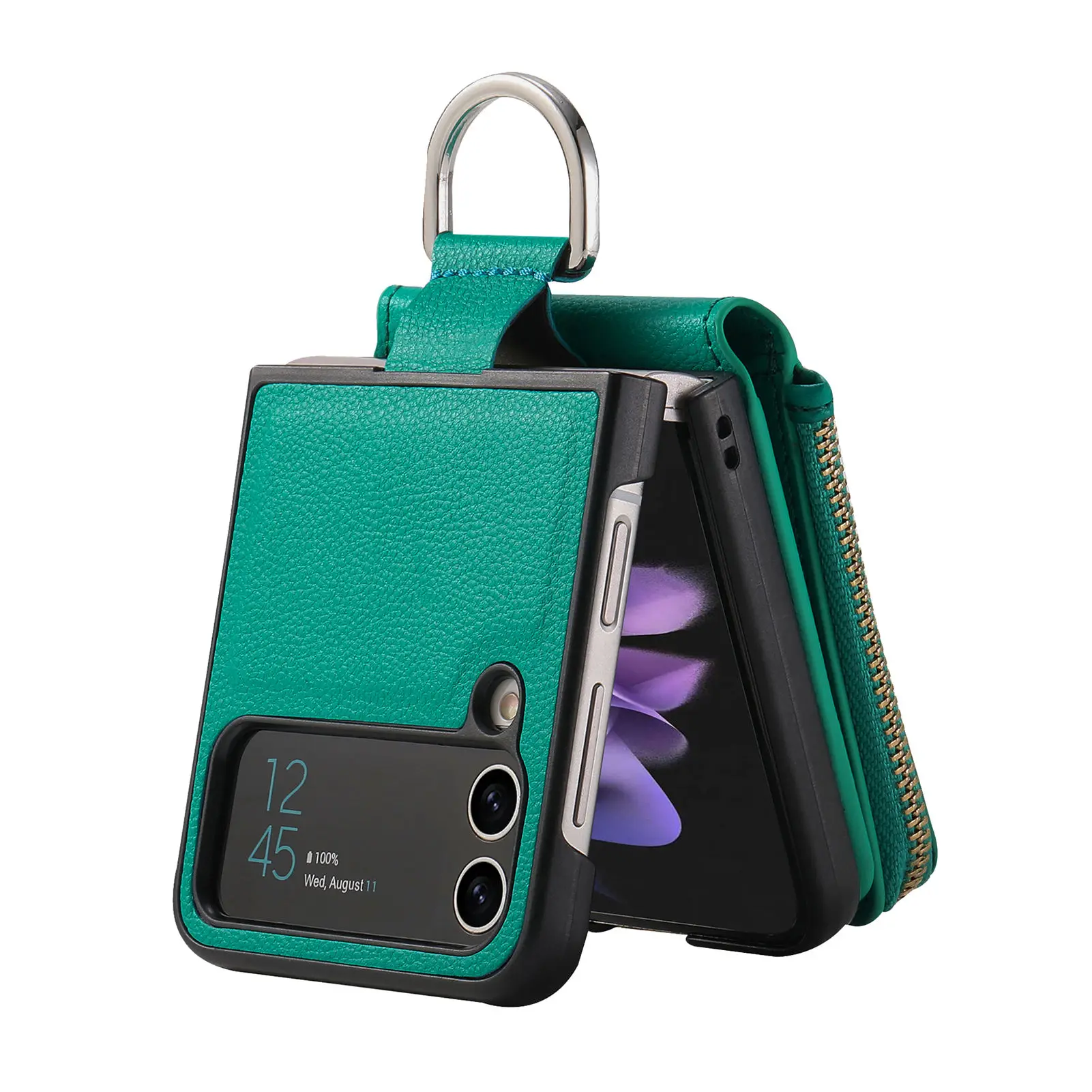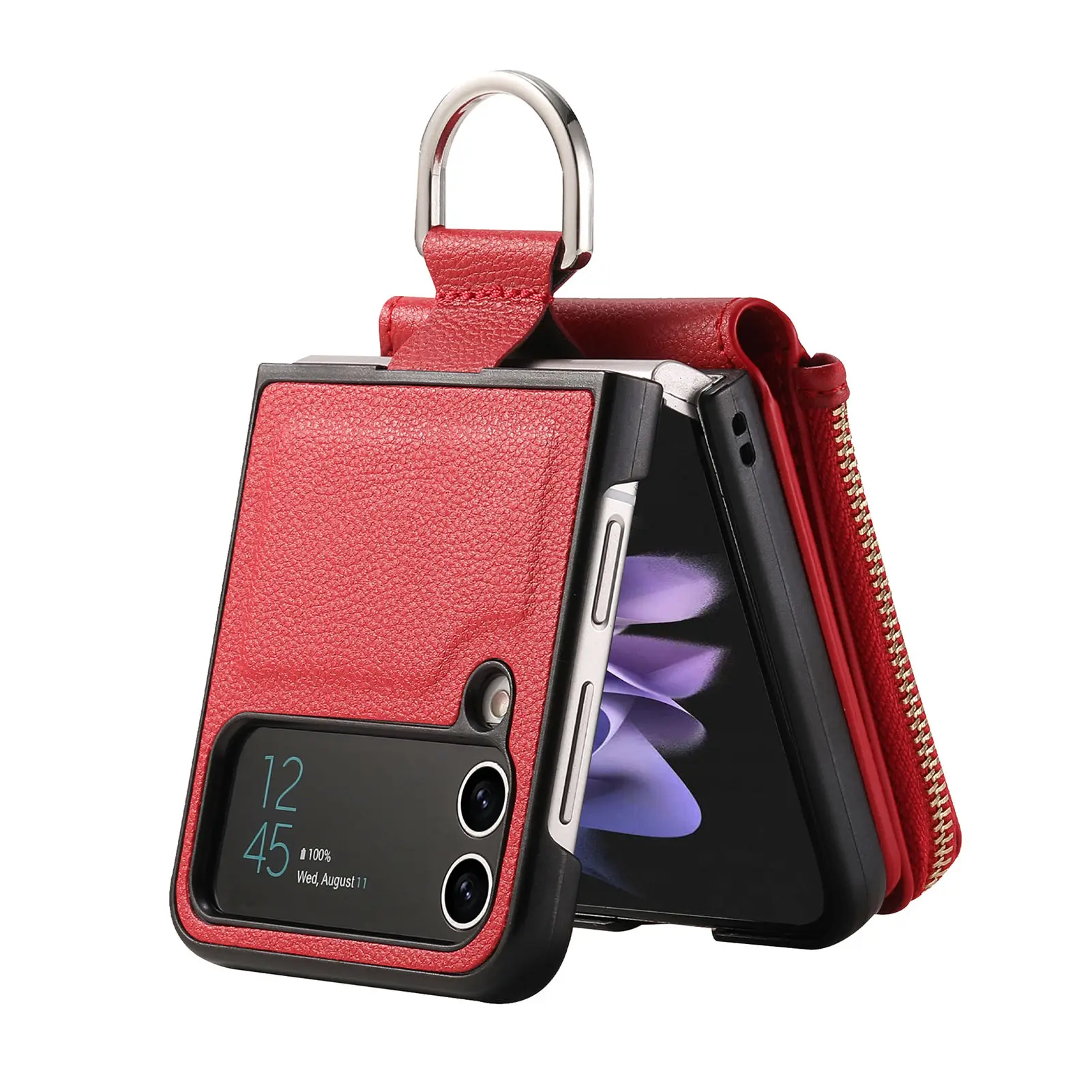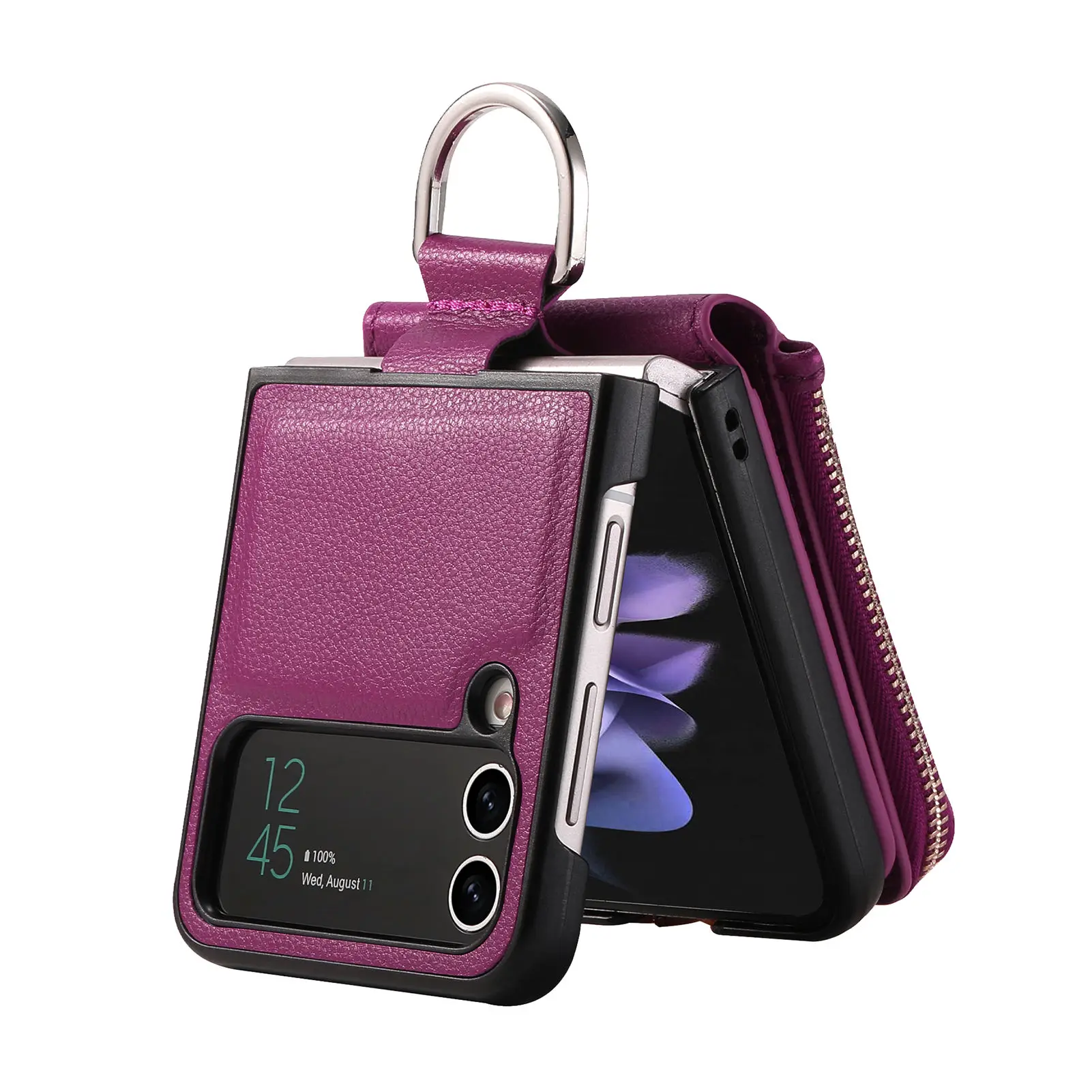 Funda de cuero con cremallera vertical para tarjetas Solt Wallet para Samsung Z Flip 5 4 3 5G Stand a prueba de golpes Flip5 Purse Ring Holder Pocket Cover