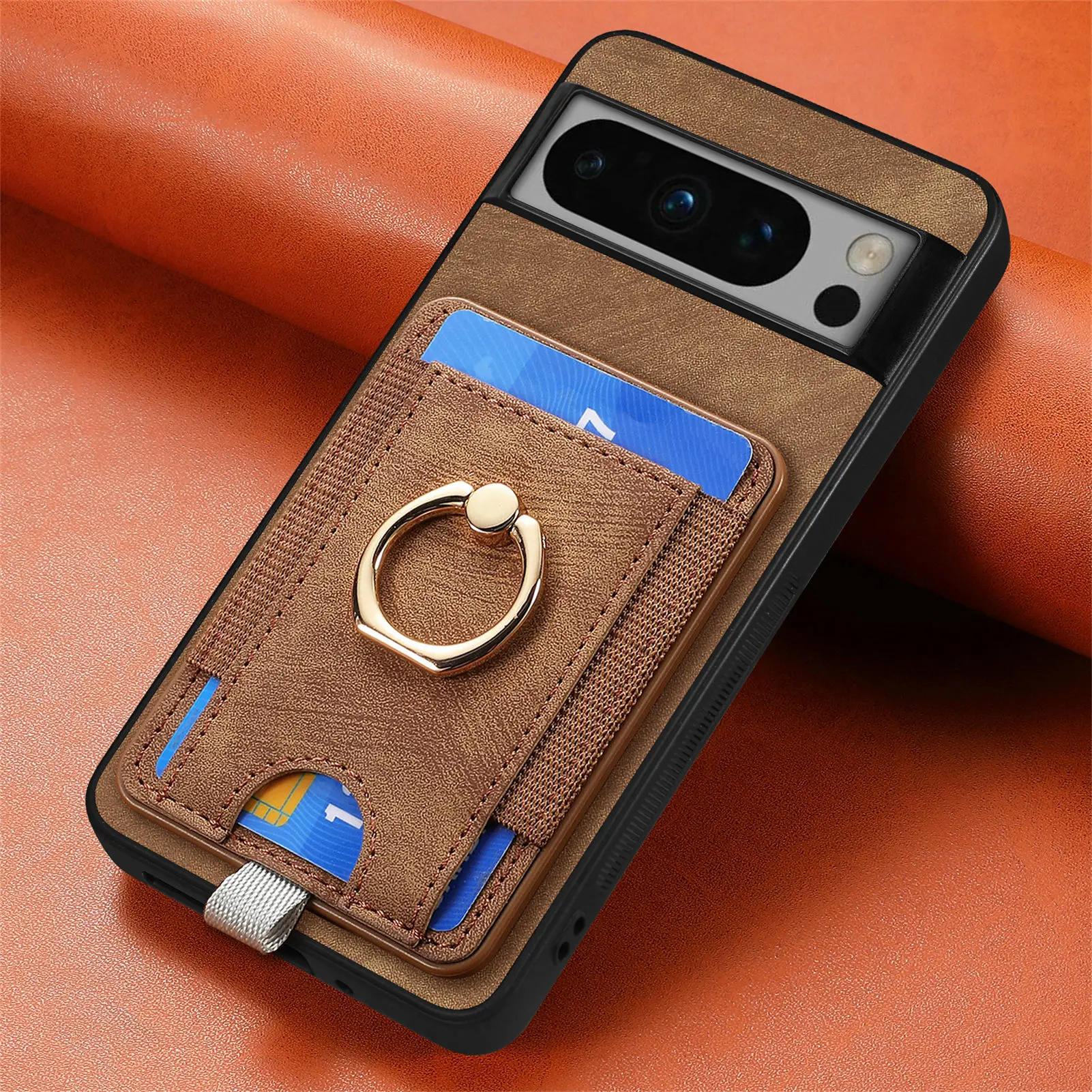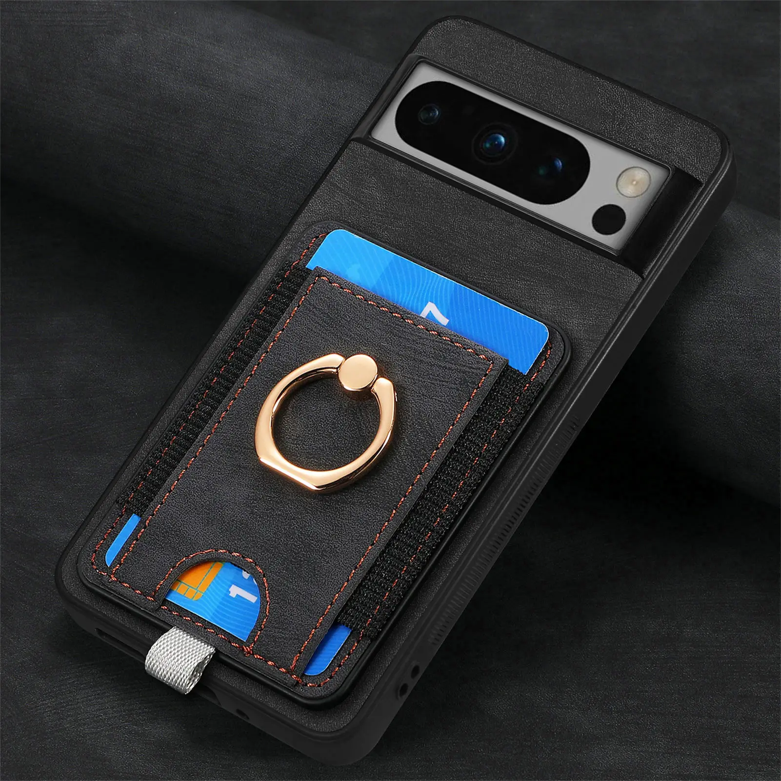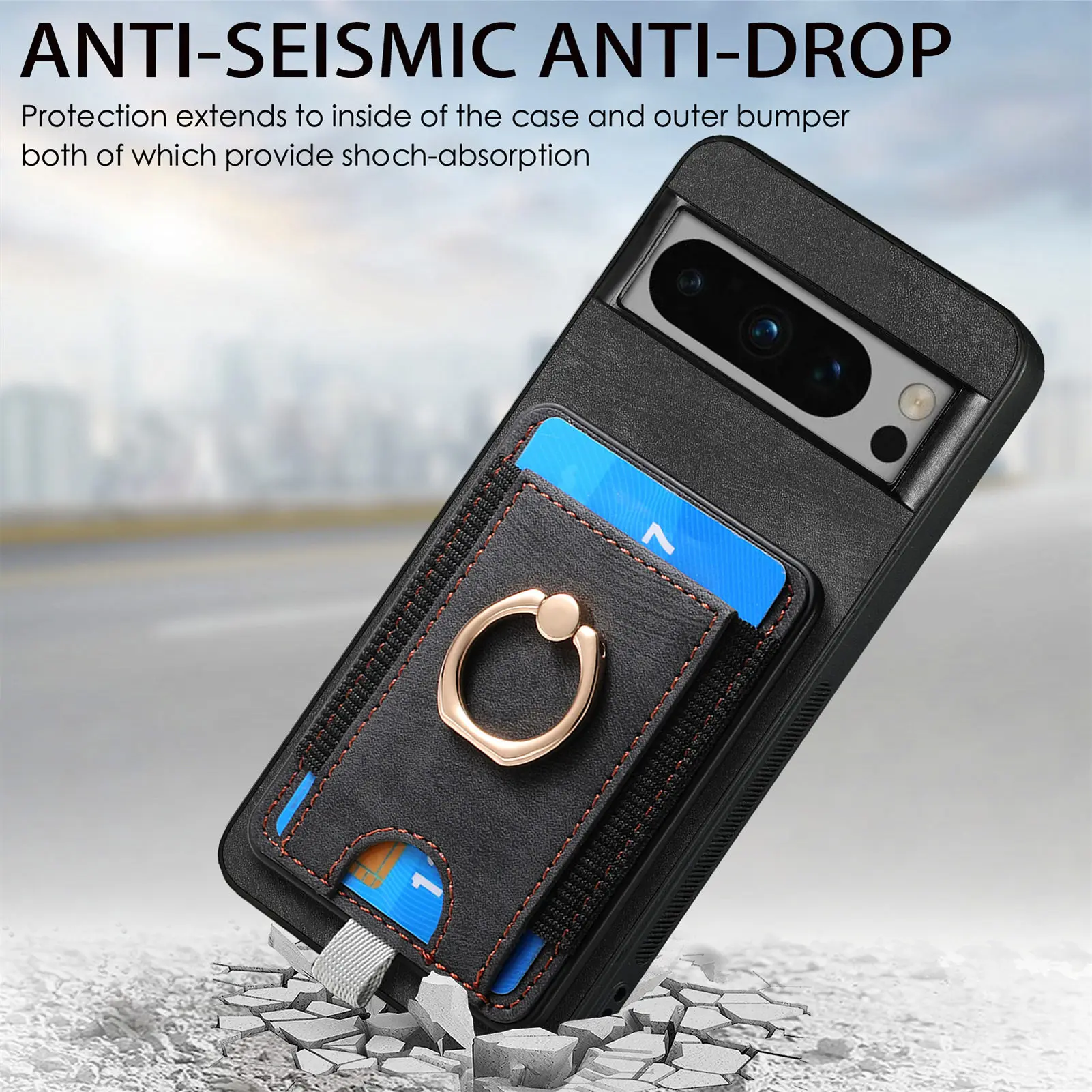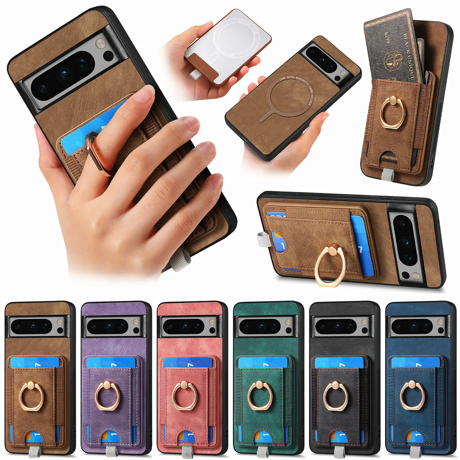 Bolsa de tarjetas desmontable 2 en 1, Funda de cuero tipo cartera para Google Pixel 7 6 7A 8 Pro, soporte para anillo, monedero extraíble, funda de bolsillo magnética