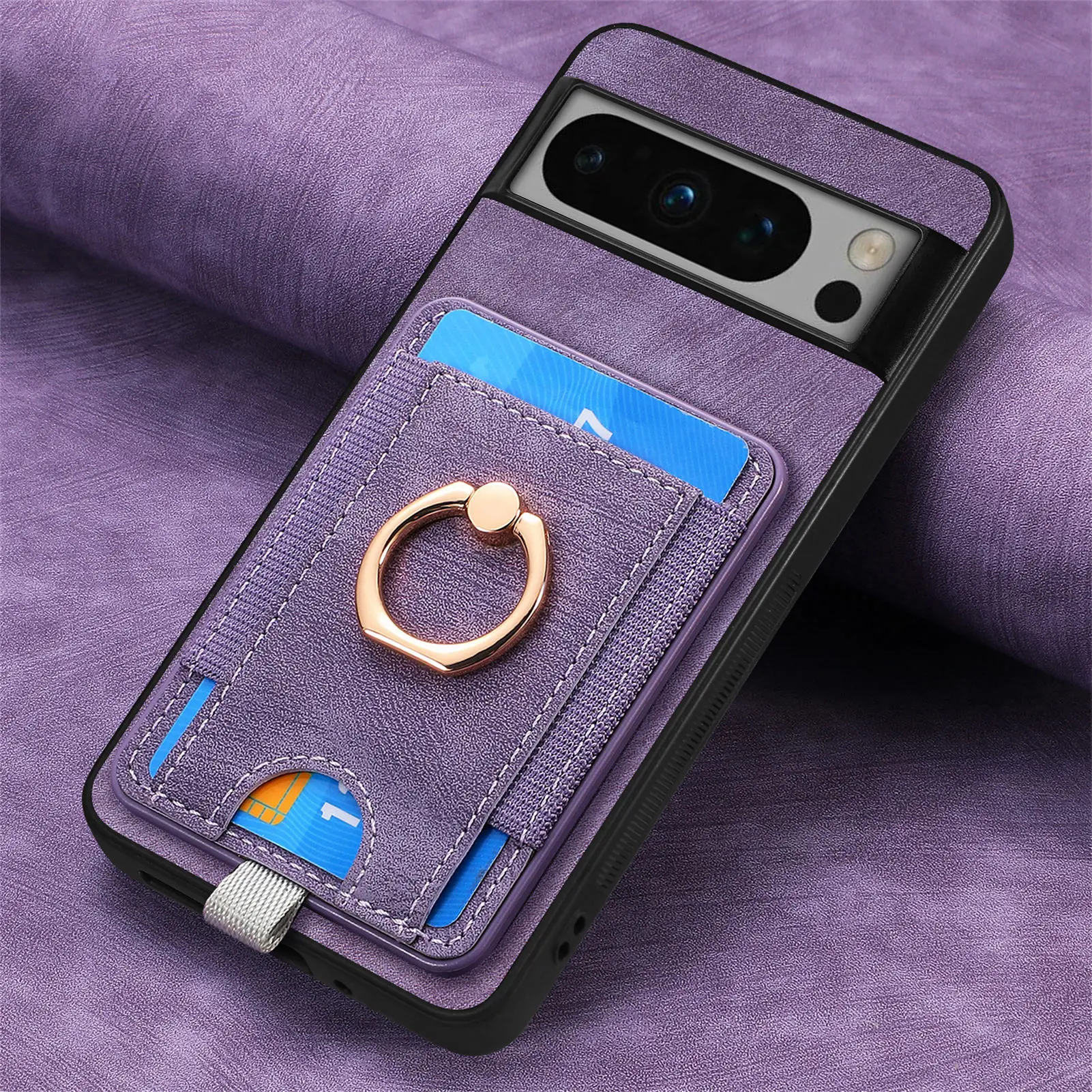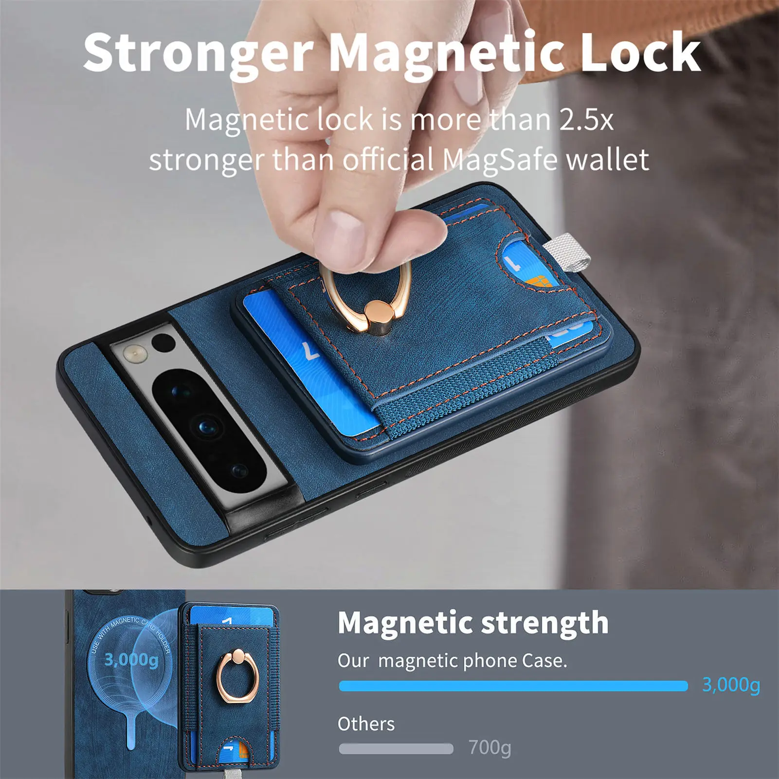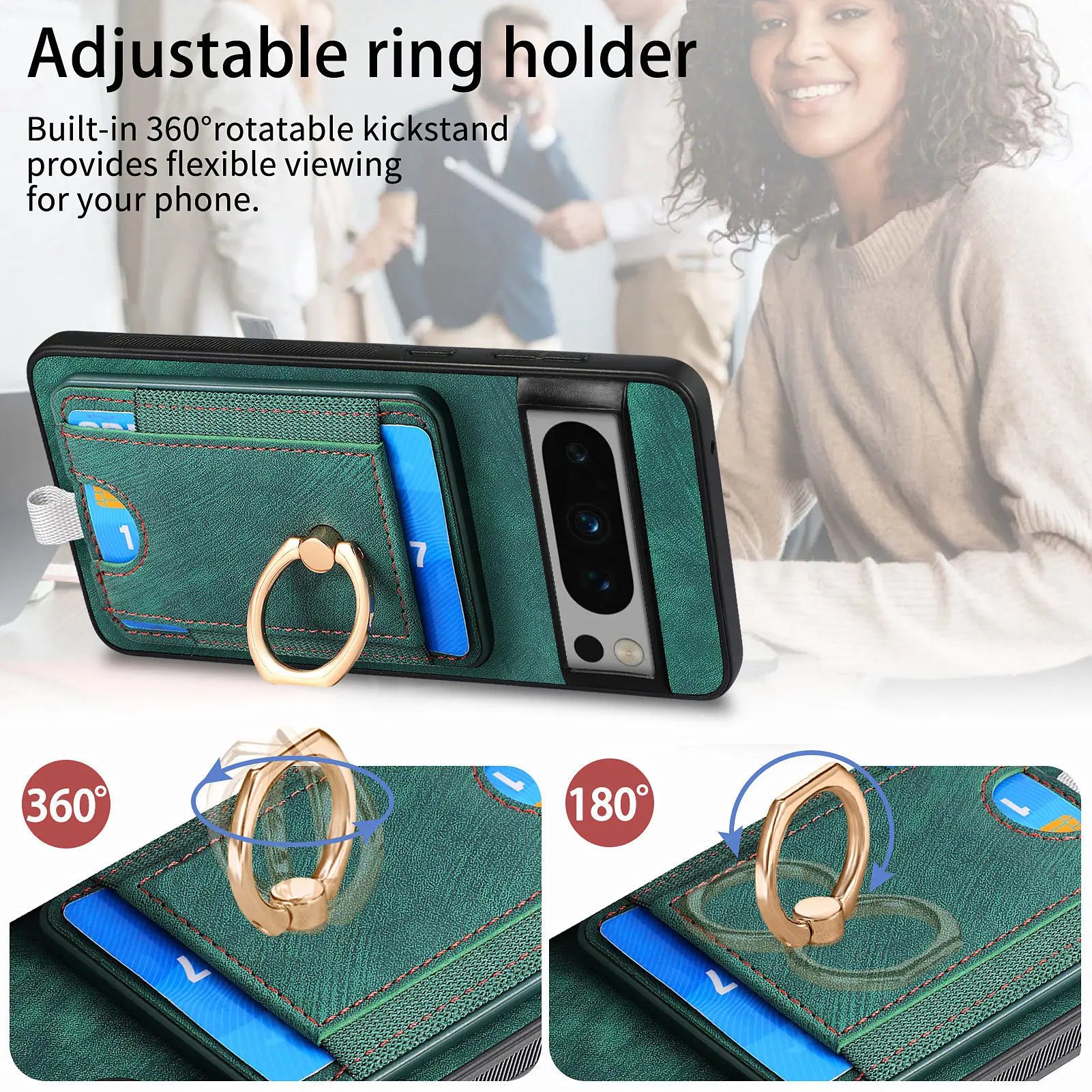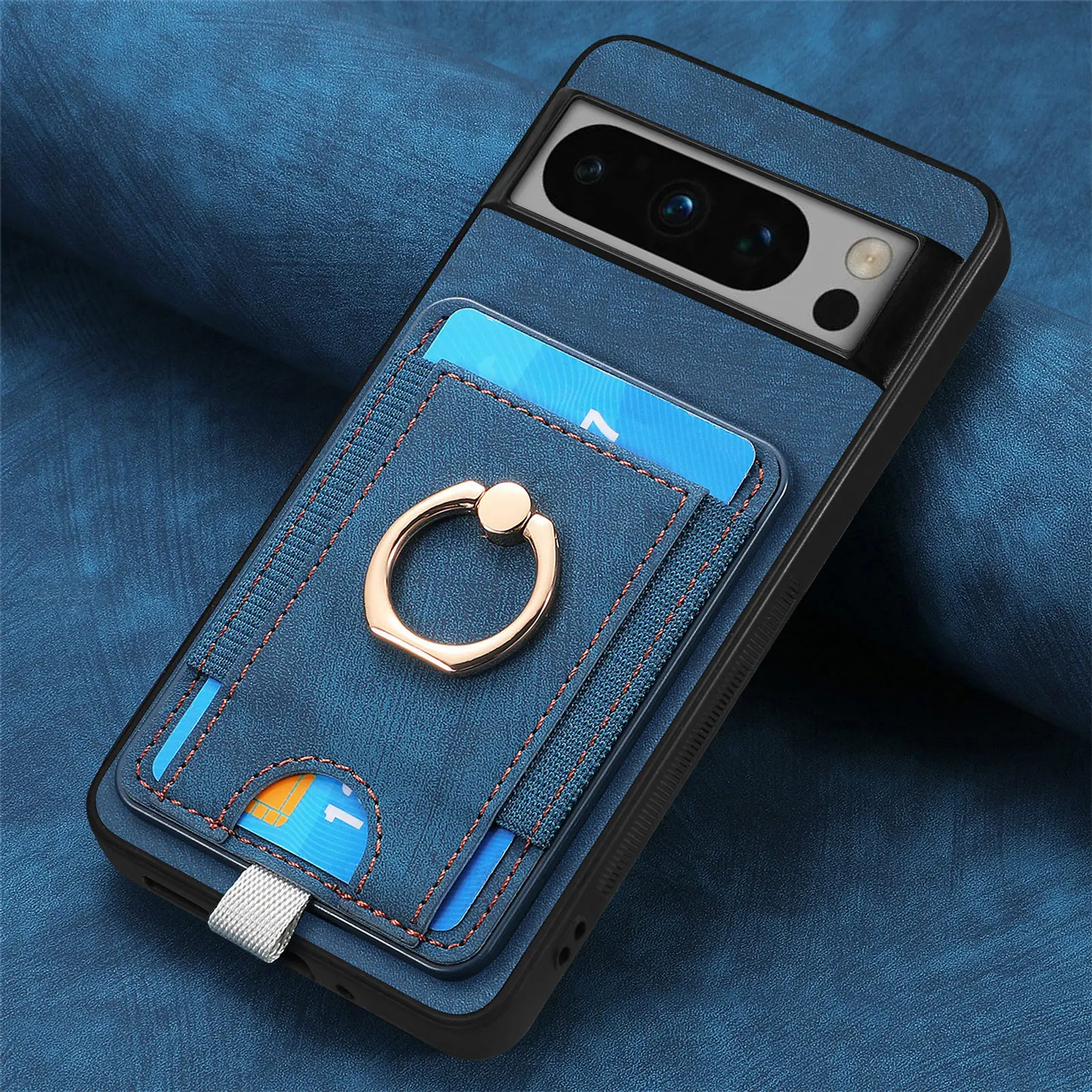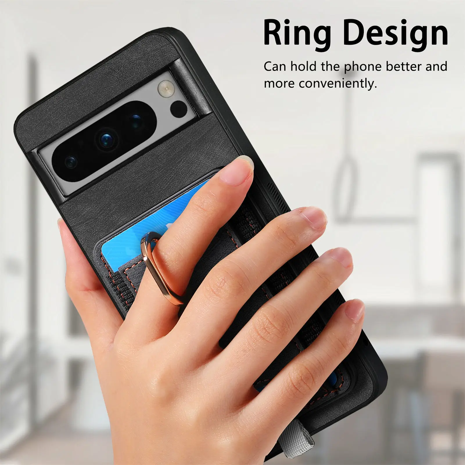 Bolsa de tarjetas desmontable 2 en 1, Funda de cuero tipo cartera para Google Pixel 7 6 7A 8 Pro, soporte para anillo, monedero extraíble, funda de bolsillo magnética