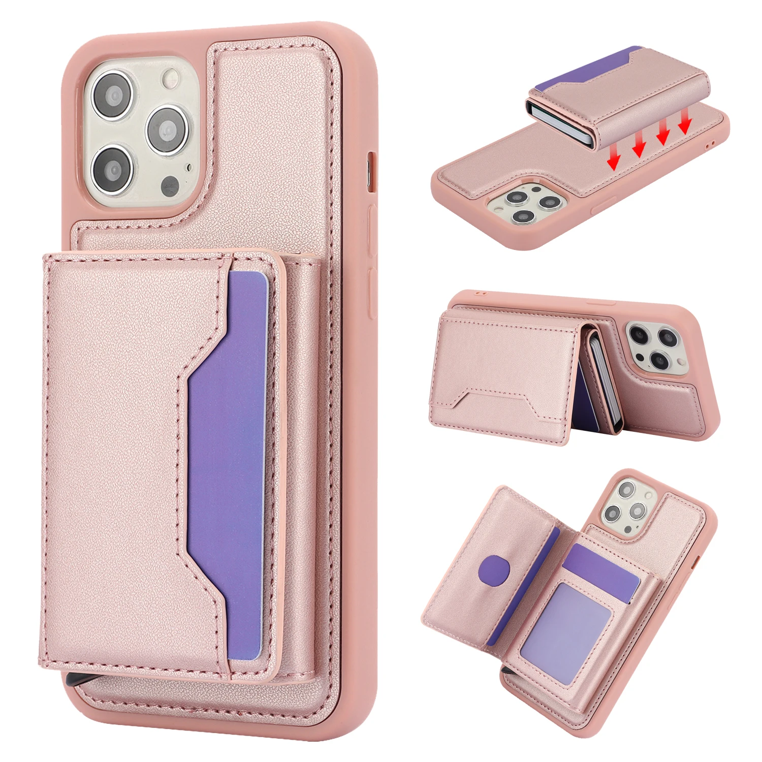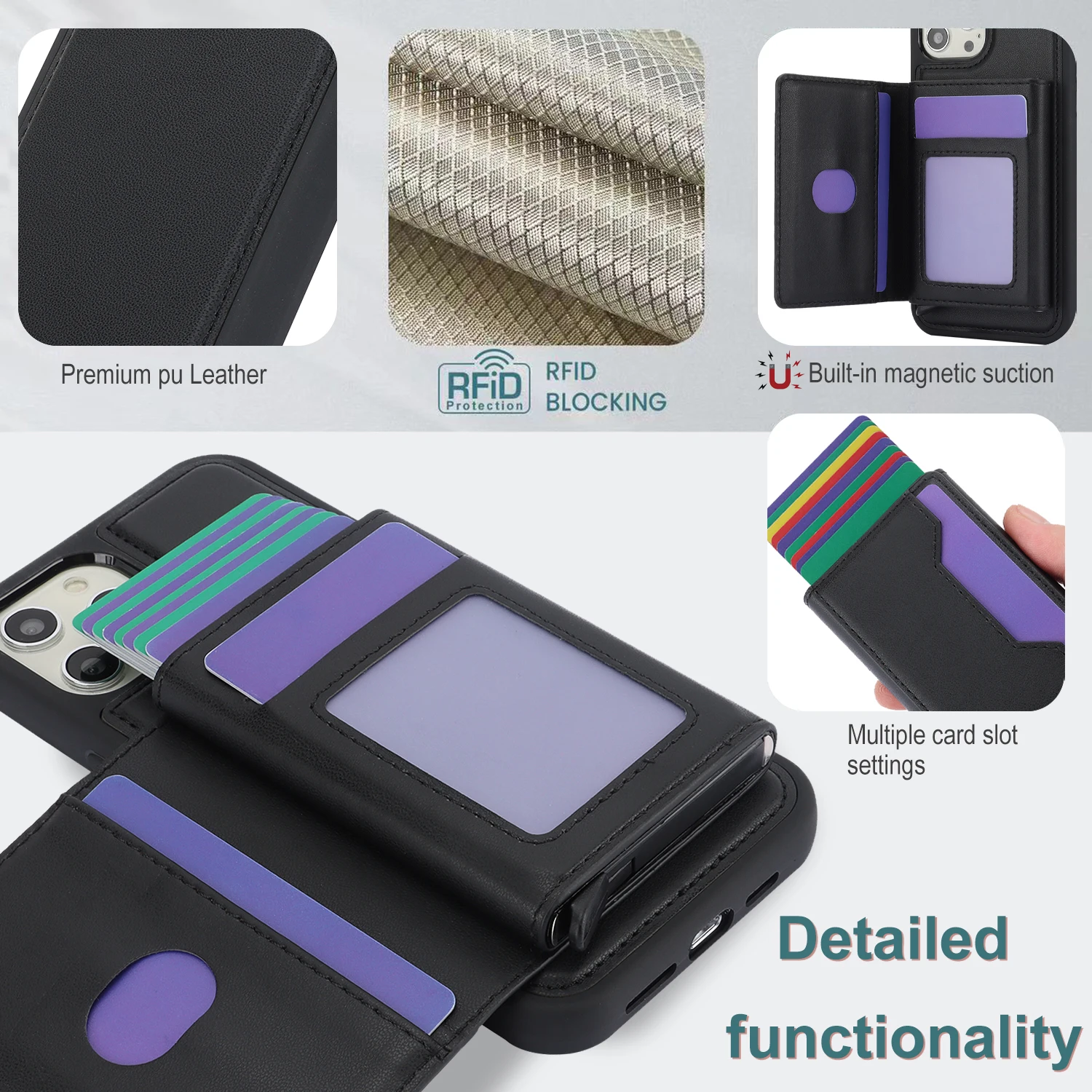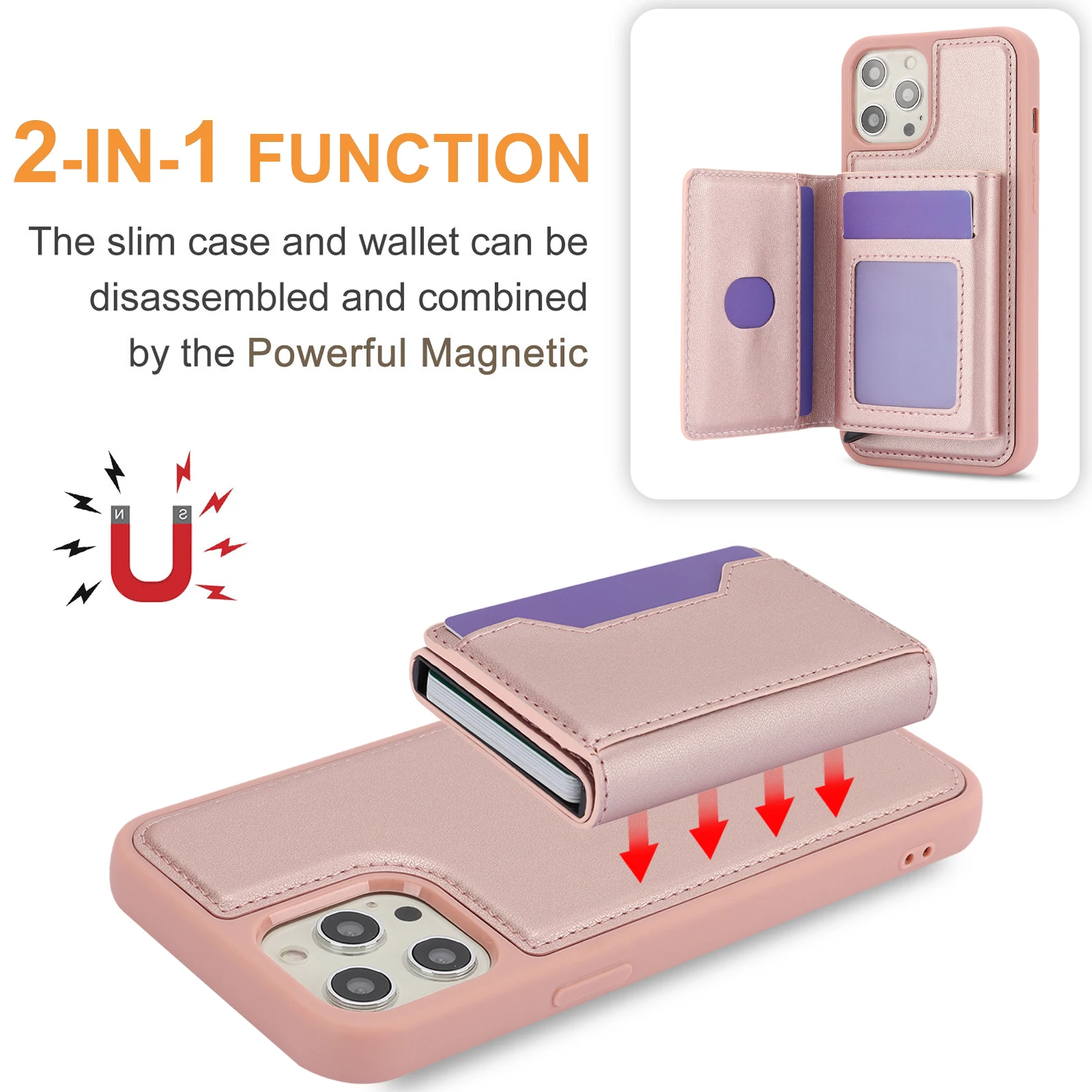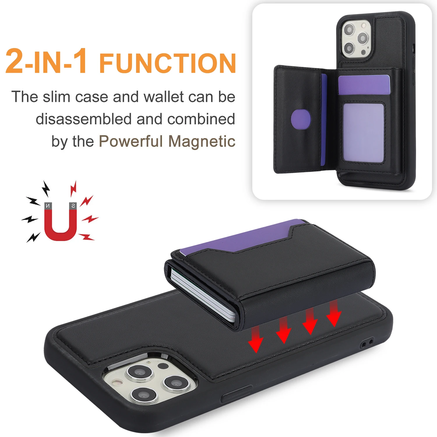 Bolsa de tarjetas desmontable 2 en 1, funda tipo billetera de cuero para IPhone 15 14 Pro Max 13 12 11 XS XR X 7 8 Plus SE 2022, funda de bolsillo magnética