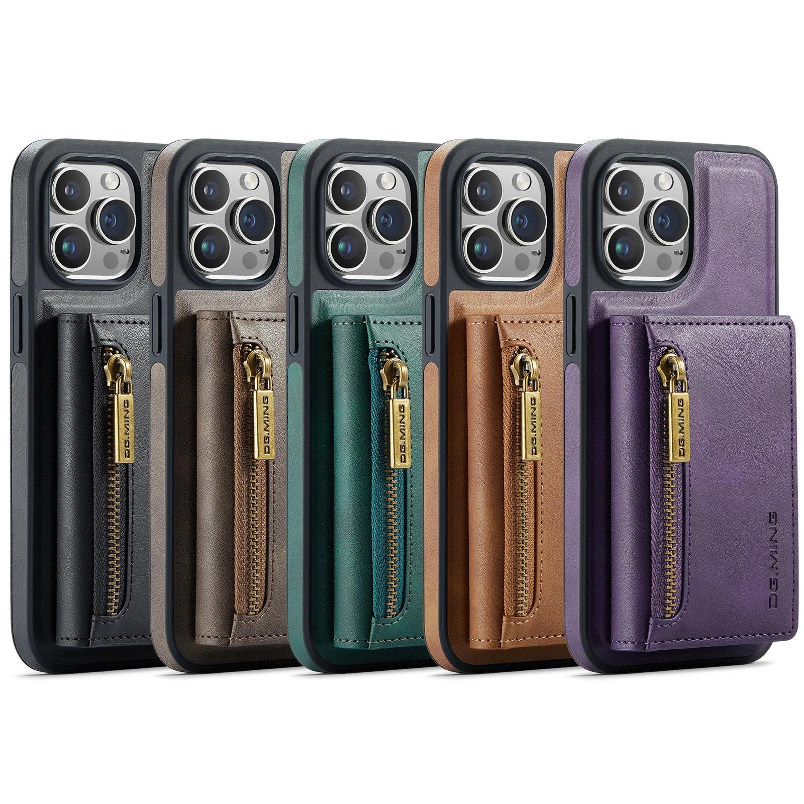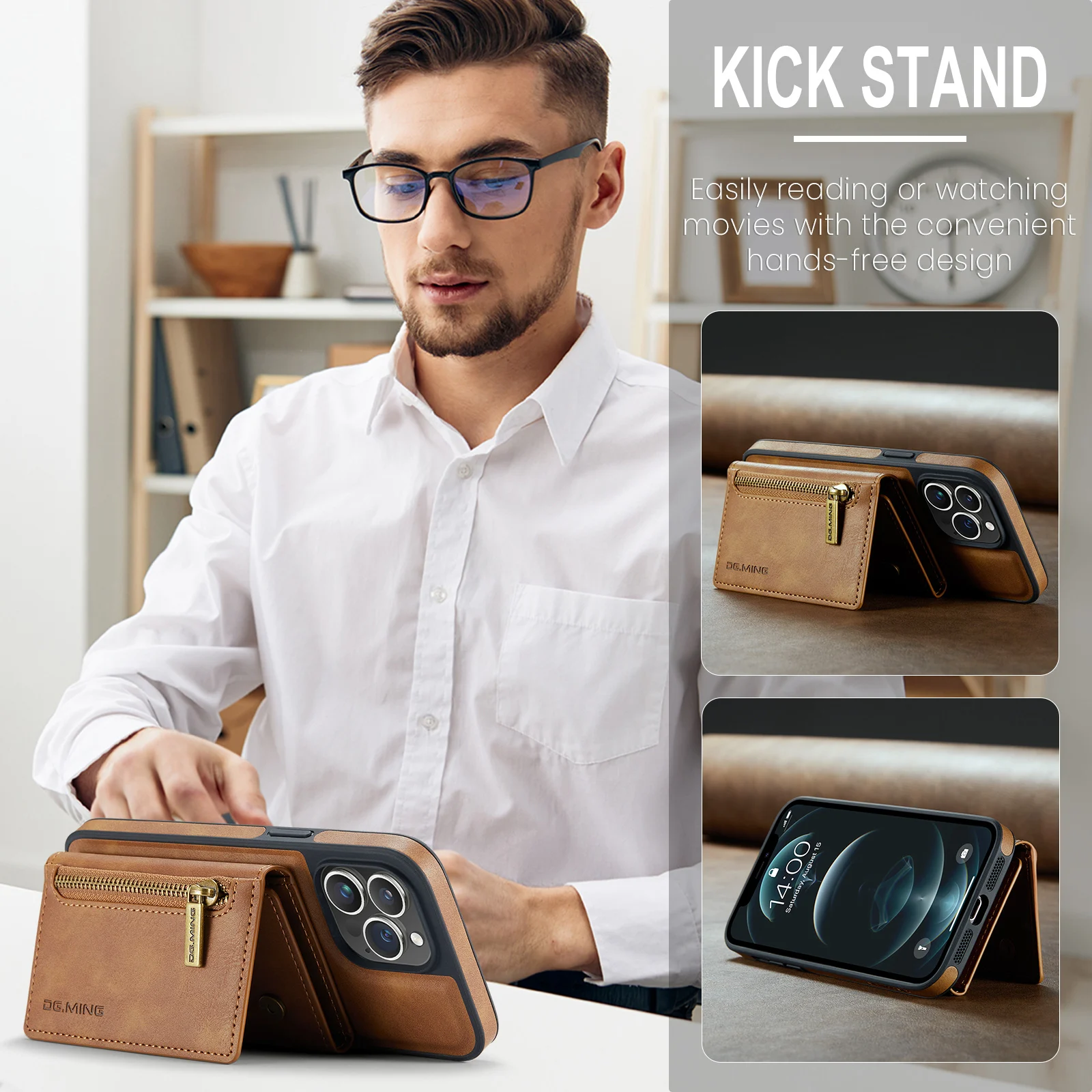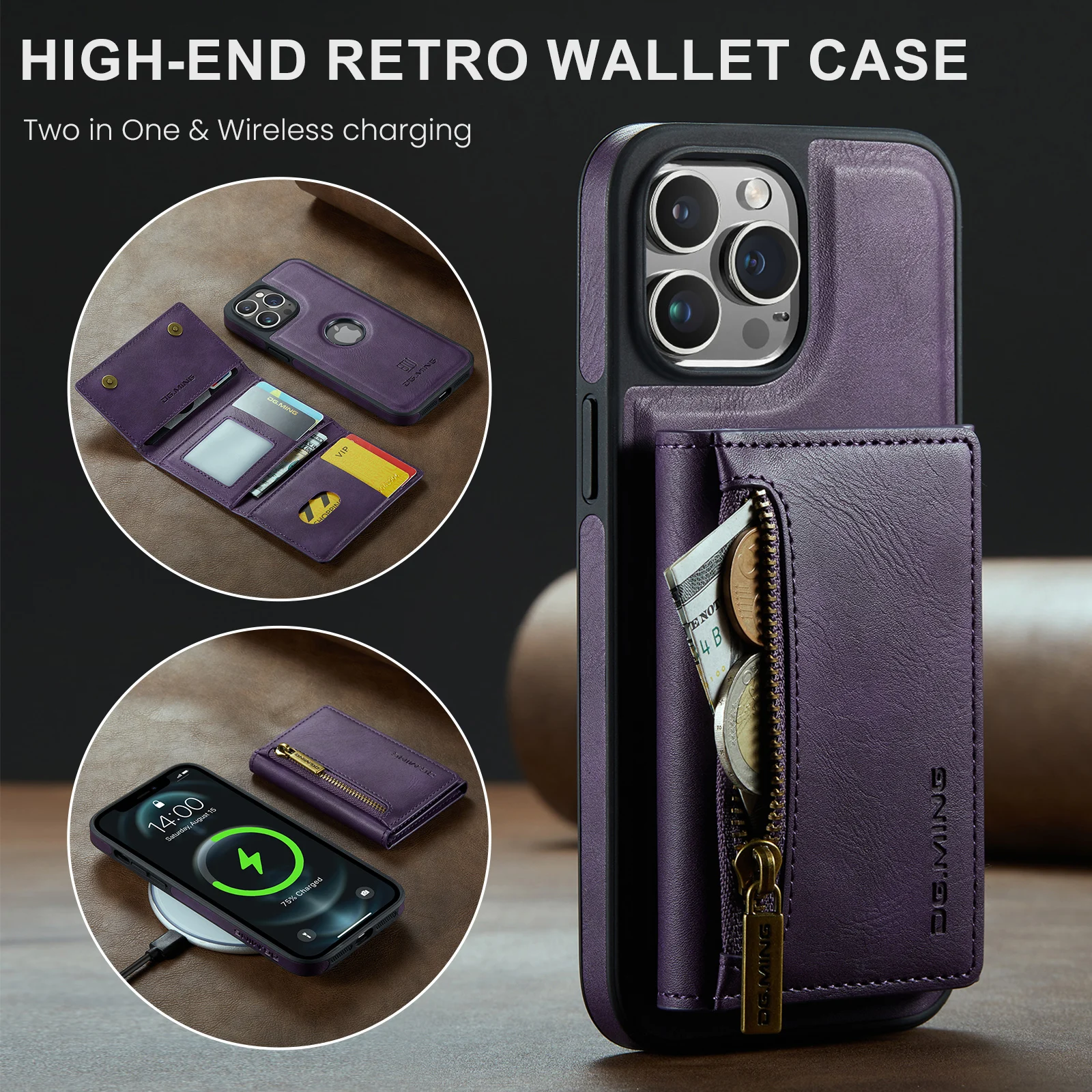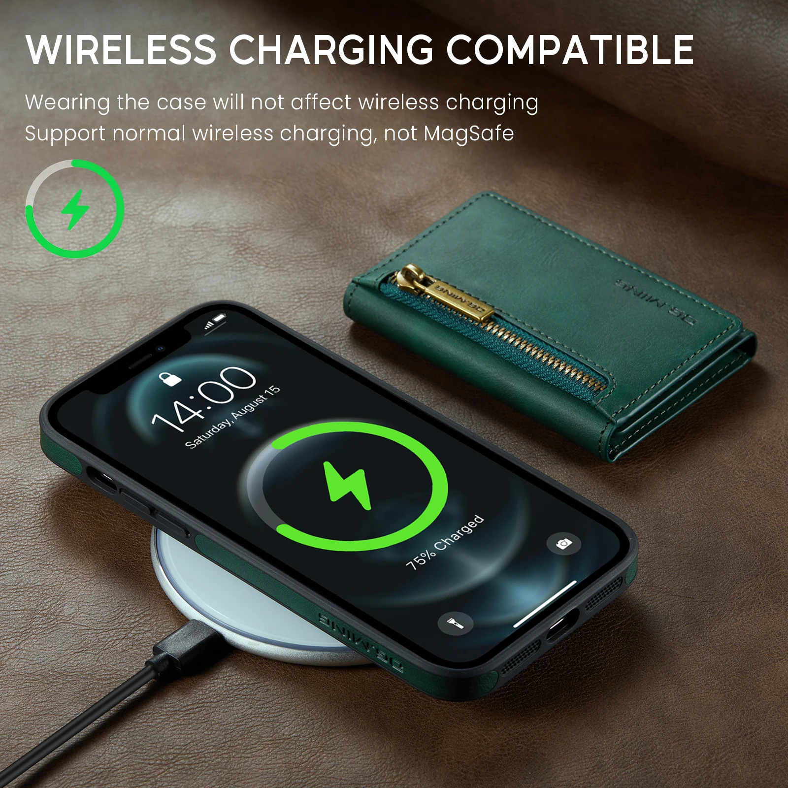 Funda de cuero desmontable 2 en 1 para tarjetas, cartera con cremallera para iPhone 15, 13, 12, 11 Pro Max, 14 Plus, cubierta magnética de carga inalámbrica