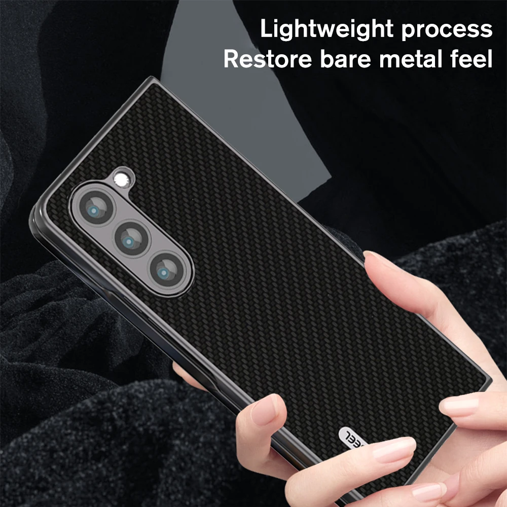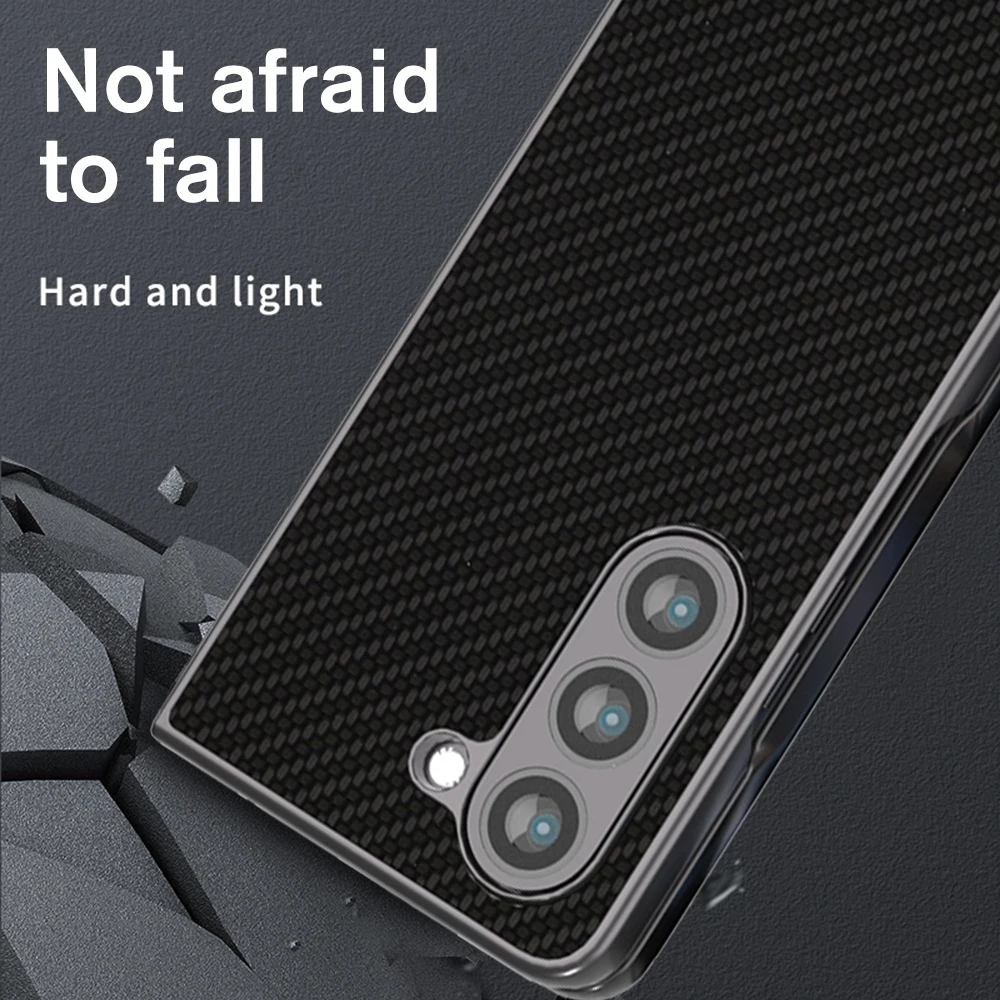 Comprar Funda de cuero de fibra de carbono para Samsung Galaxy Z Fold5 5G, cubierta trasera de moda, Samsung ZFold5 ZFold 5 Fold 5, Funda a prueba de golpes para cámara