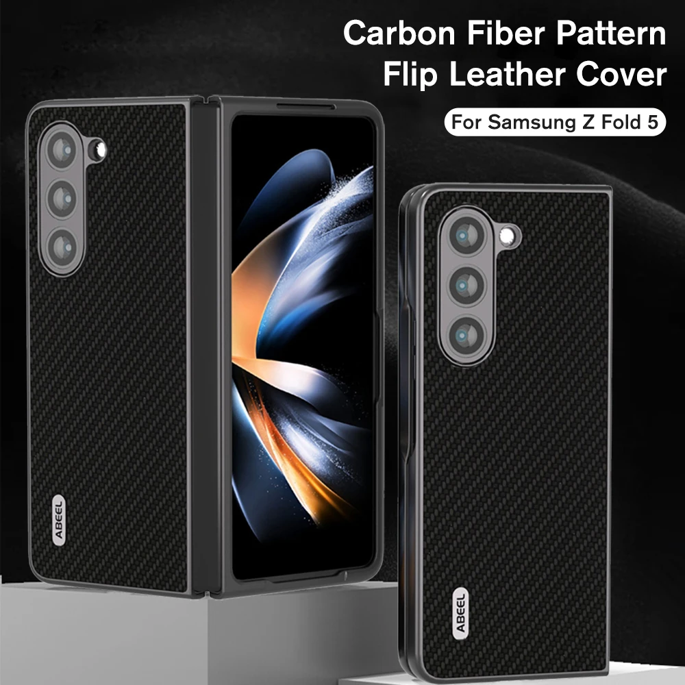 Para Samsung Galaxy Z Fold5 5G Funda de cuero de fibra de carbono a la moda Sumsung ZFold5 ZFold 5 Fold 5 Cámara Funda a prueba de golpes