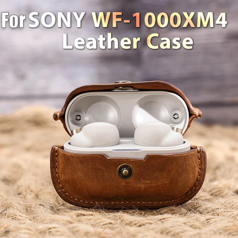 Comprar Funda de cuero genuino para auriculares Sony wf 1000xm4, cubierta protectora portátil Vintage para Sony WF-1000XM4, carcasa inalámbrica con Bluetooth