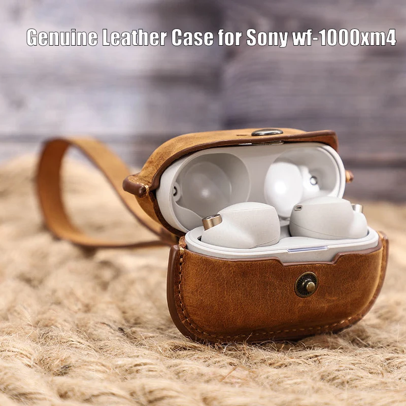 Comprar Funda de cuero genuino para auriculares Sony wf 1000xm4, cubierta protectora portátil Vintage para Sony WF-1000XM4, carcasa inalámbrica con Bluetooth