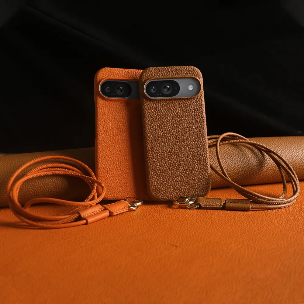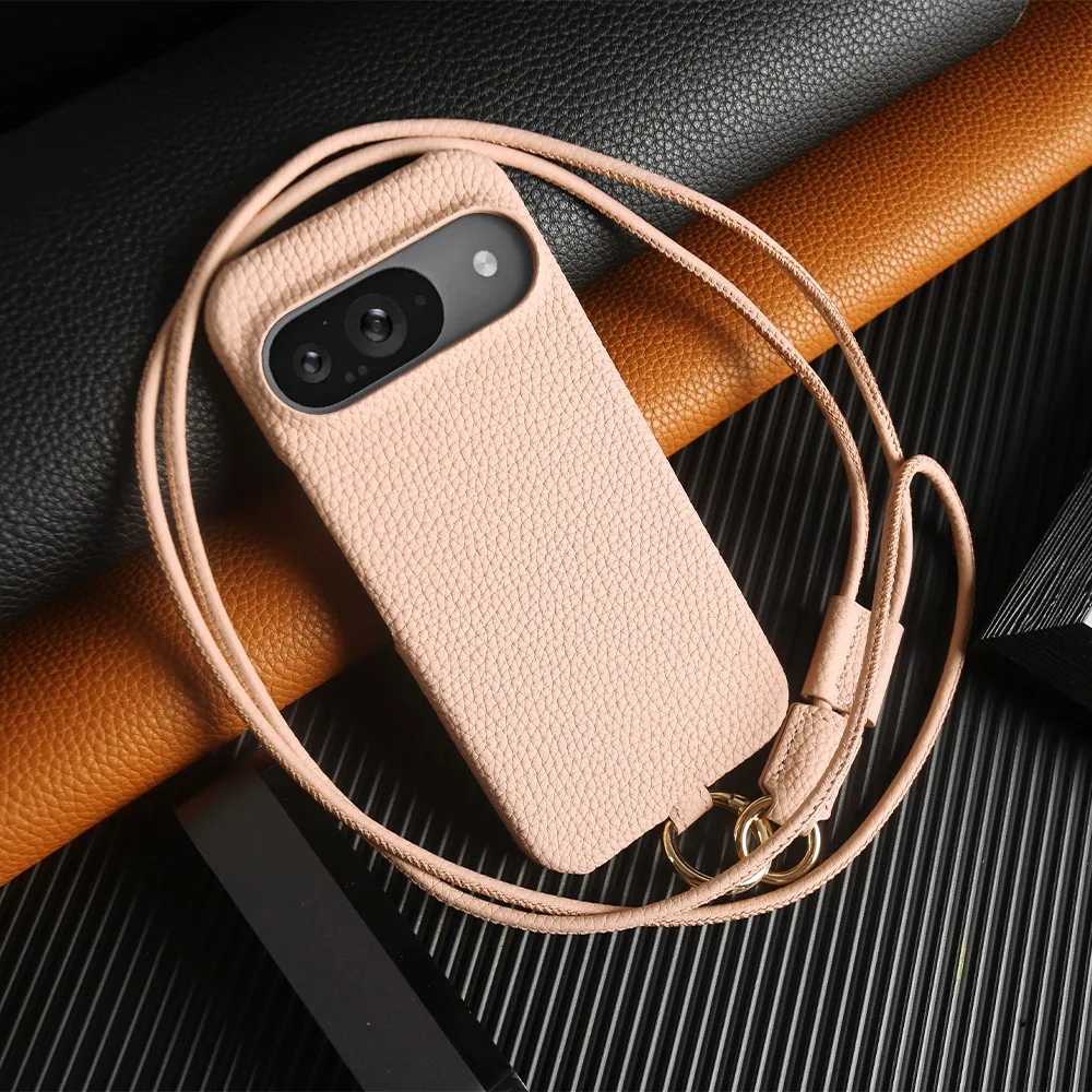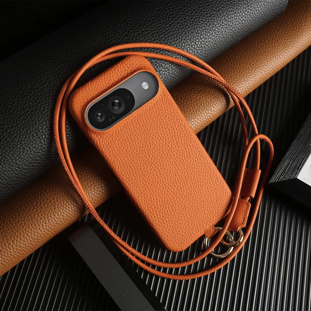 Luxury Cowhide Genuine Leather Case For Google Pixel 9 Pro XL 9Pro pixel9 pixel8 pro Strap Crossbody Lanyard Phone Cover Coque