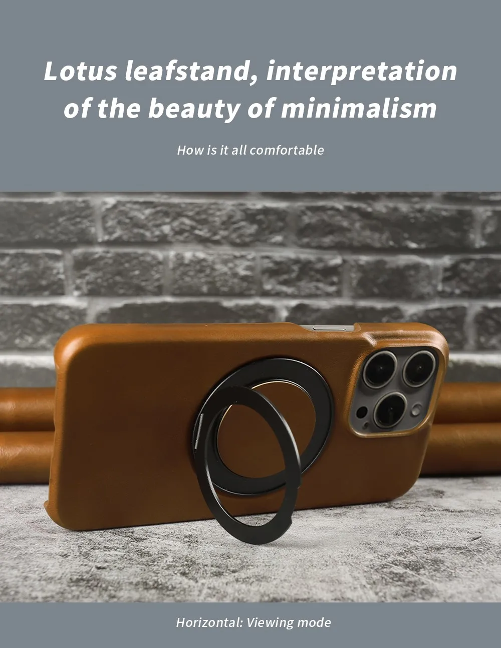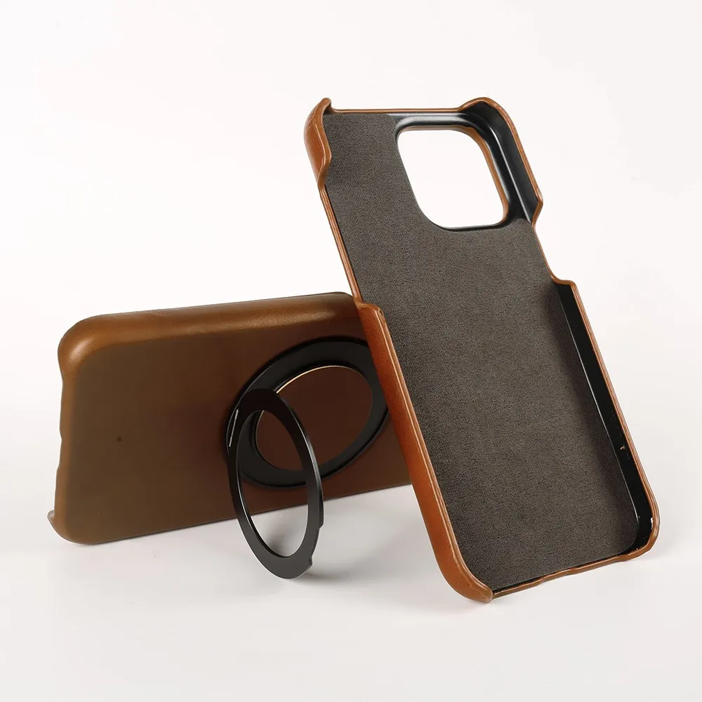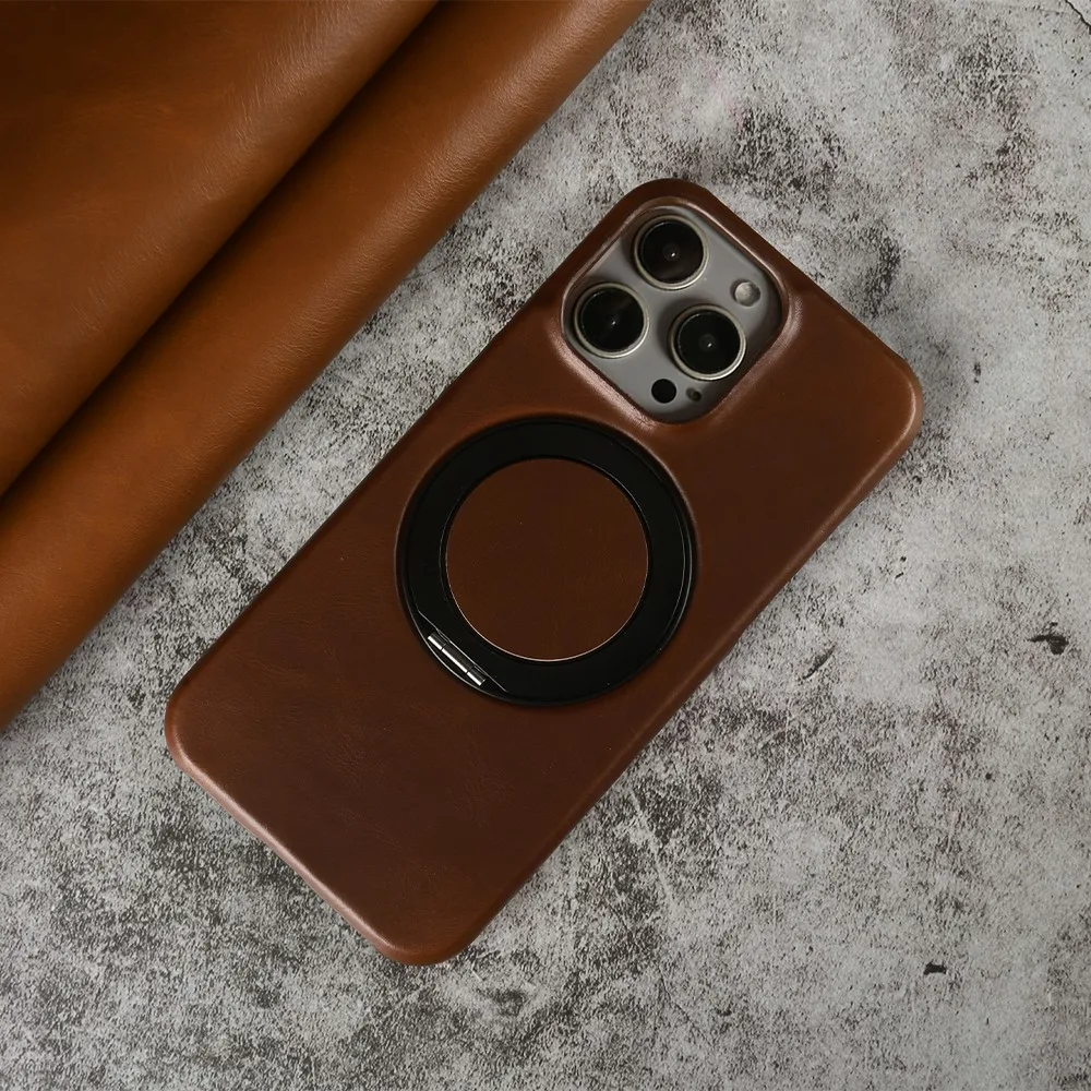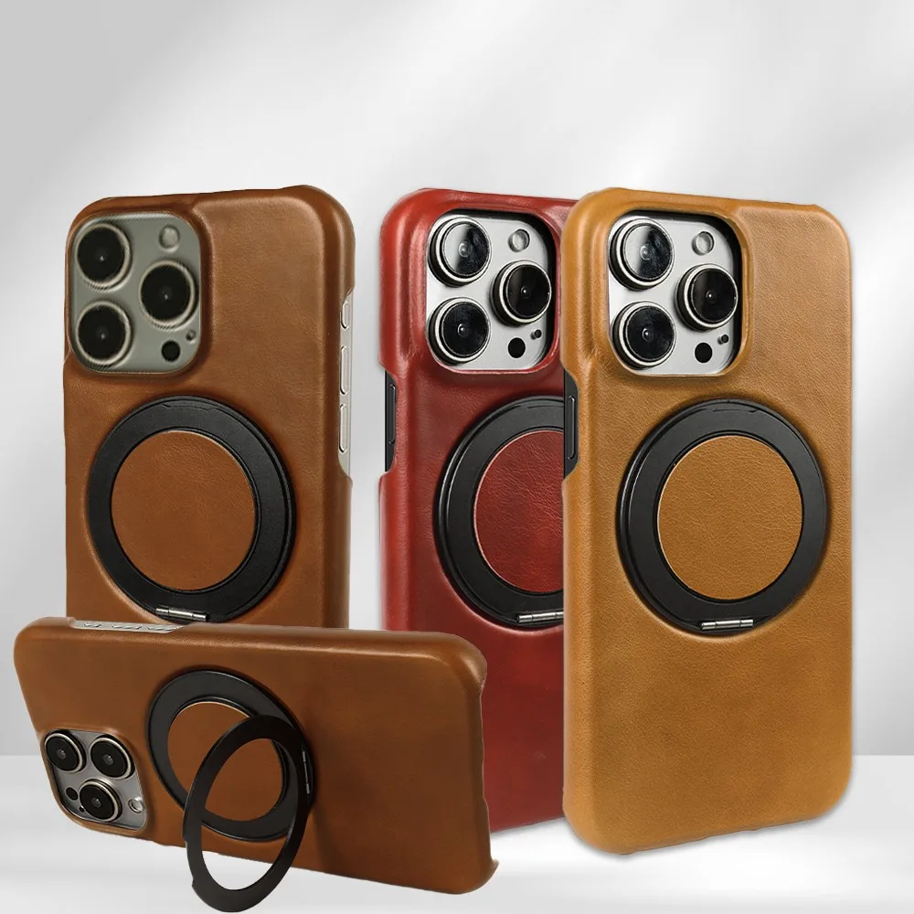 Lujo 360° Funda de cuero genuino con soporte magnético giratorio para iphone 15 Pro Max 16Pro 14Pro 13 12 11 Magsafe cubierta trasera de carga