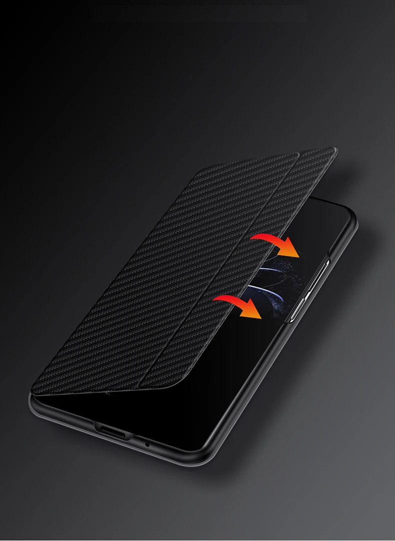 Funda de cuero genuino Xiaomi Mix Fold 2 Smart Sleep Wake Up soporte magnético Flip Carbon Case cubierta para Xiaomi Mix Fold2