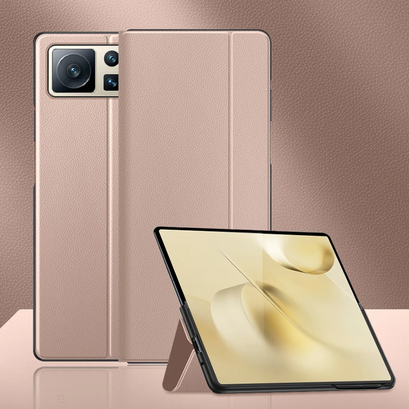Funda de cuero genuino Xiaomi Mix Fold 2 Smart Sleep Wake Up soporte magnético Flip Carbon Case cubierta para Xiaomi Mix Fold2