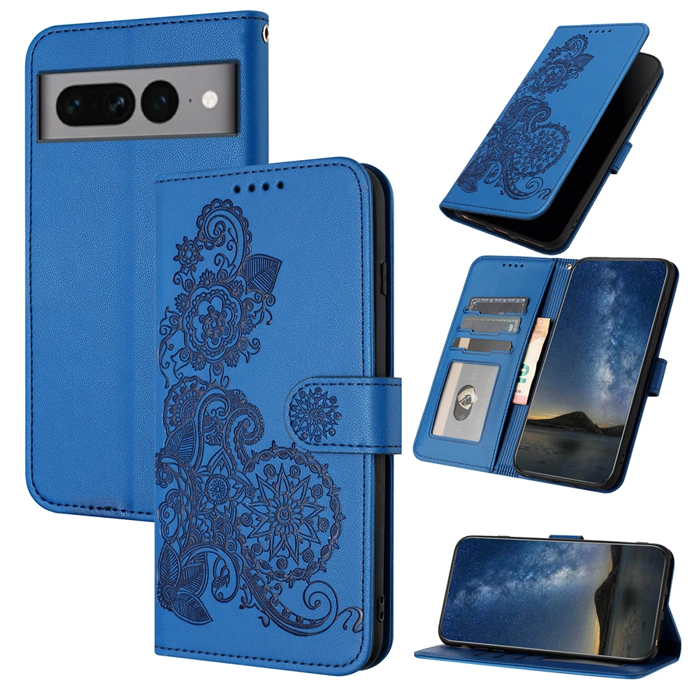 Comprar Funda de cuero para Google Pixel 7A, 8, 7 Pro, 6A, bolsa de libro de flores en relieve, soporte de bolsillo, funda ultrafina