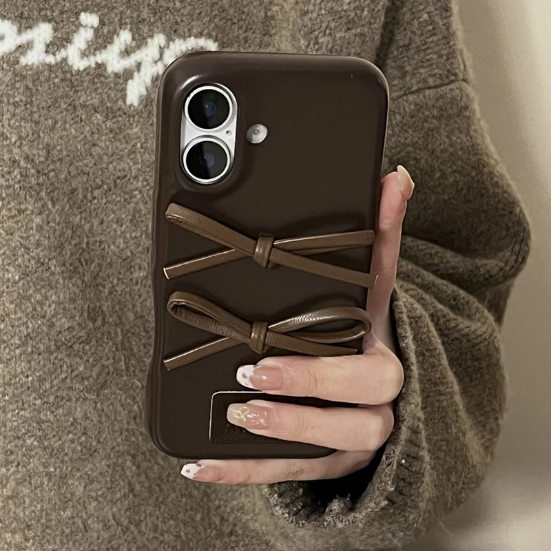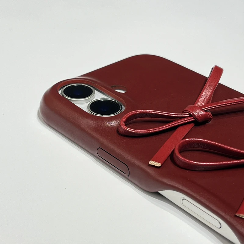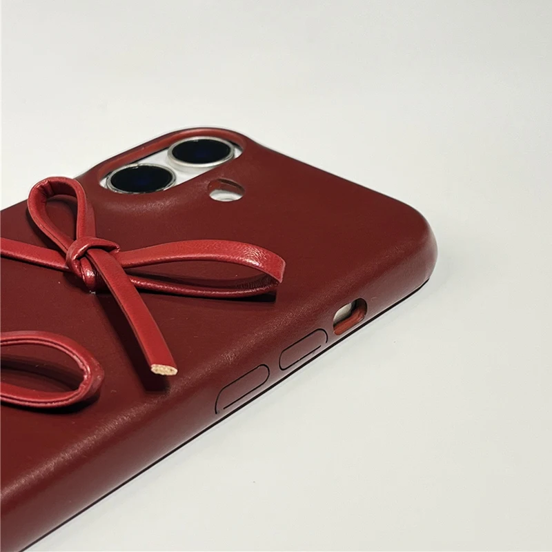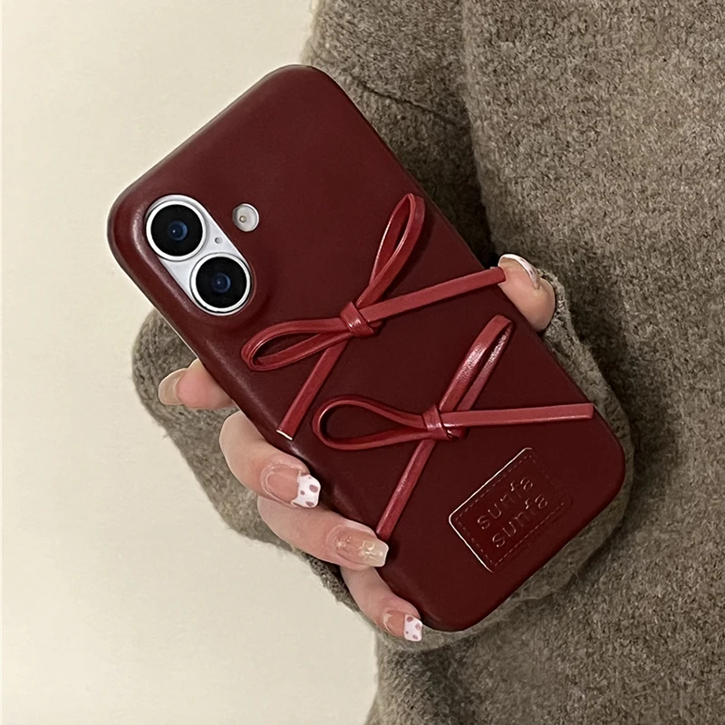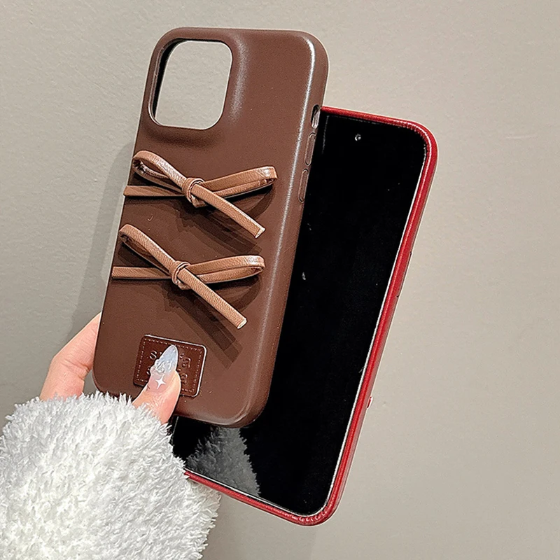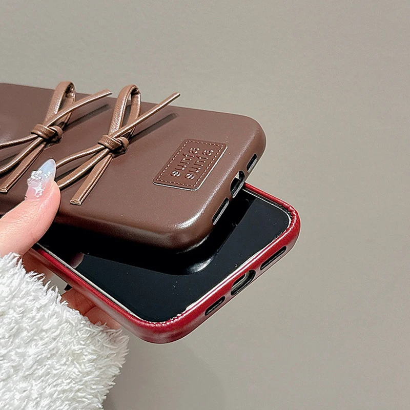 Retro Fashion Lovely Bowknot Leather Case For iPhone 16 15 13 14 Pro Max Soft Matte TPU Phone Back Cover