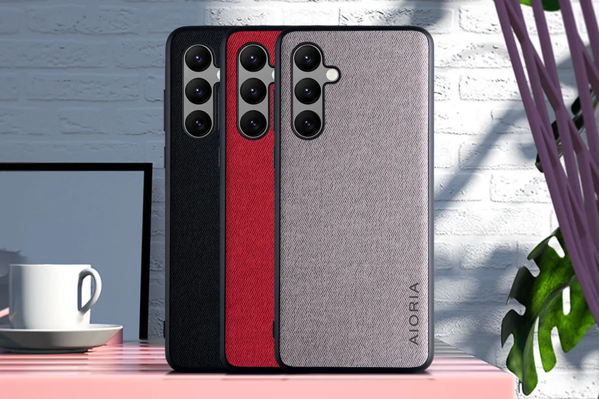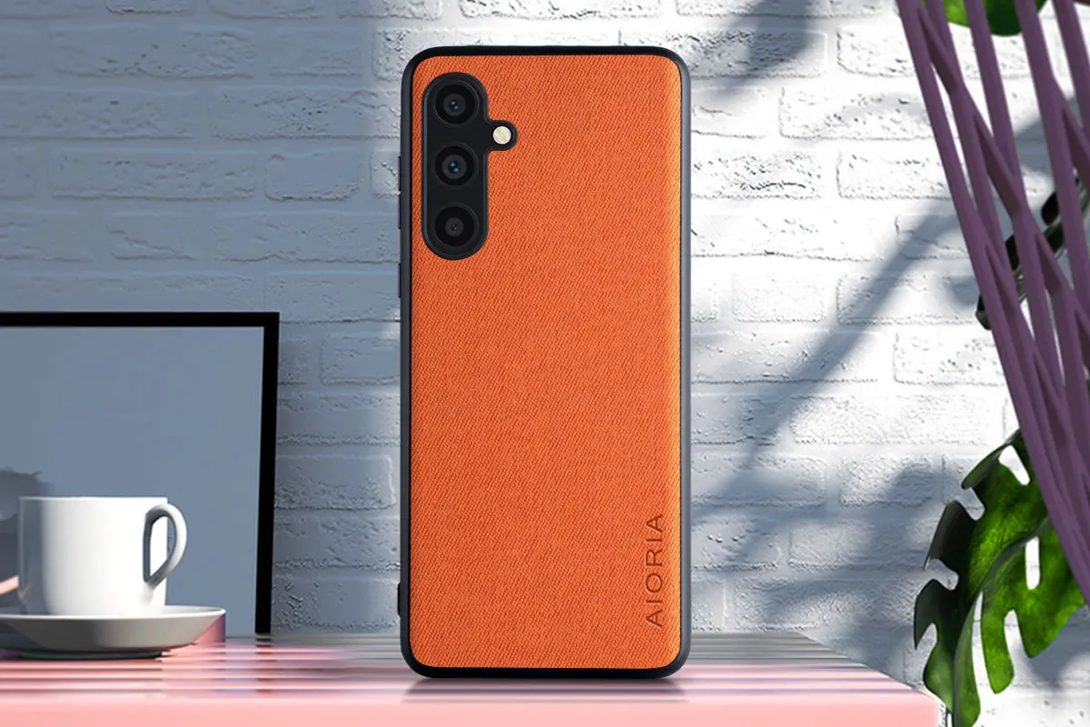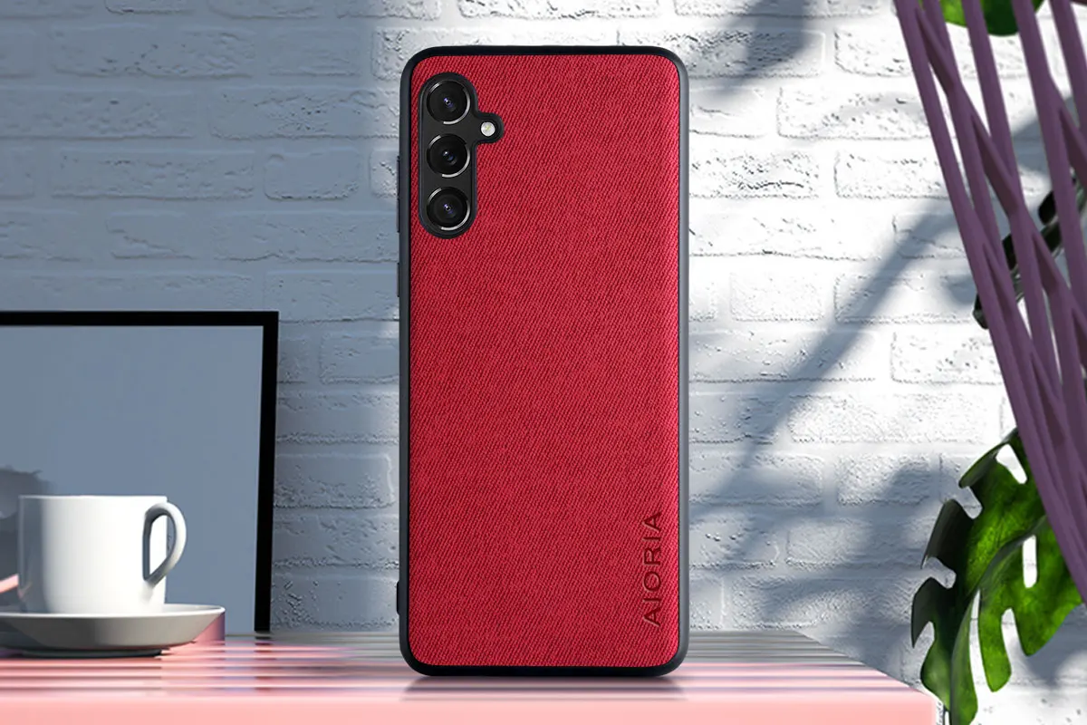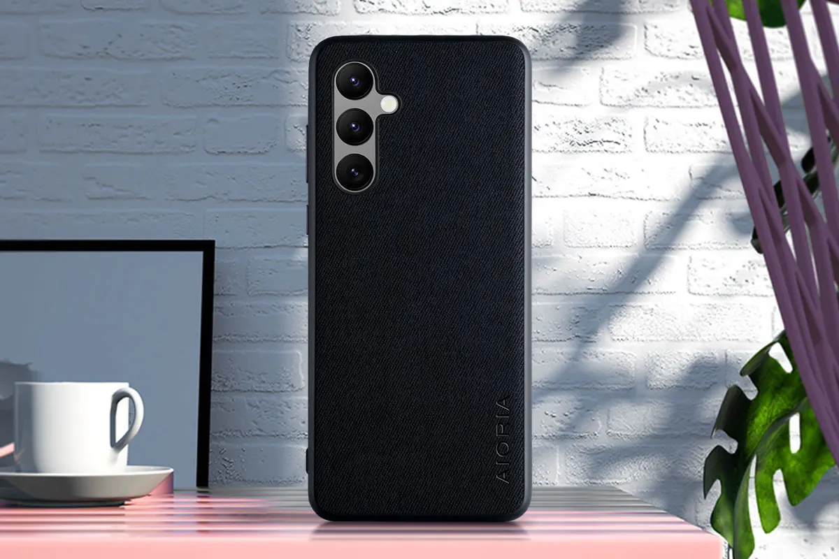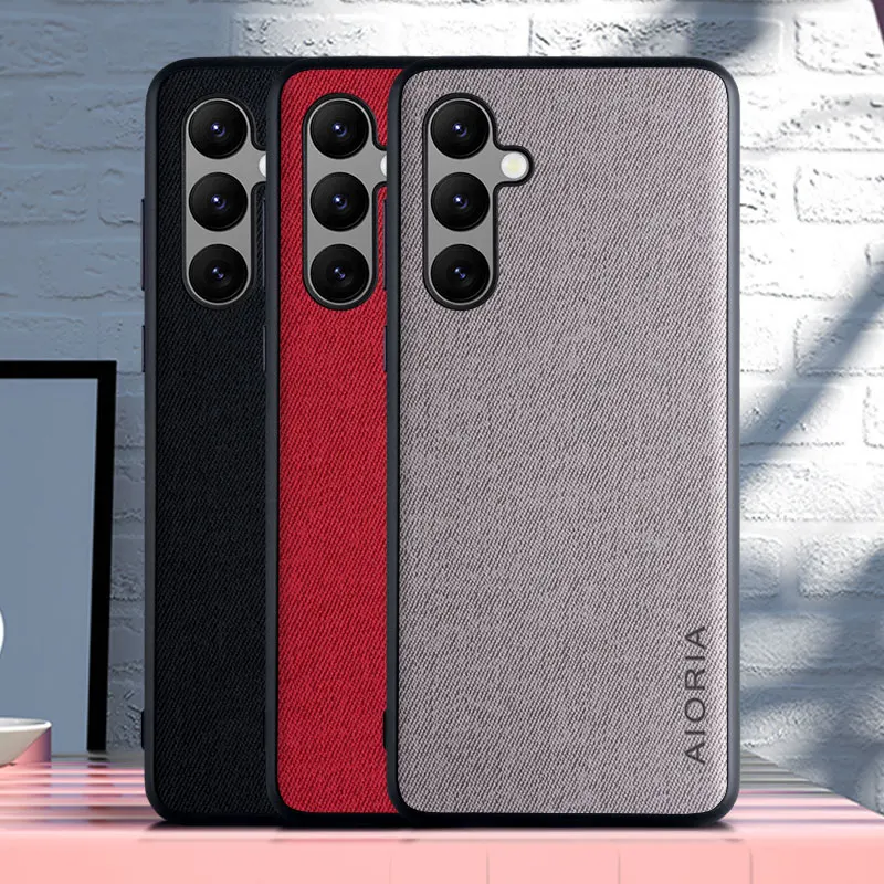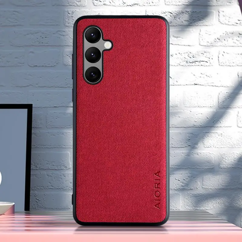 Funda de cuero textil de lujo para Samsung Galaxy A55 A35 A25 A155G, funda de teléfono dura de TPU suave, posición precisa del orificio de la Cámara, color sólido