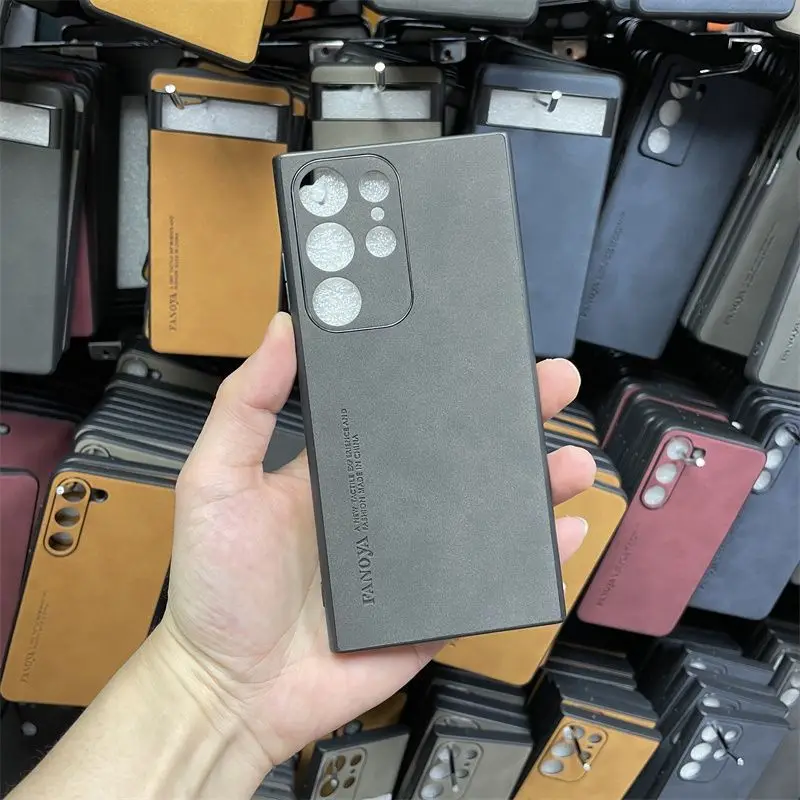 Funda de cuero de lujo para Samsung S25 S24 S23 Ultra, funda trasera para Samsung S25 Plus, protección de cámara, Funda de silicona a prueba de golpes
