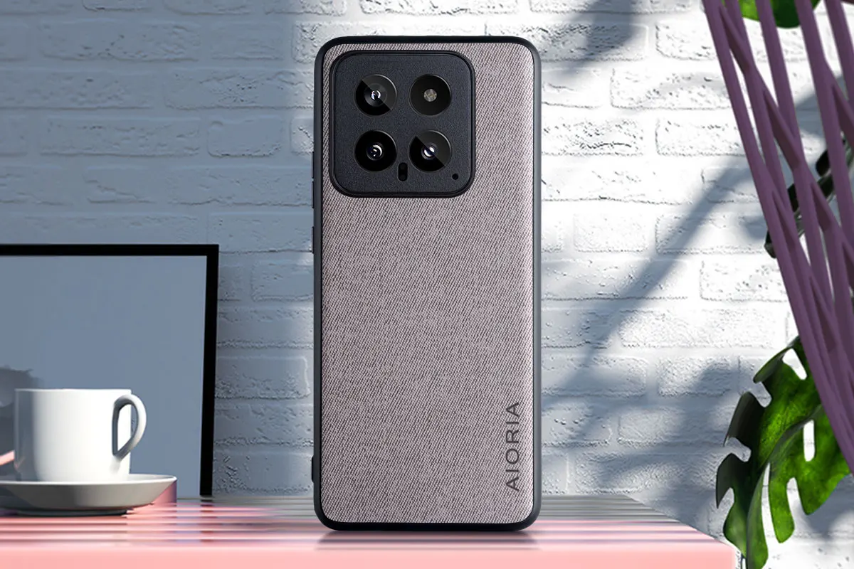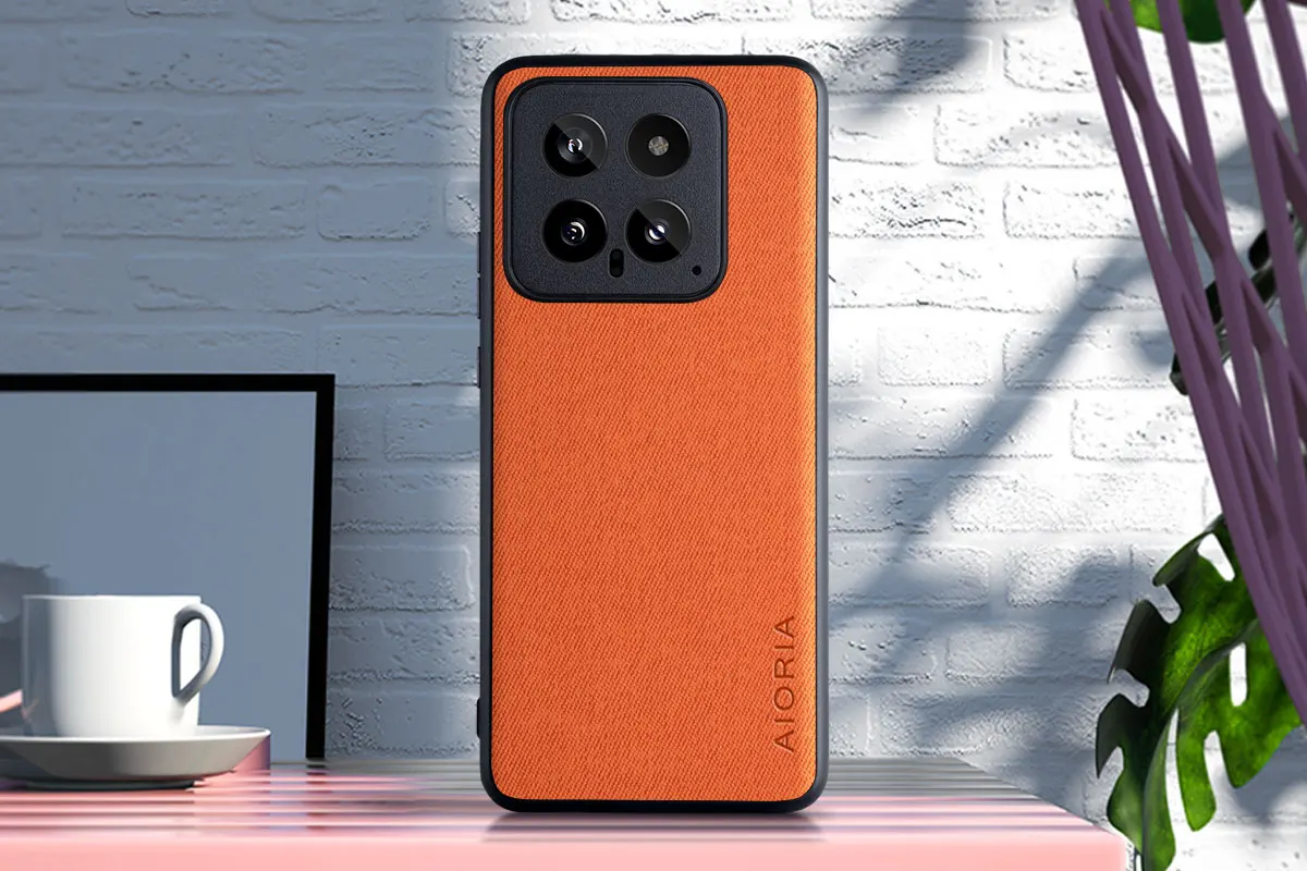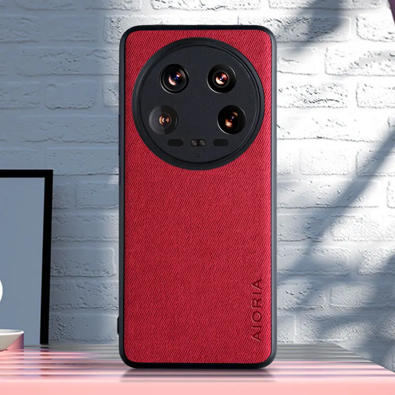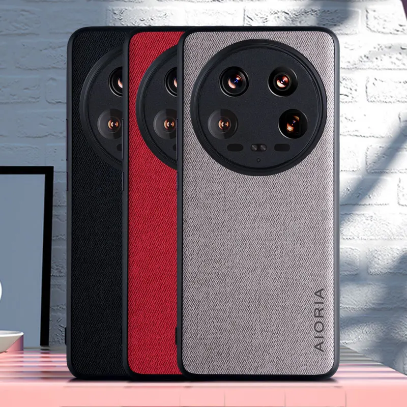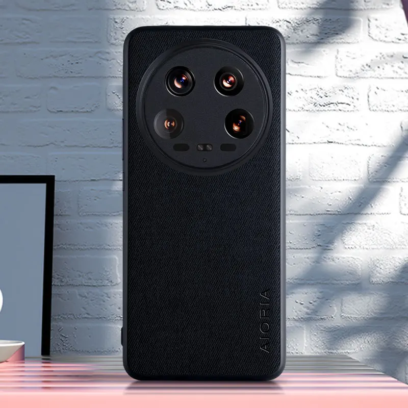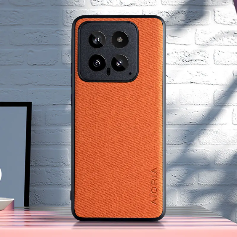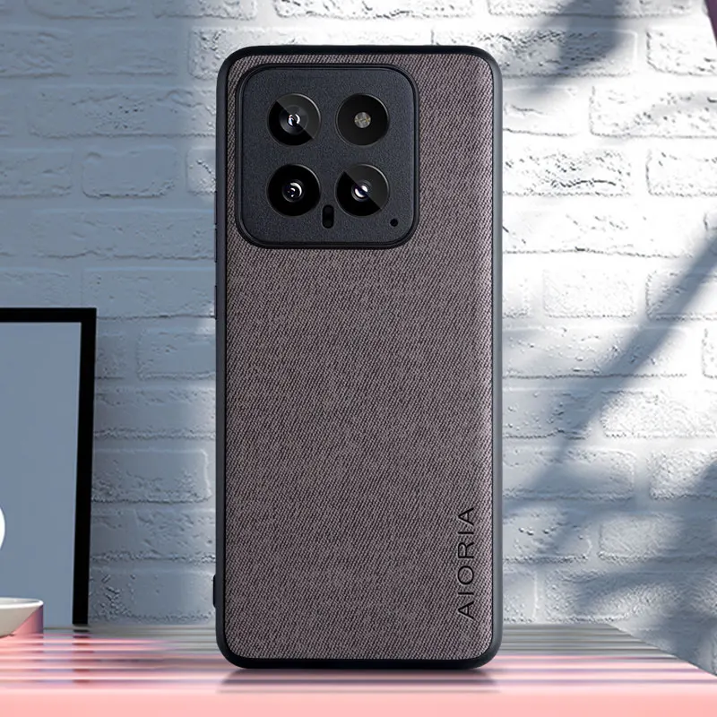 Funda de cuero textil de lujo para Xiaomi 14 TPU ultra suave con cubierta de protección de material duro PC 3 en 1
