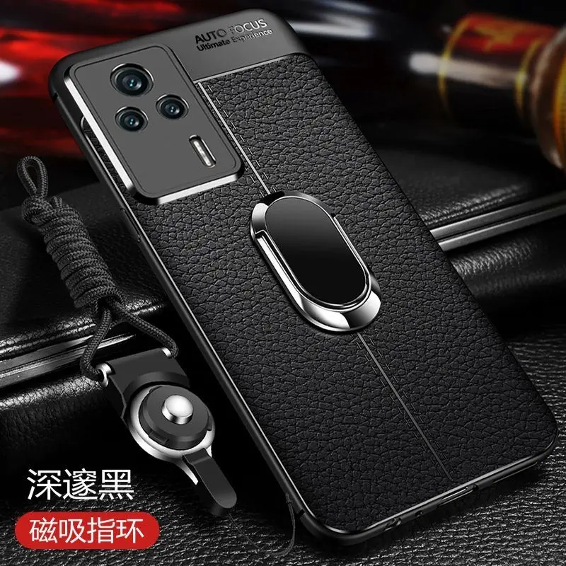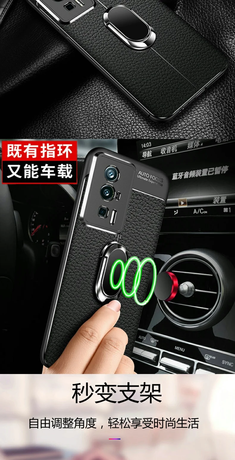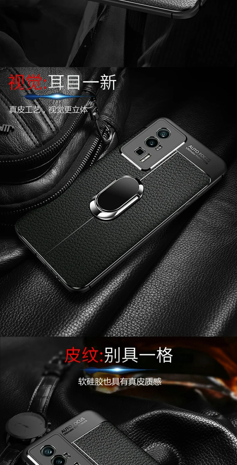 Para Xiaomi POCO F5 Pro Funda Textura de cuero de lujo con anillo de soporte Imán Funda trasera de silicona para Xiaomi POCO X5 Pro F5Pro