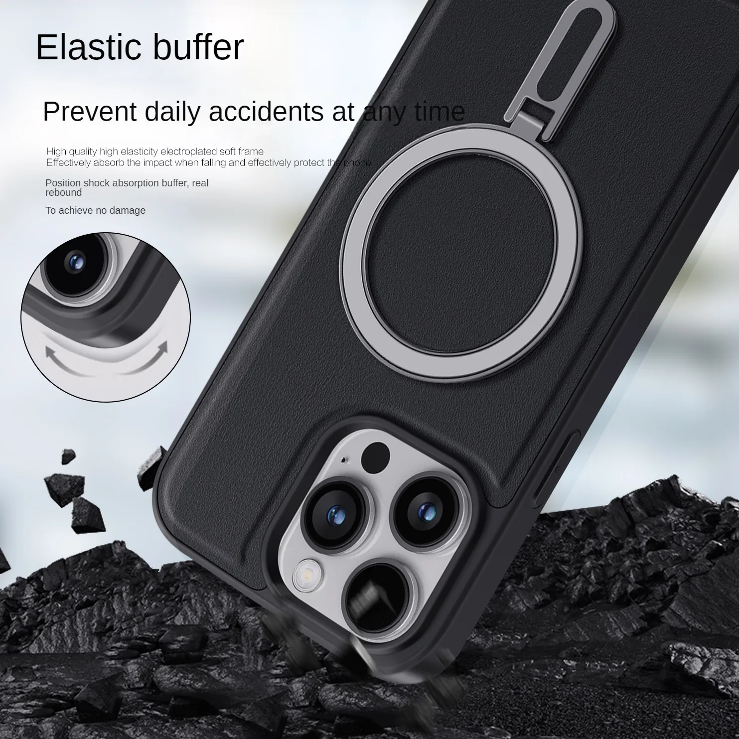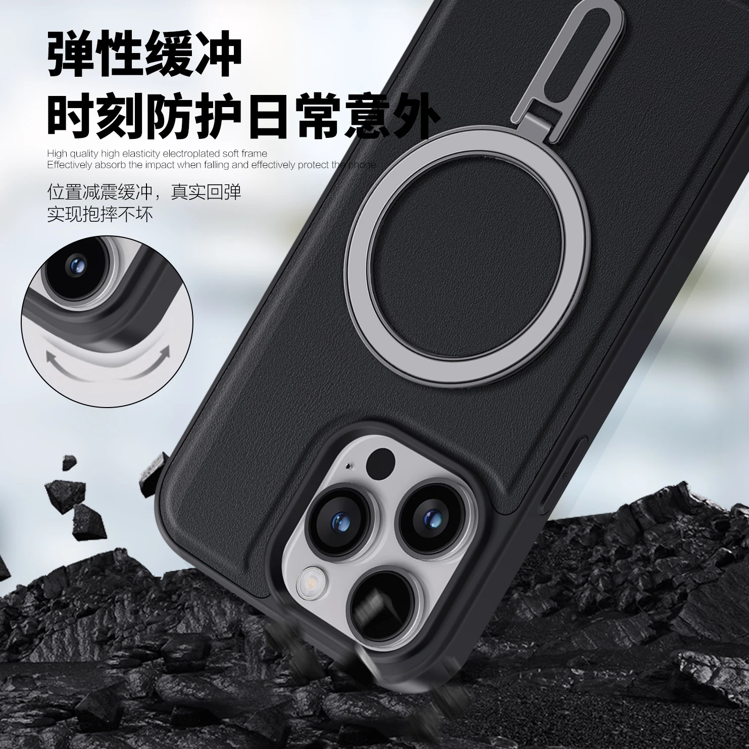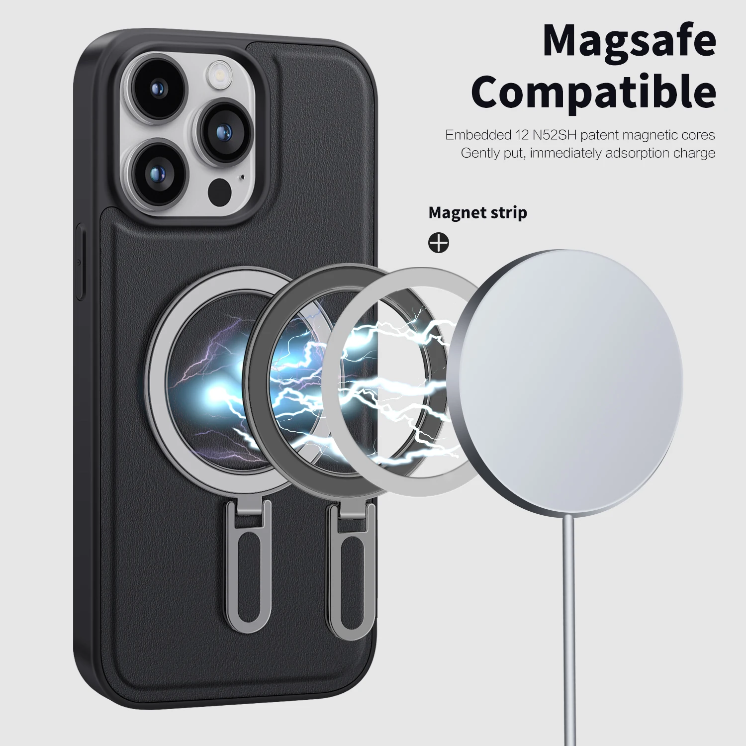 Funda de cuero magnética con soporte integrado para iPhone, soporte de carga inalámbrica para iPhone 15 Pro Max 13 12 11 14 Plus, soporte de montaje para coche Magsafe