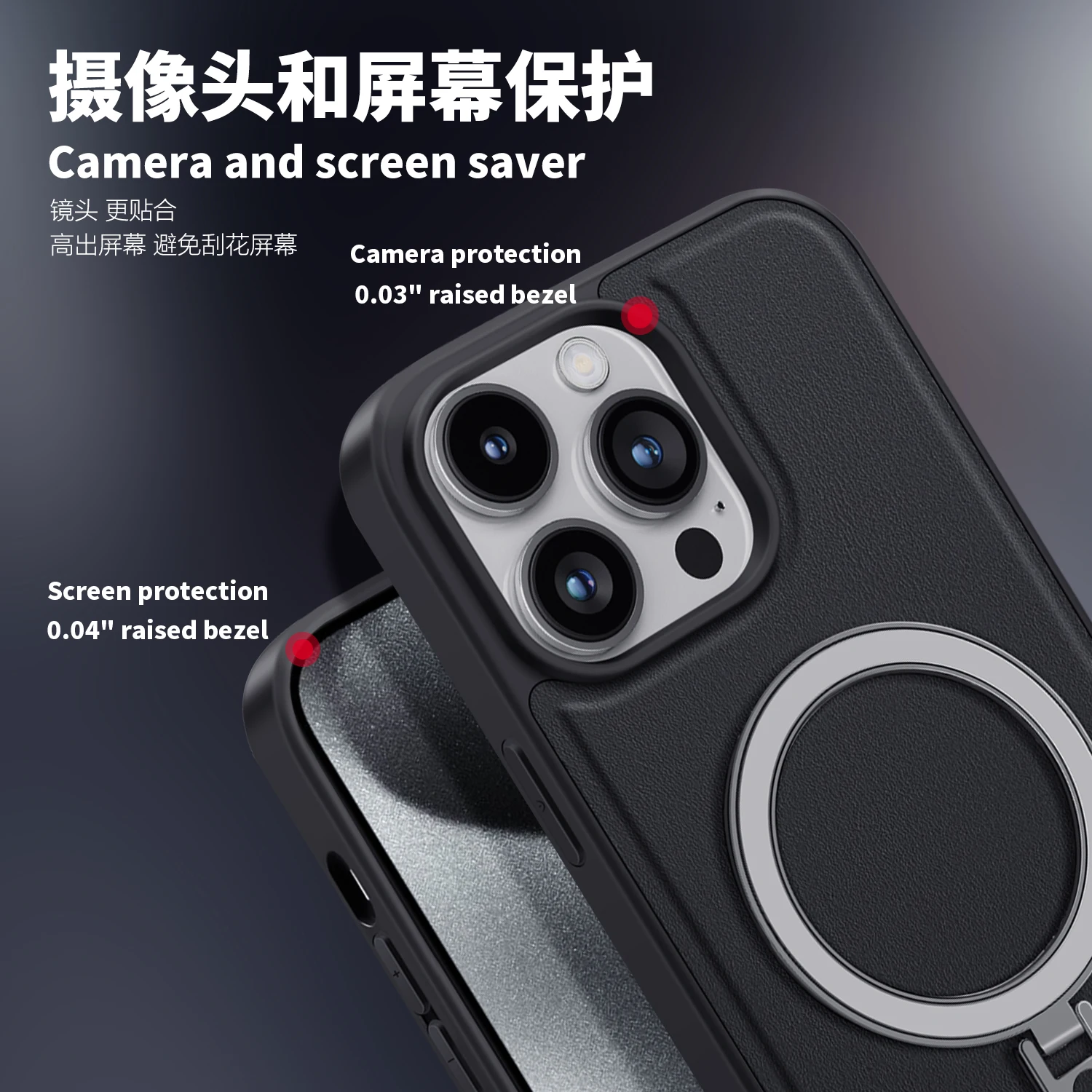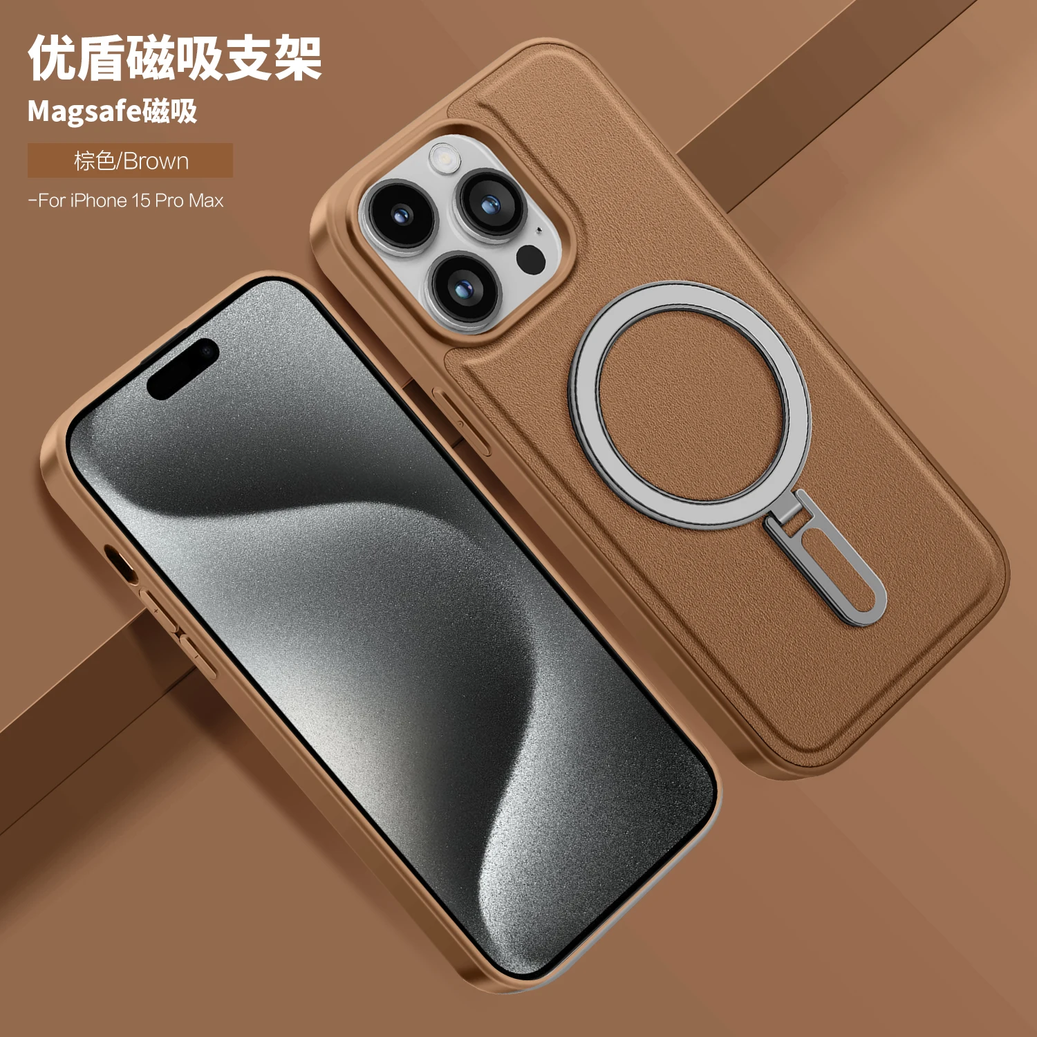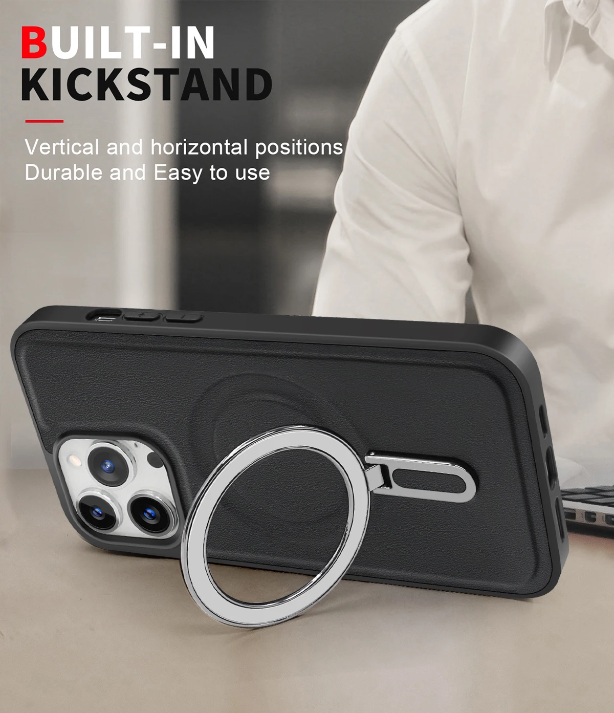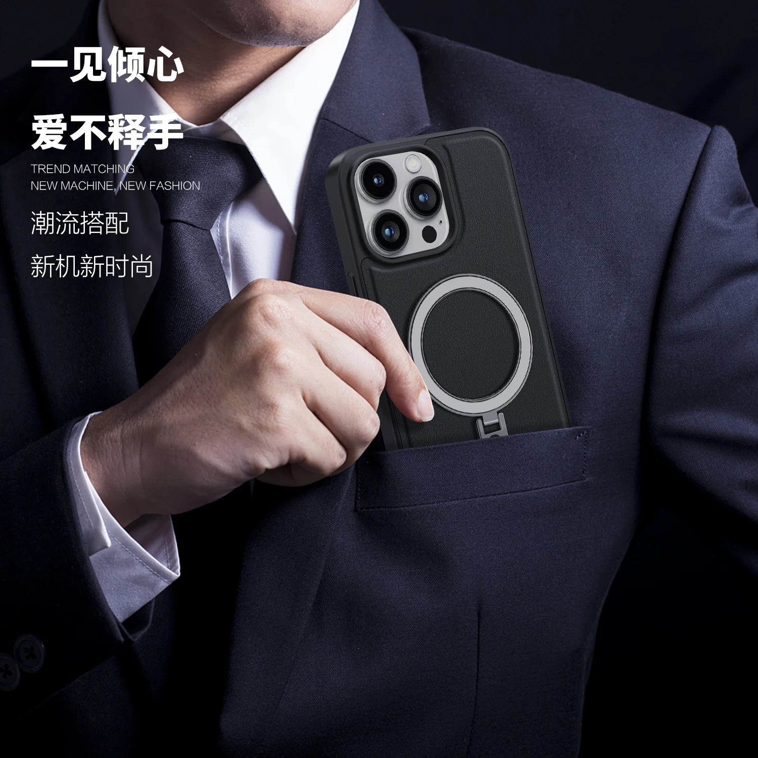 Funda de cuero magnética con soporte integrado para iPhone, soporte de carga inalámbrica para iPhone 15 Pro Max 13 12 11 14 Plus, soporte de montaje para coche Magsafe