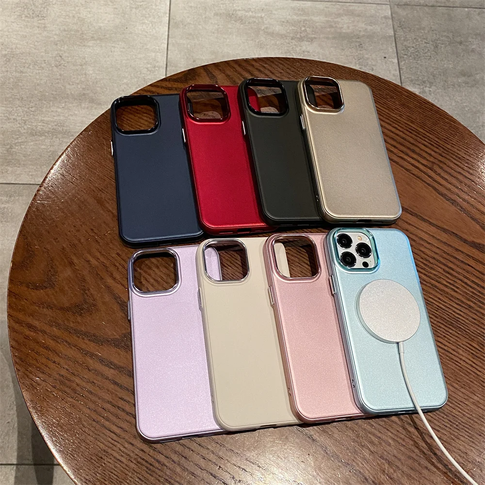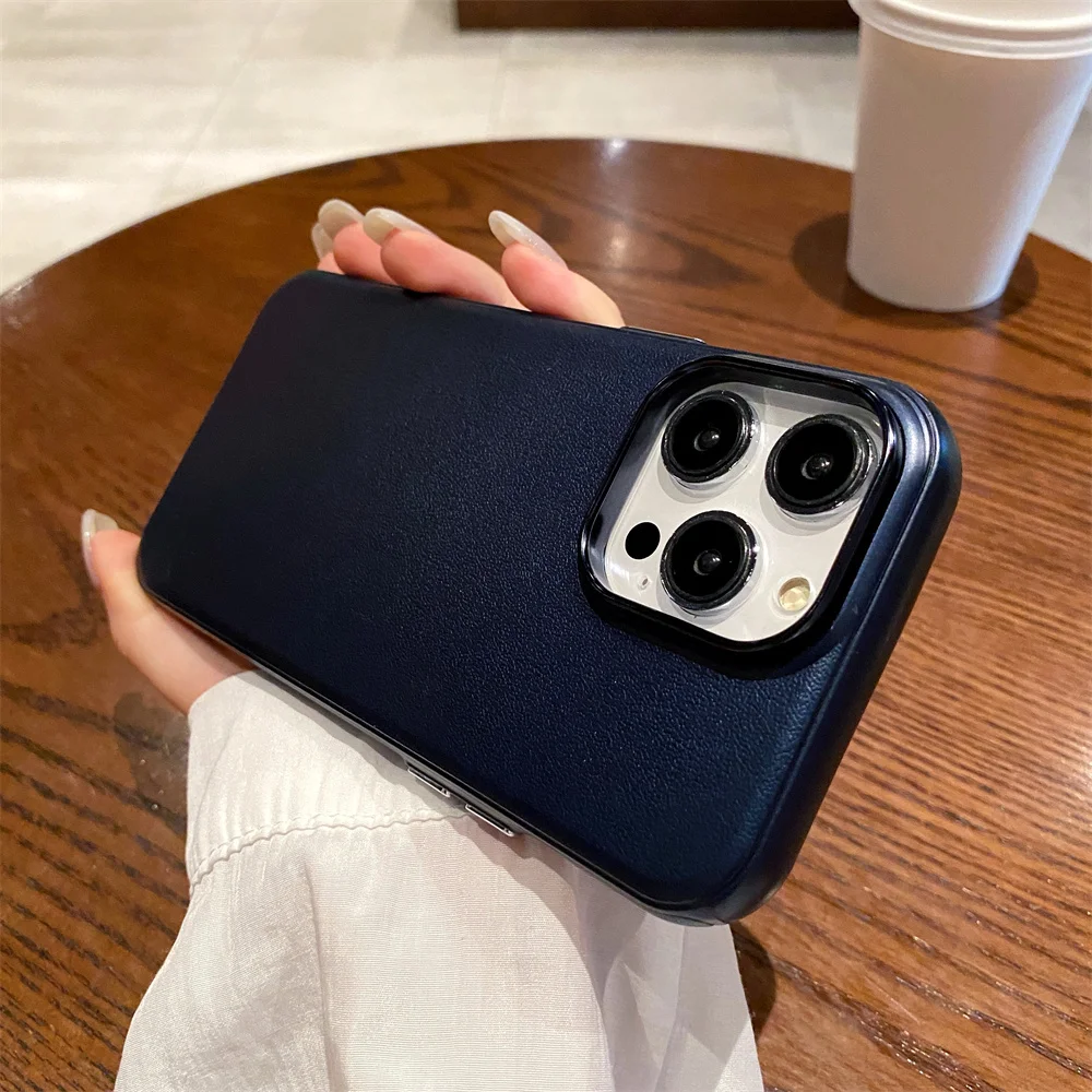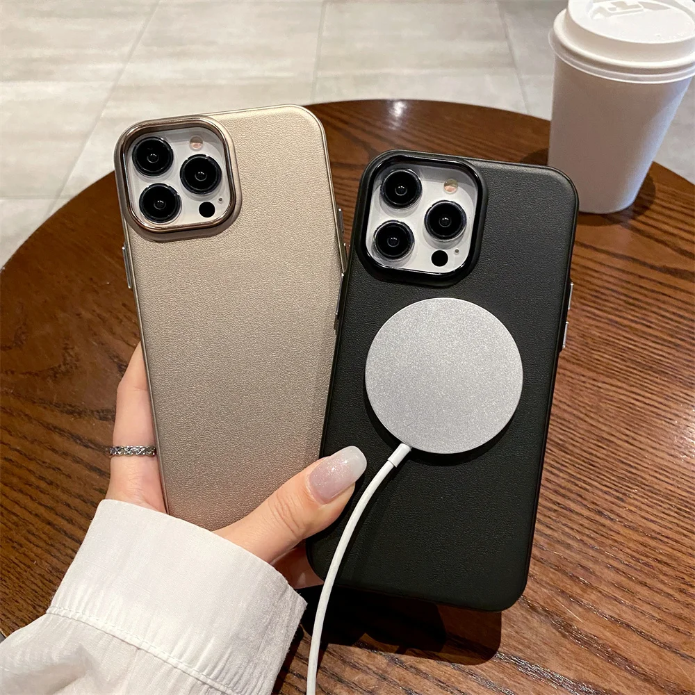 Comprar Funda de cuero Magsafe de lujo para iPhone 15 14 13 Pro Max, cubierta dura de negocios a prueba de golpes, chapada en Color sólido