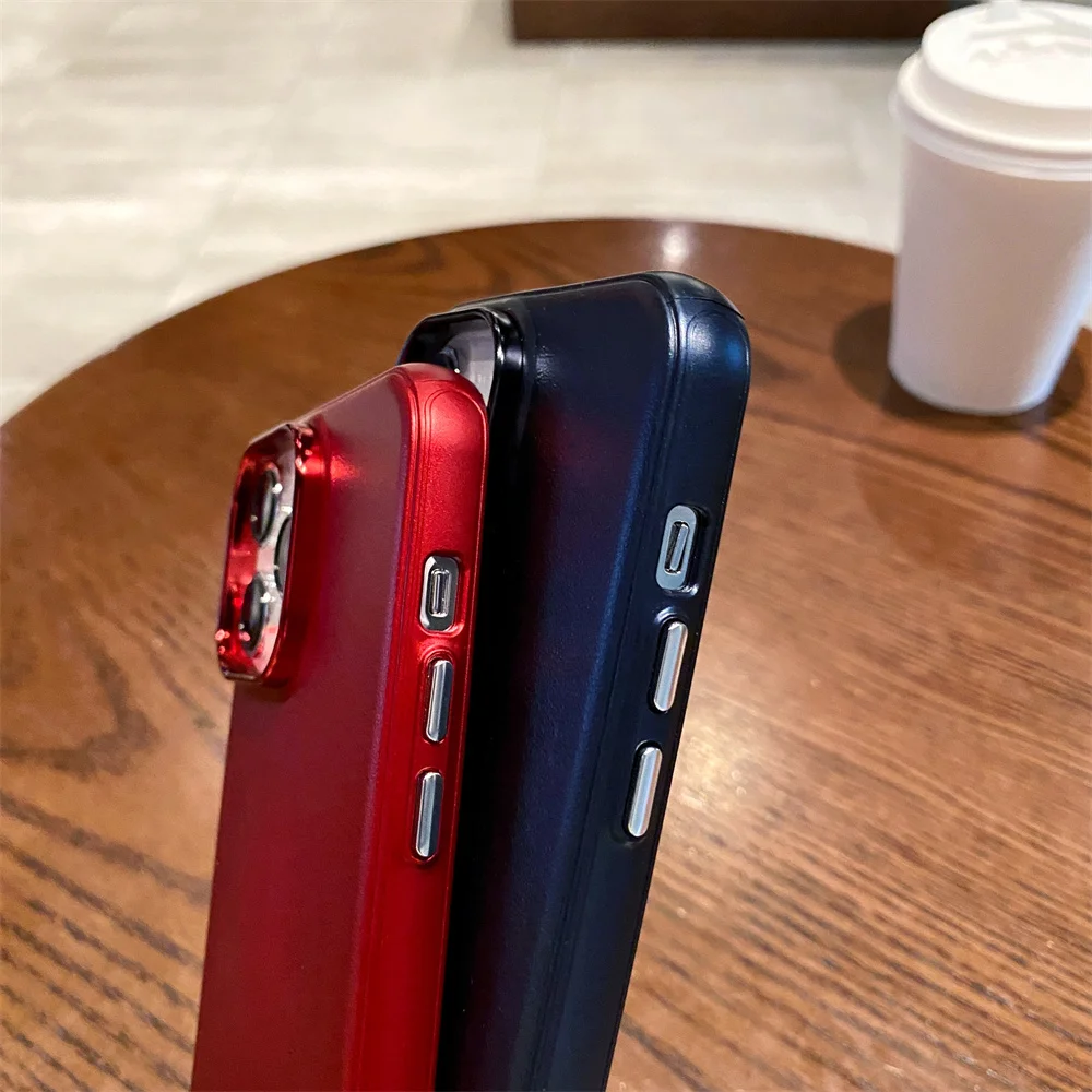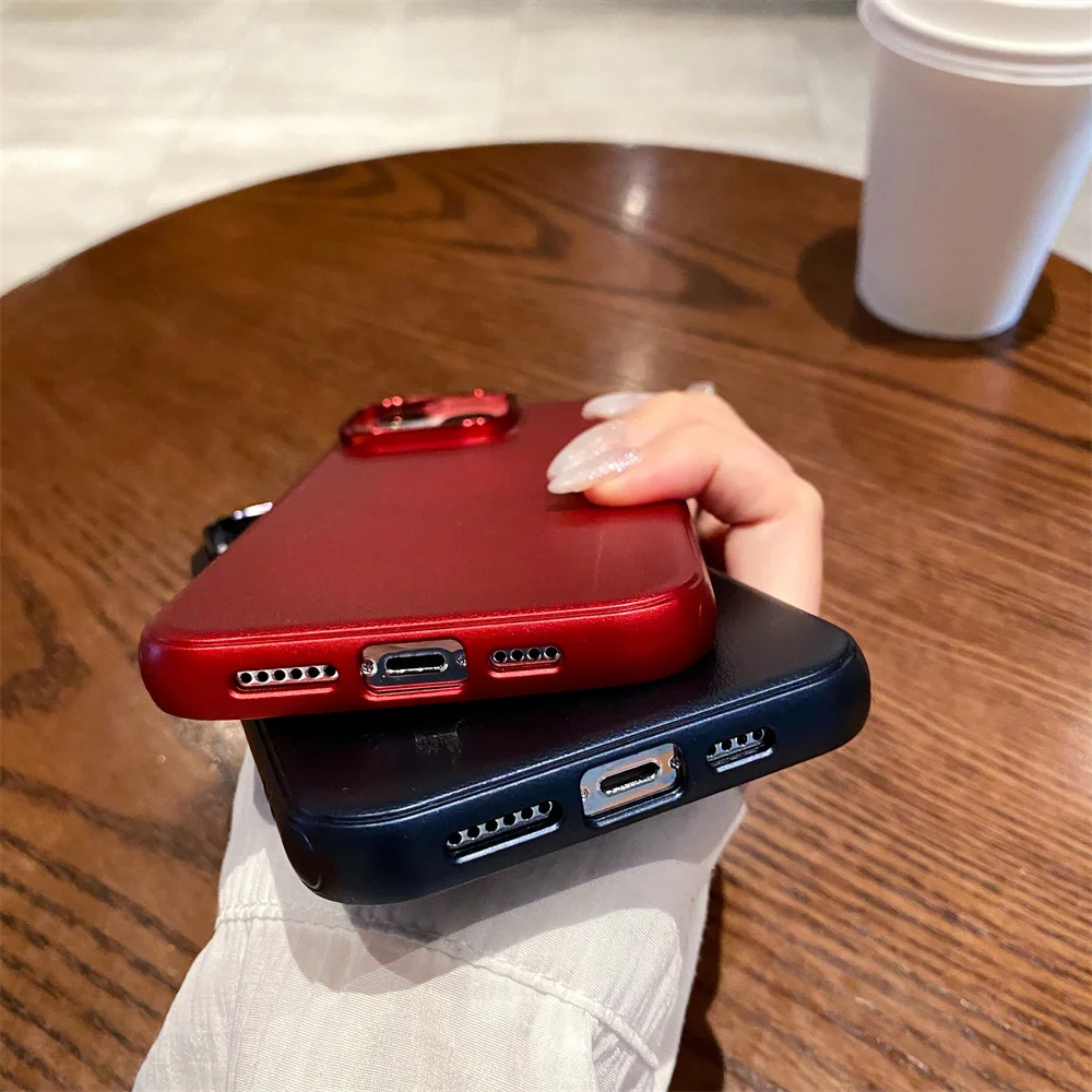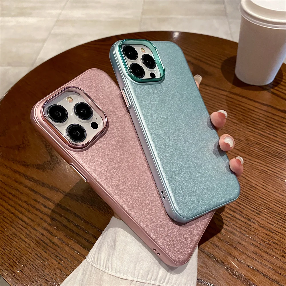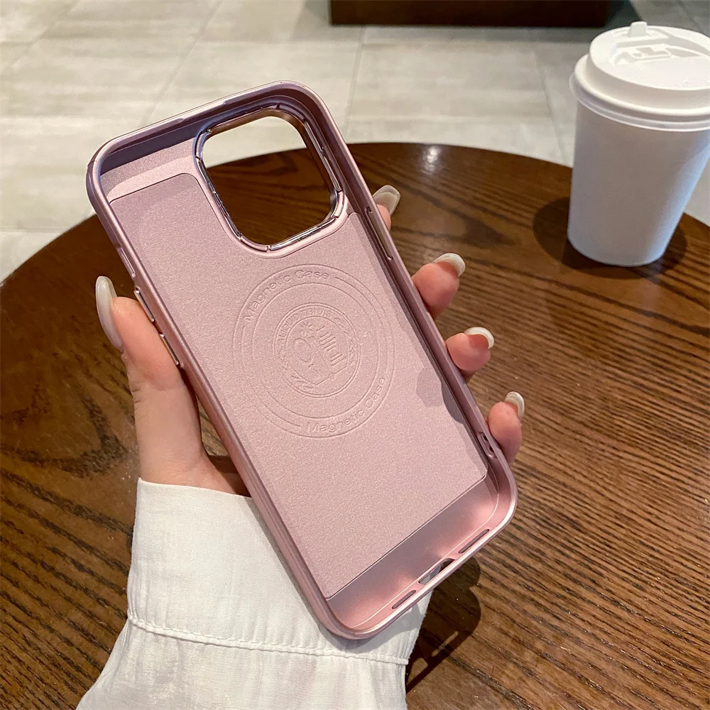 Comprar Funda de cuero Magsafe de lujo para iPhone 15 14 13 Pro Max, cubierta dura de negocios a prueba de golpes, chapada en Color sólido