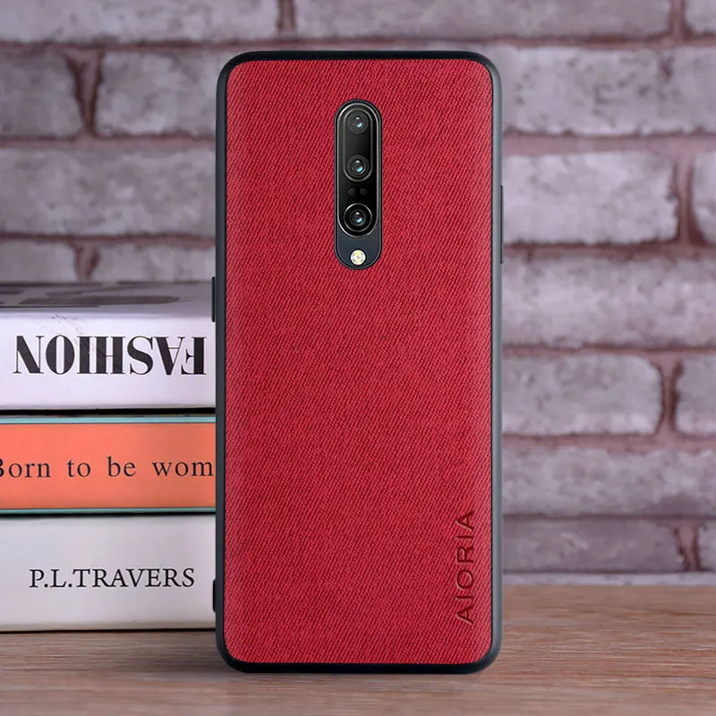 Funda de cuero textil para Oneplus 7 Pro TPU suave con cubierta trasera de diseño de protección de cámara de material de PC duro
