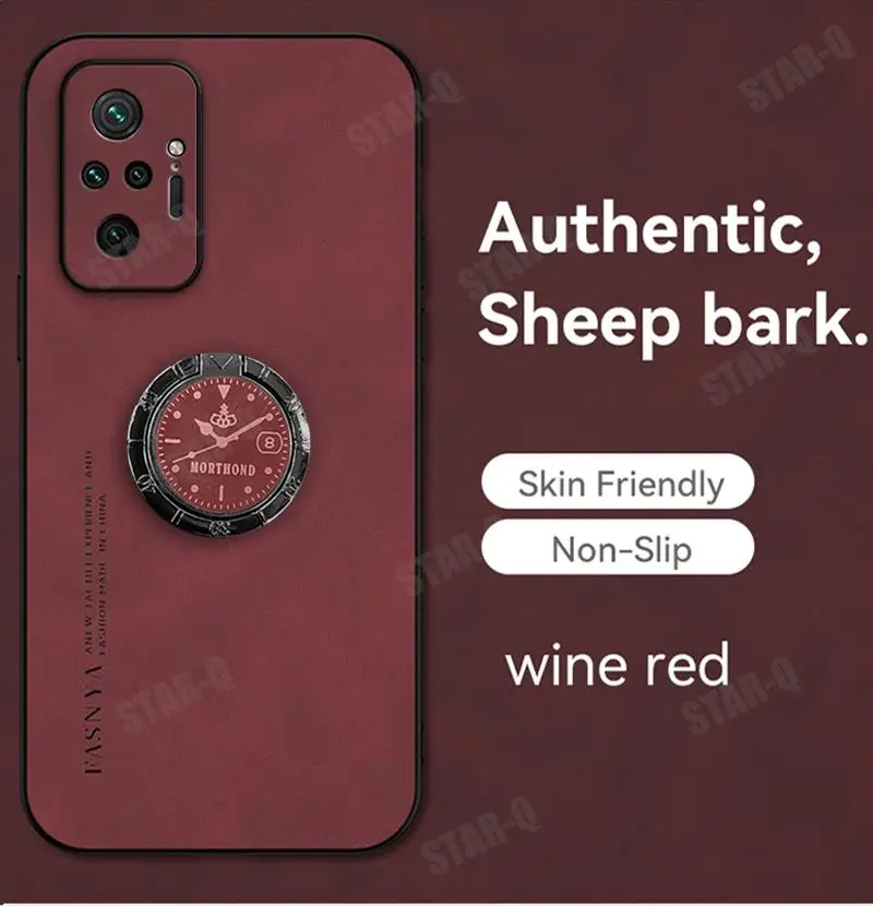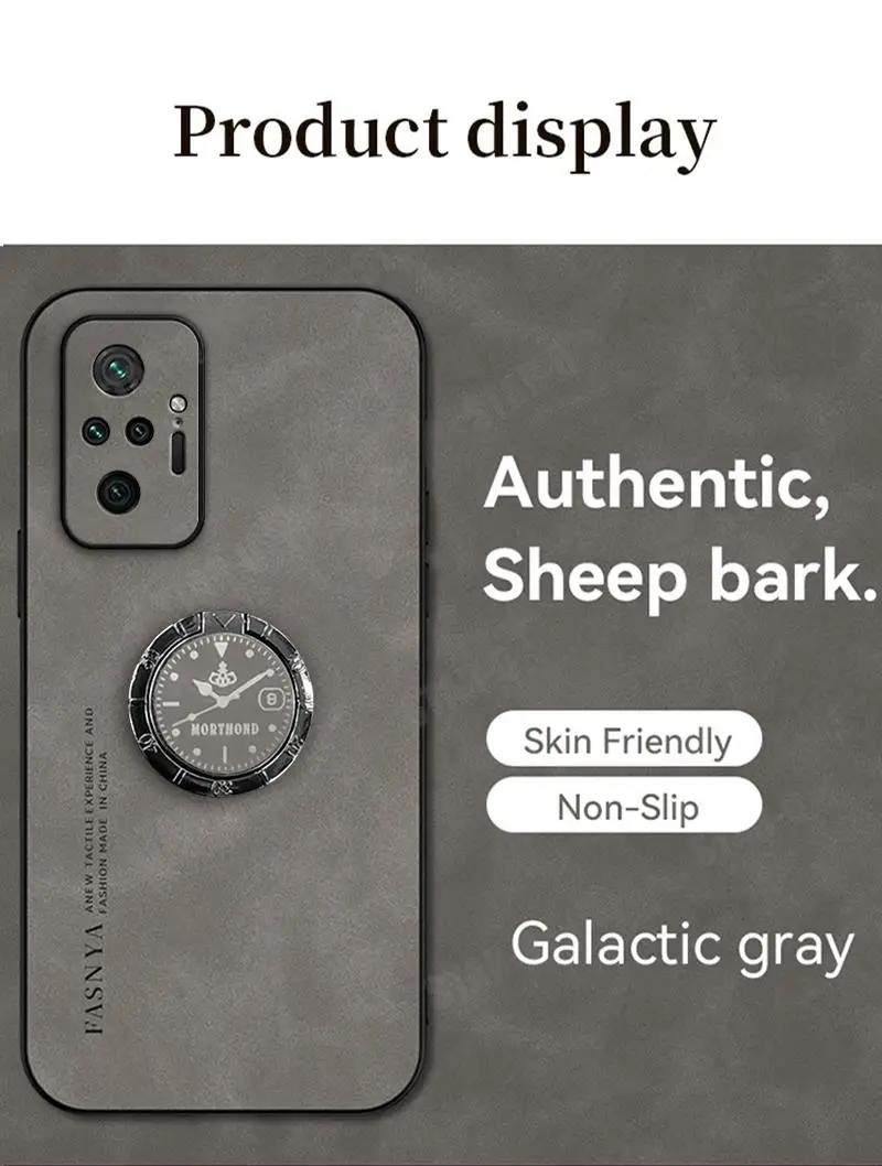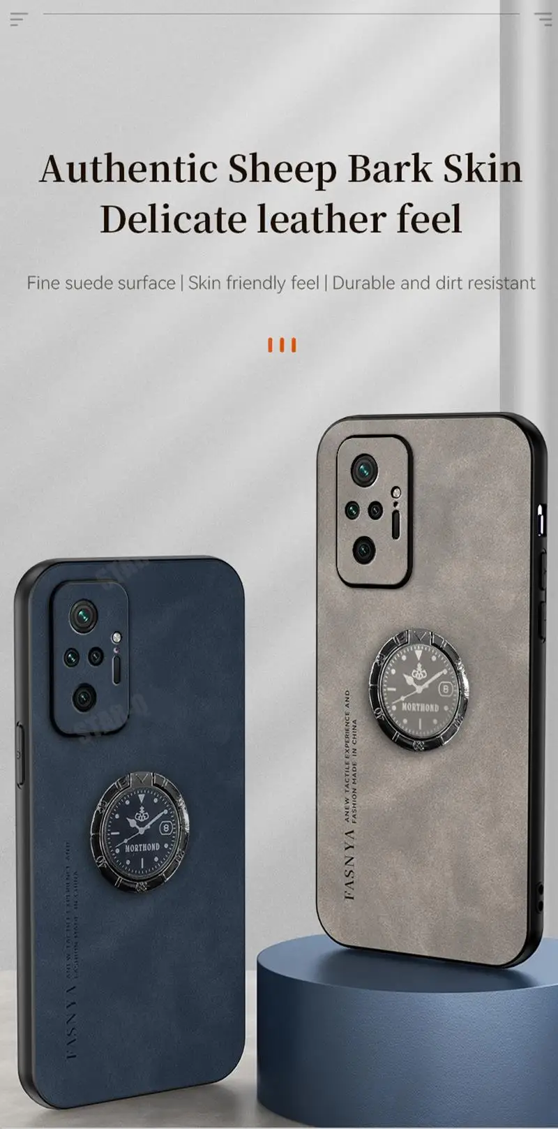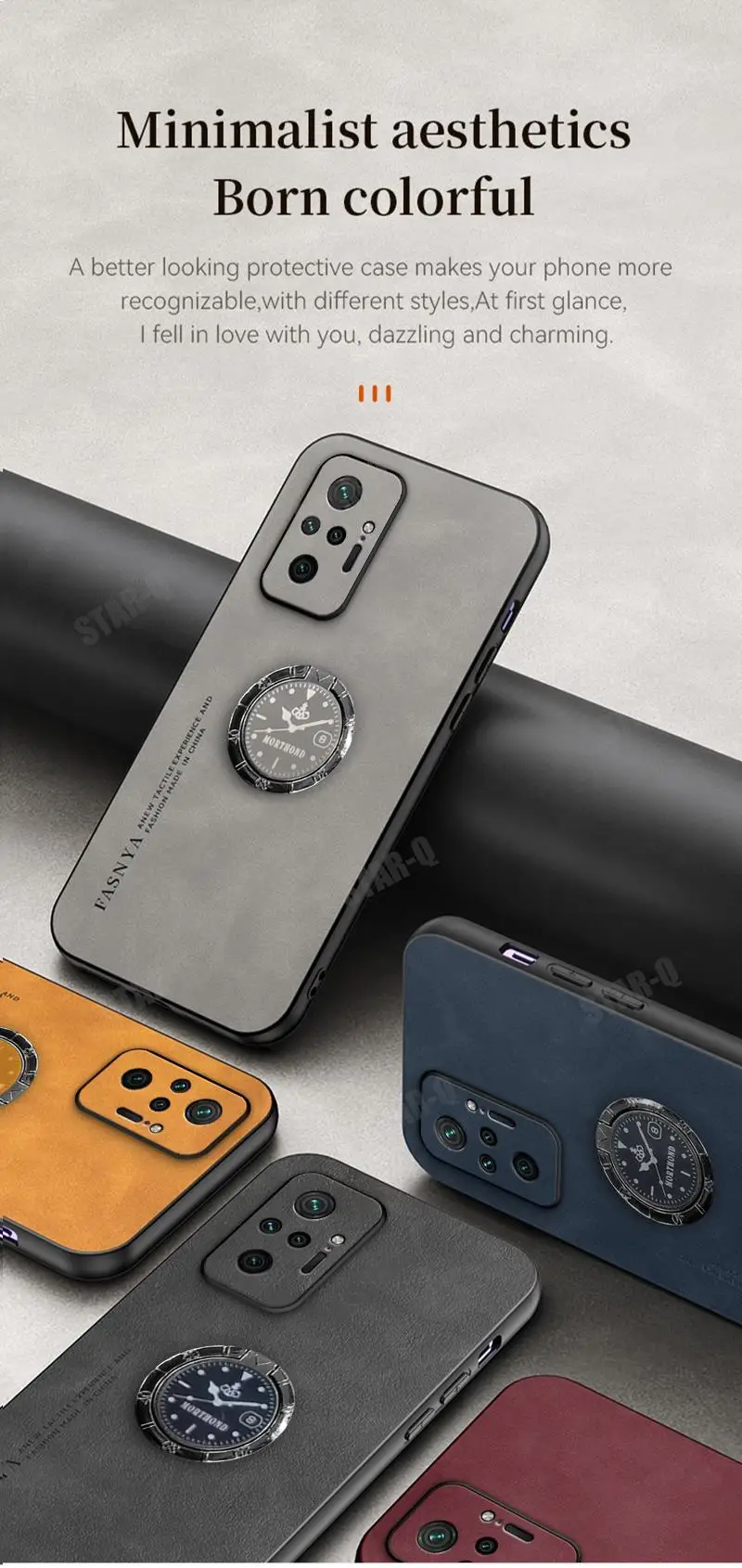 Note10 10pro Luxury Ring Phone Holder Funda de cuero de piel de oveja para Xiaomi Redmi Note 10 Pro 4G 5g Men Retro Stand Back Cover
