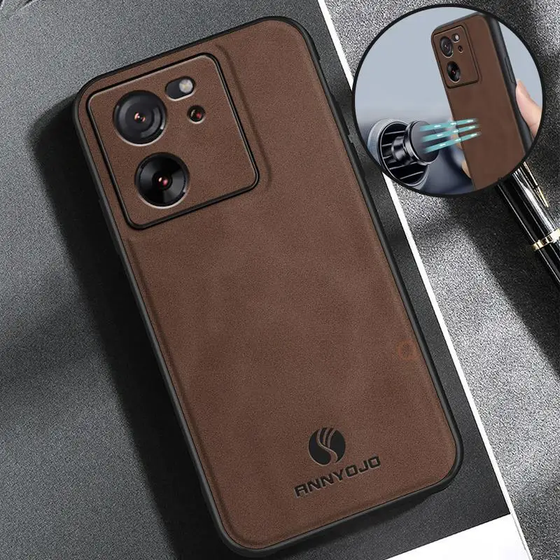Soporte magnético para coche Funda de cuero de piel de oveja para Xiaomi Mi 13t Pro 5g Mi13t 13tpro funda trasera Vintage de lujo para hombres de negocios